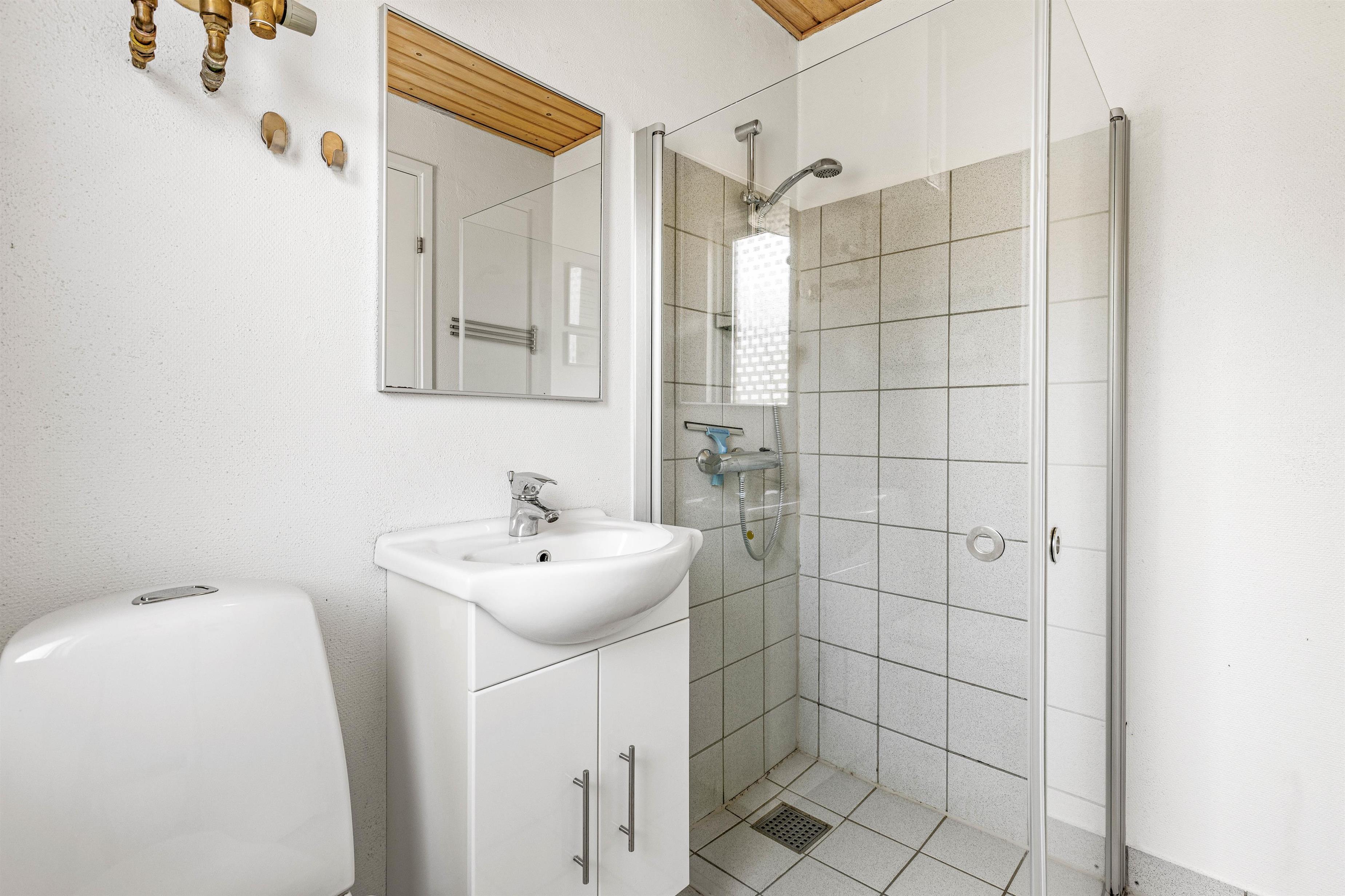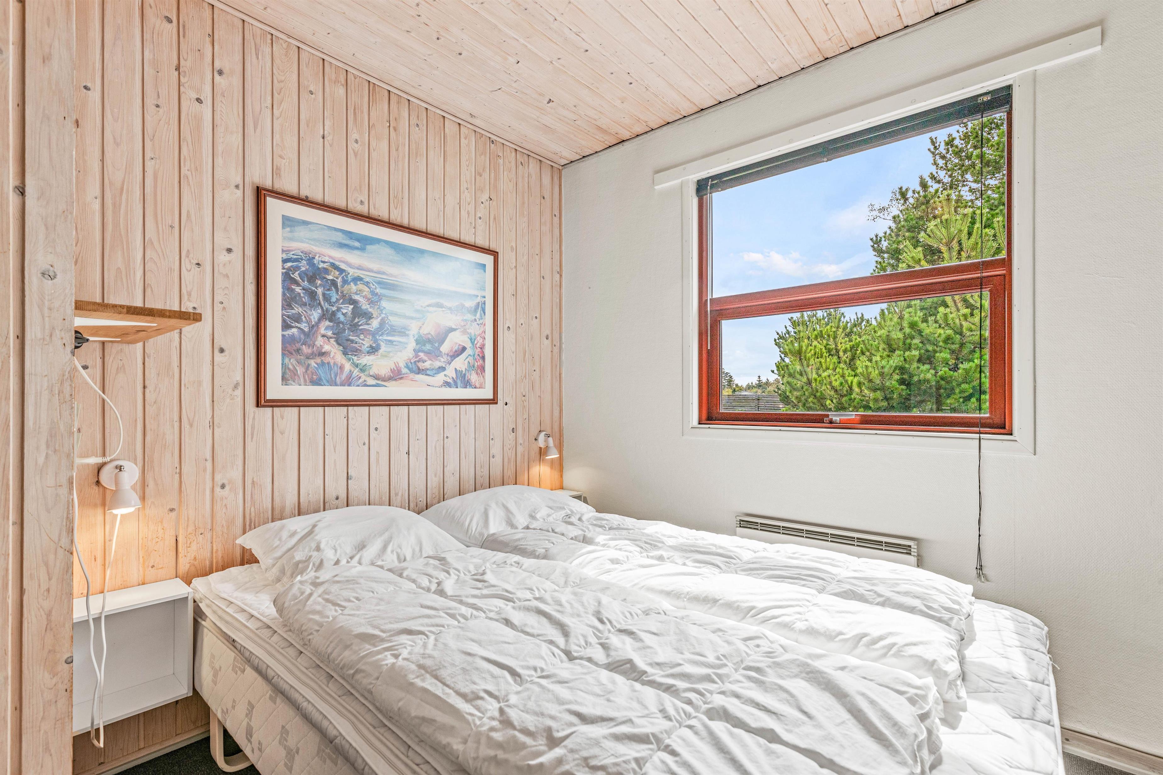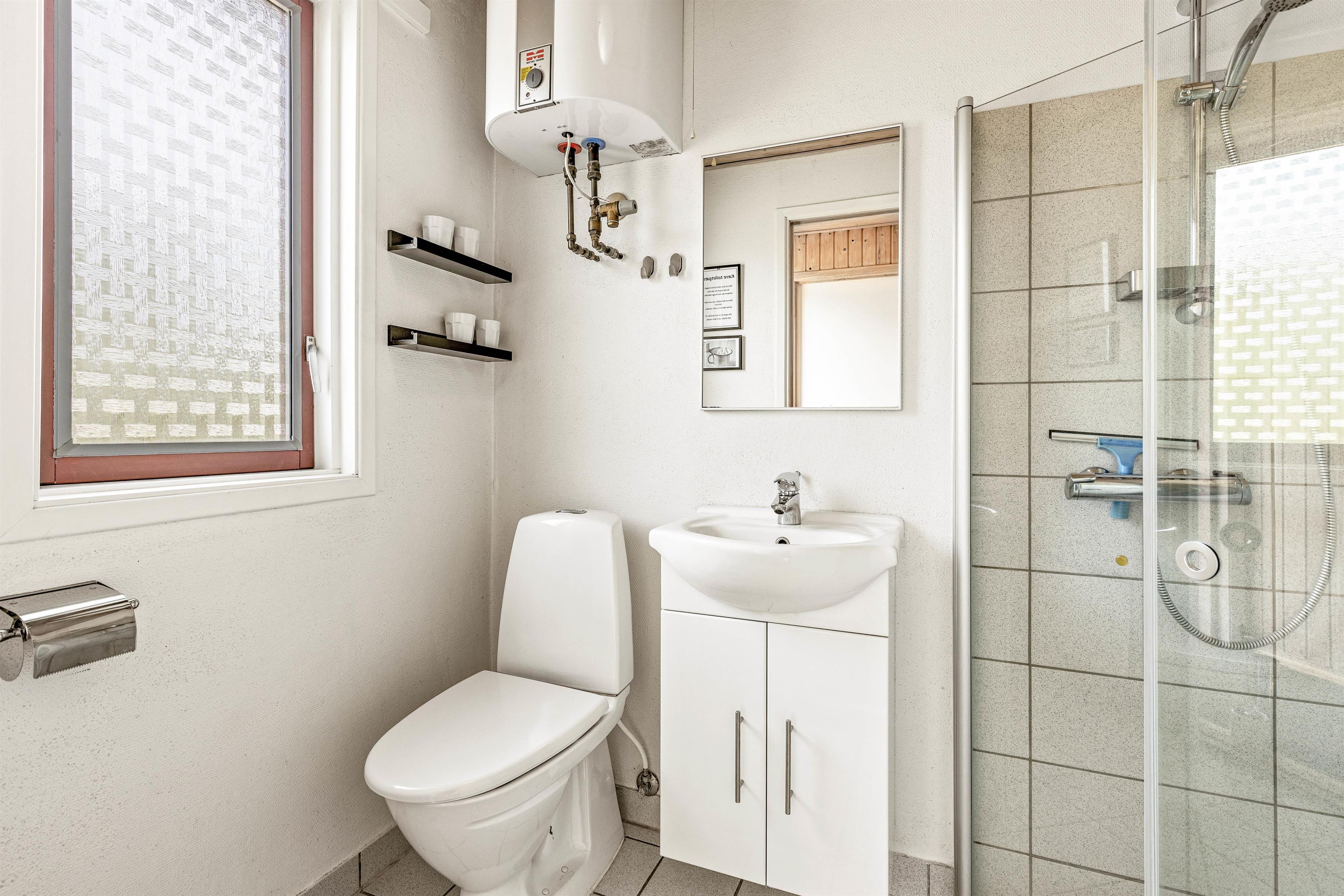 Sommerhuset er indrettet med 2 soveværelser, der begge er indrettet med dobbeltseng. Derudover er der 1 badeværelse med gulvvarme i feriehuset. En energivenlig varmepumpe sørger for gode temperaturer i sommerhuset til lave omkostninger.