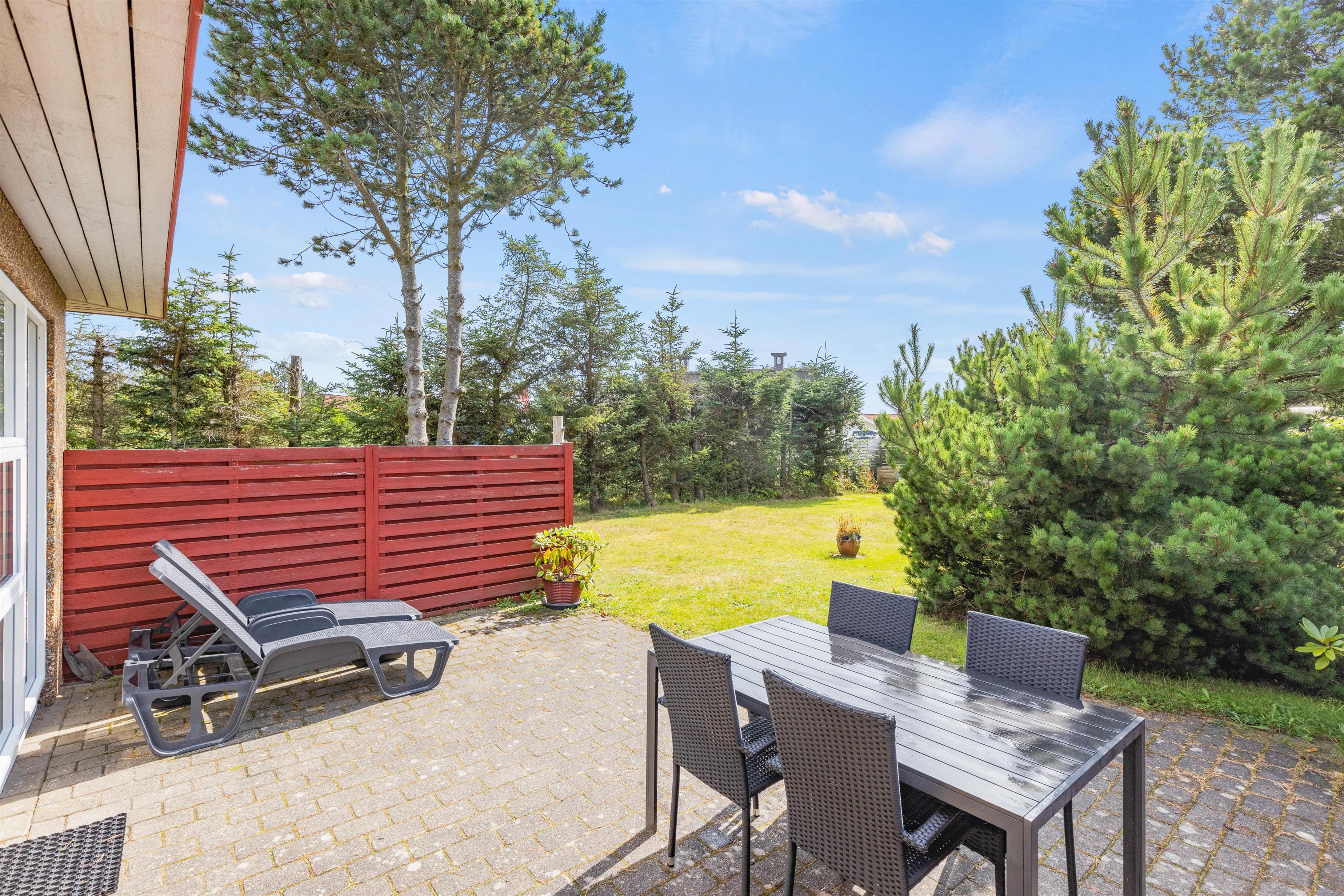 På de feriedage, hvor vejret er i top, kan I rykke ud på terrassen. Sommerhuset har en afskærmet terrasse, hvor I har både liggestole og havemøbler til rådighed, som I kan finde jer godt til rette i. Som en perfekt afslutning på en dejlig feriedag kan I finde grillen frem og nyde en lækker grillmiddag på terrassen.