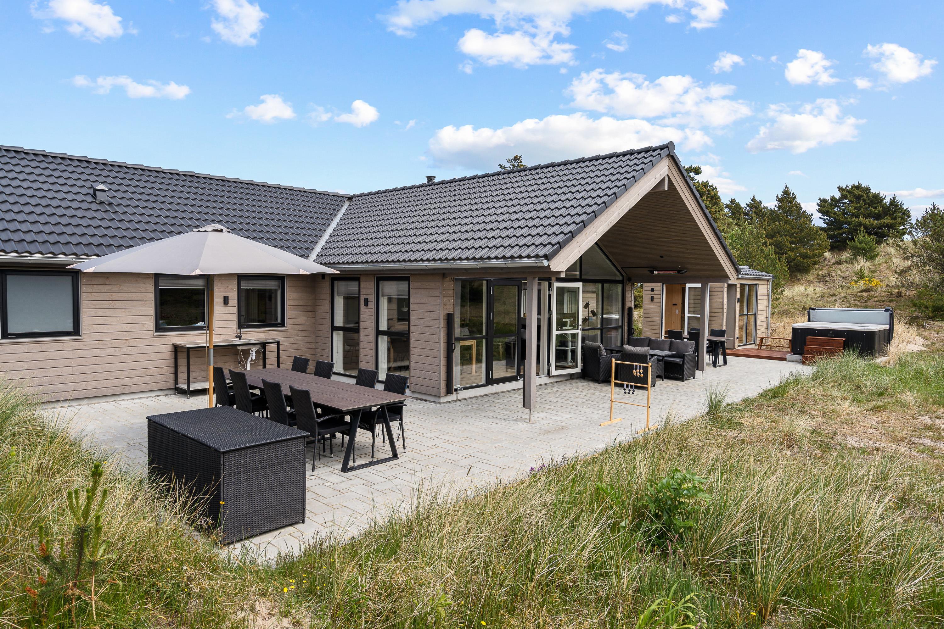 I sommerhuset på Fædriften 1 i Blåvand kan op til 12 personer og 2 hunde holde en fantastisk ferie, der er fyldt med afslapning og sjove aktiviteter. Sommerhuset byder på afslapning i spa, sauna, udespa, udesauna og udebruser, og underholdningen er sikret, da I både kan spille billard, bordtennis og bordfodbold. Sommerhuset har desuden en central beliggenhed i Blåvand, hvor I kun har 200 meter til nærmeste indkøb. Hvis I er kørende i en elbil, kan I lade den op ved sommerhusets el-stik.