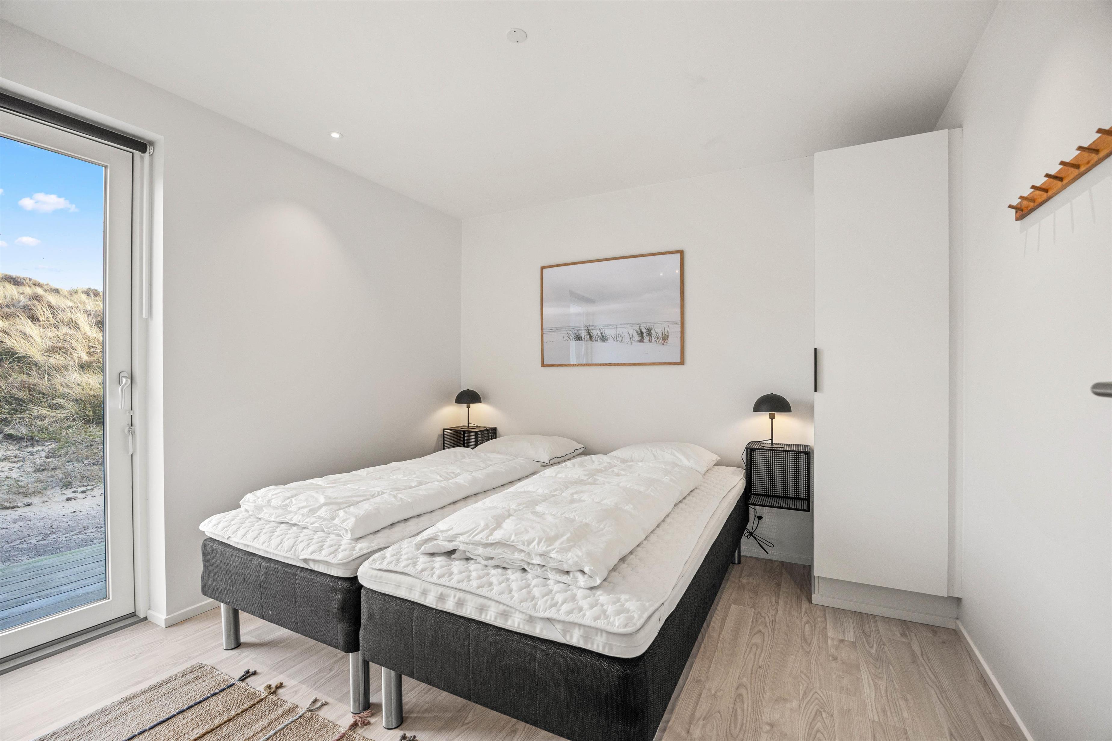 På Klitvej 9 i Blåvand venter jer en afslappende ferie i dette fantastiske, stilfulde og i 2022 nybyggede sommerhus med plads til 6 personer. Fra huset er der kun 200 meter til de brede klitter og den hvide badestrand. Med en udsigt direkte til Blåvandshuk Fyr får I her en uovertruffen beliggenhed midt i den vestjyske natur.