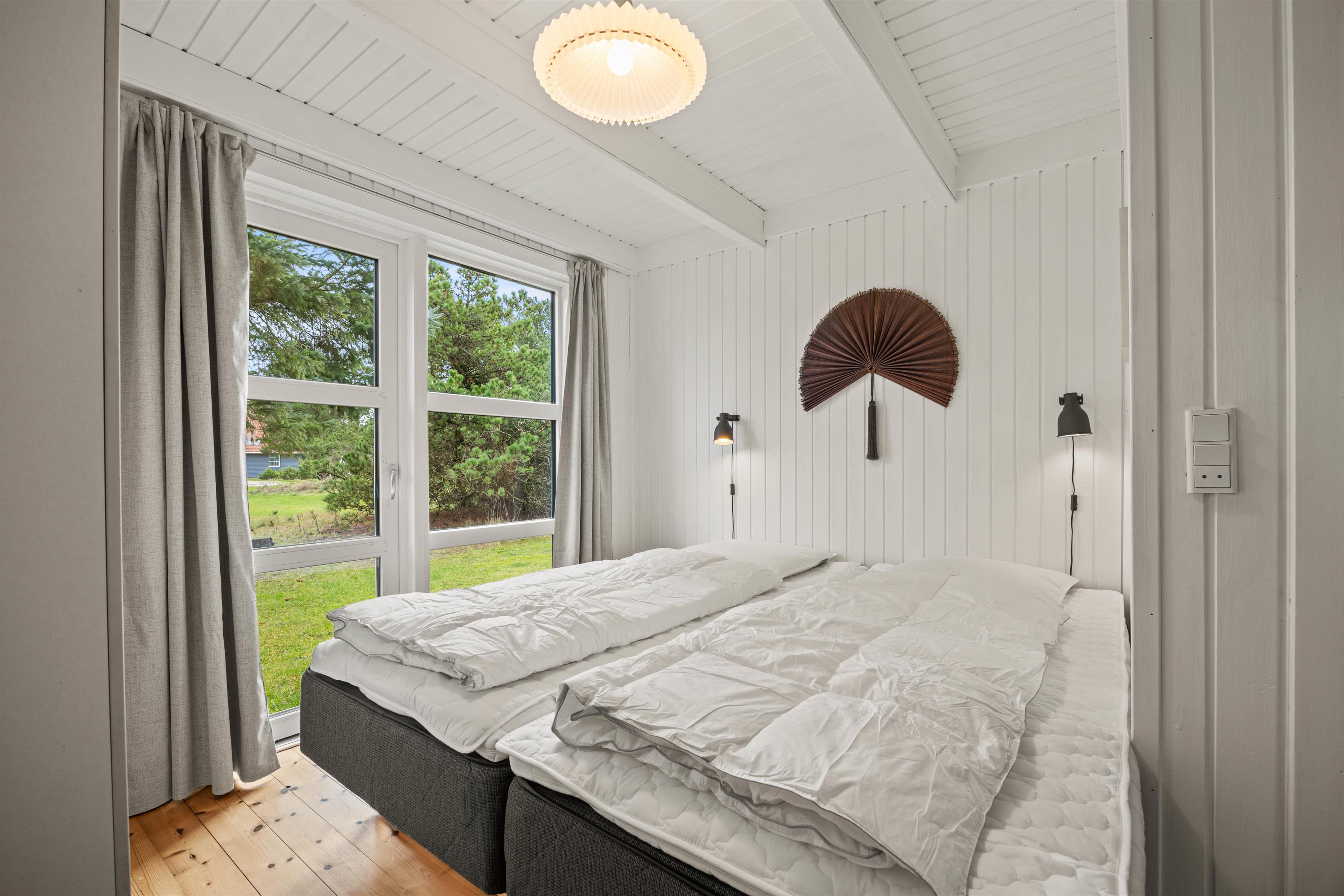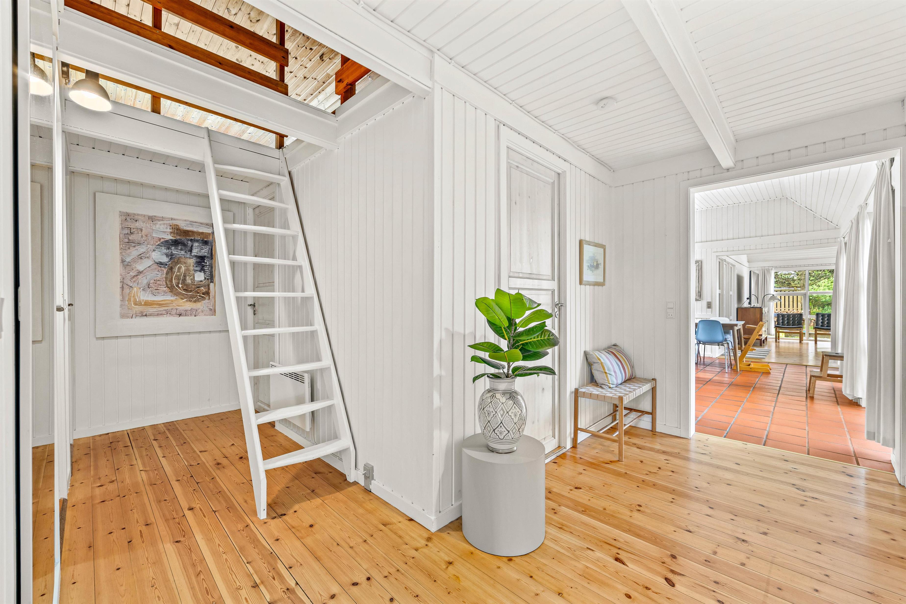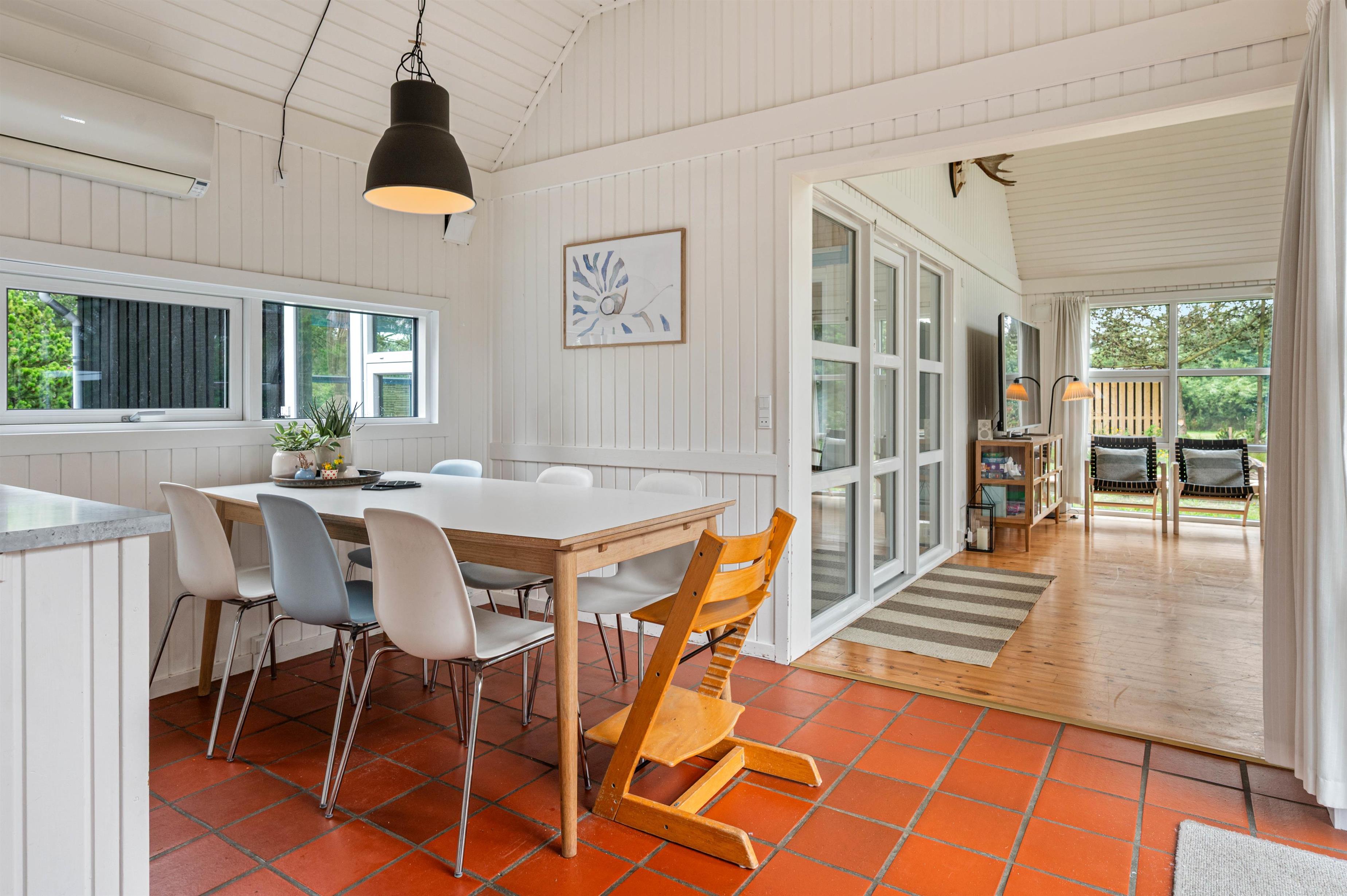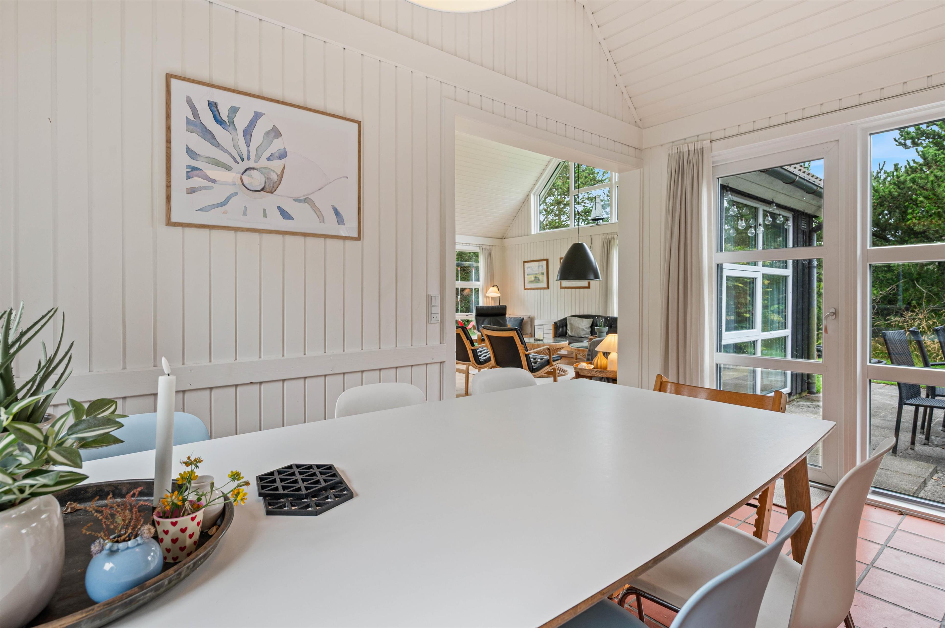 Hjertet af sommerhuset er stuen, hvor I straks vil føle jer hjemme. Rummet er indbydende og lyst grundet de mange vinduer og det hvidmalede træ, som i kombination med trægulvet skaber en hyggelig atmosfære. Tænd brændeovnen om aftenen og nyd dens varme, mens I streamer en film via Chromecast. I sommerhuset er der også danske tv-kanaler.