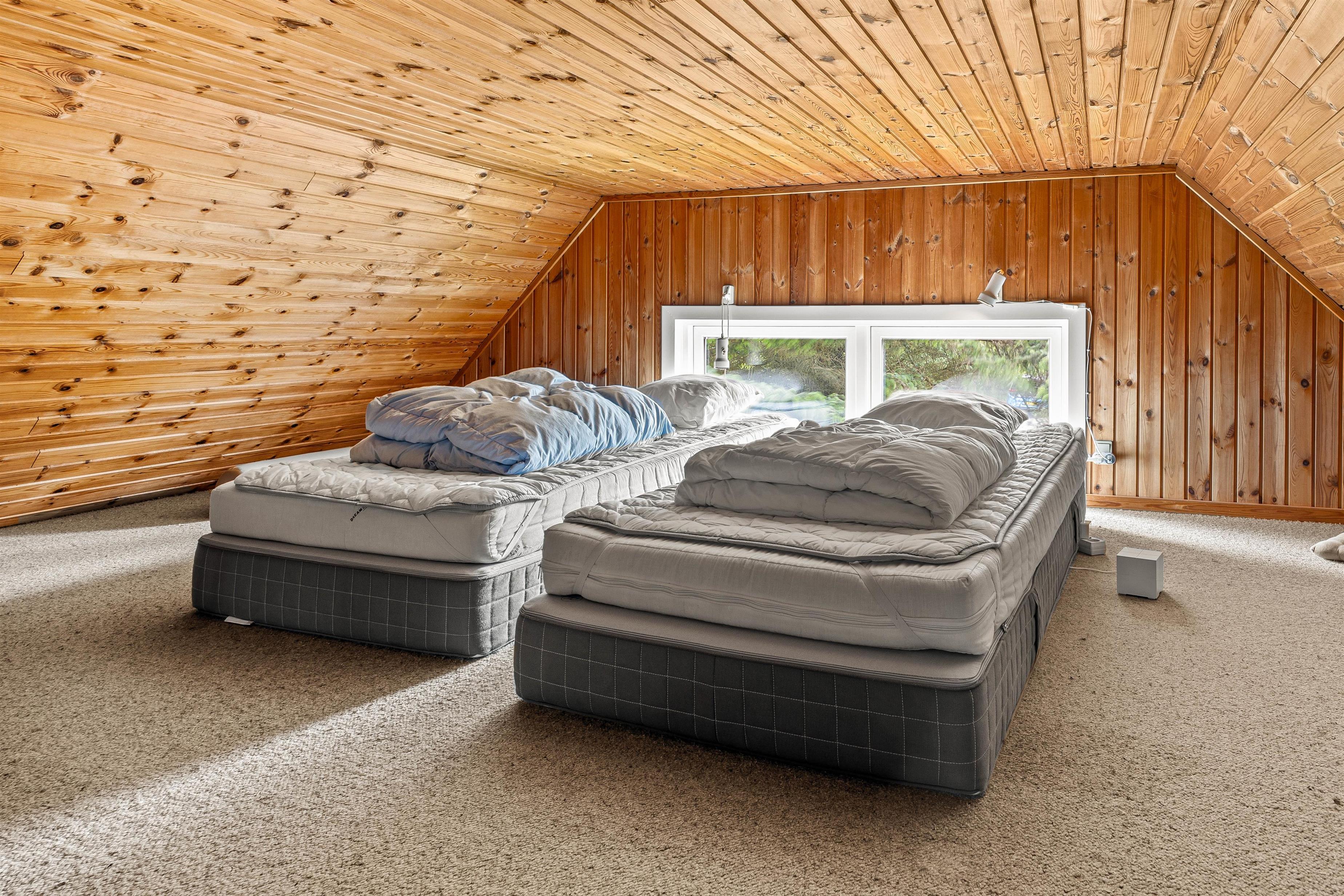 Til nattesøvnen er der 4 soveværelser samt en hems med 2 sengepladser til rådighed.
