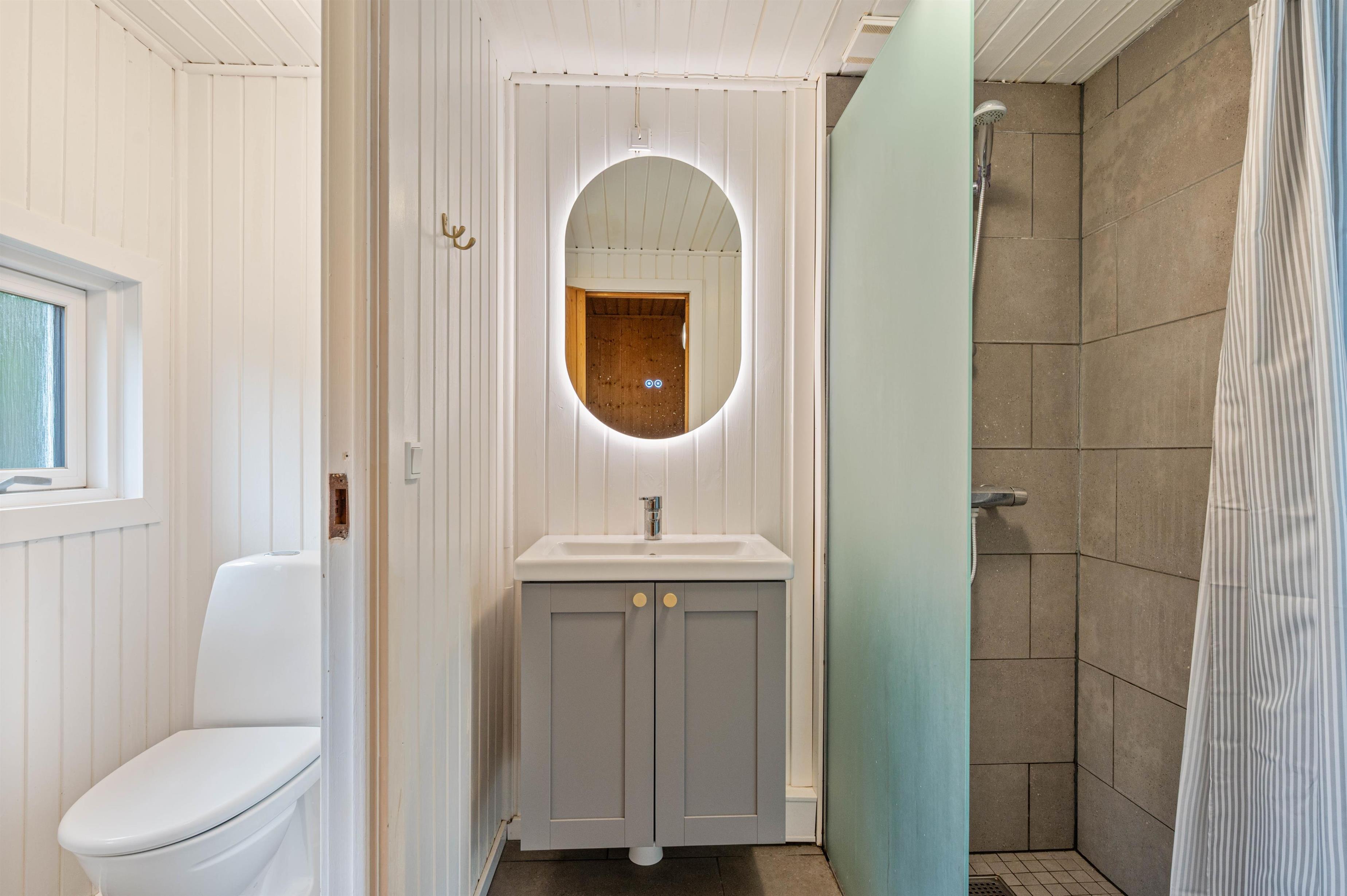I sommerhuset er der 2 badeværelser med gulvvarme. Desuden er der både vaskemaskine og tørretumbler, så I har mulighed for friske håndklæder til morgendagens svømmetur. Måske har I lyst til at svømme nogle baner før morgenmaden, inden dagen starter med fælles aktiviteter i og omkring Blåvand?