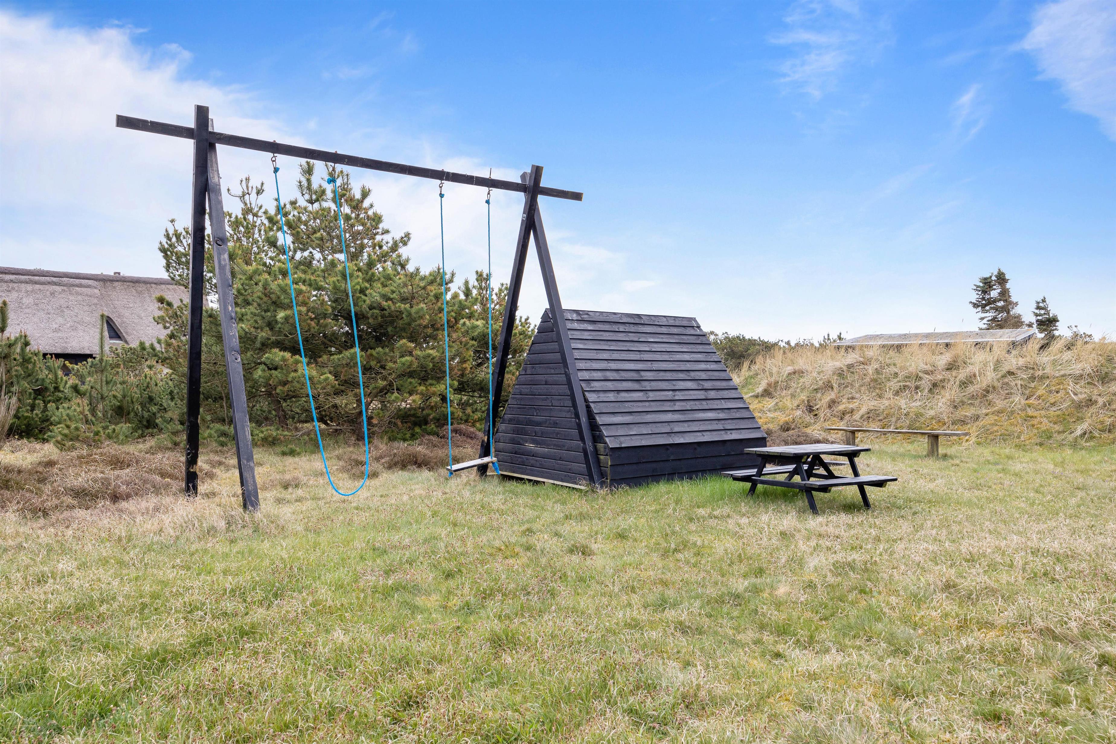 Ved sommerhuset er der en lille legeplads til familiens yngste, bestående af både sandkasse, gyngestativ og legehus. Desuden er der også god plads på naturgrunden til at spille bold eller lege fangeleg. Sommerhusets grund er i alt 1675 m2.