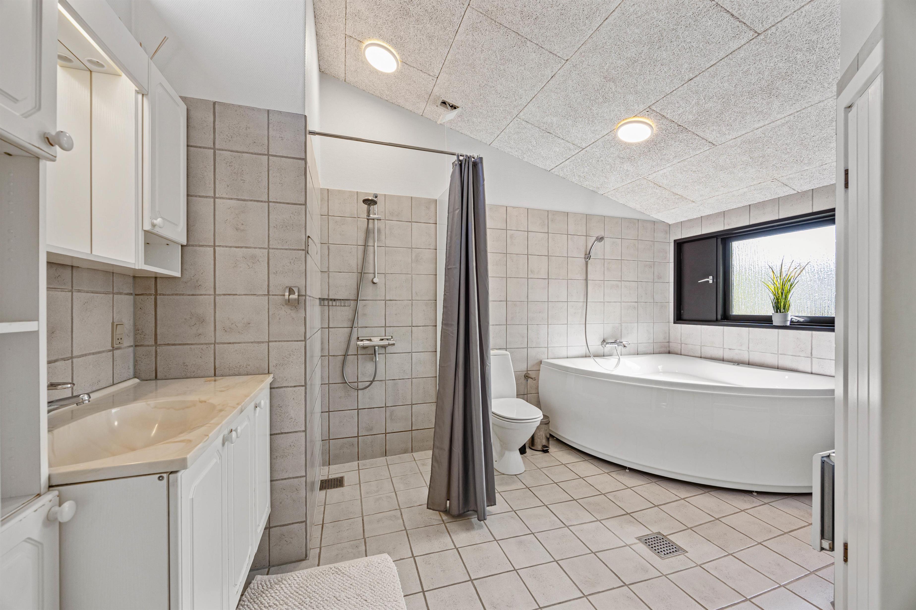 I det store badeværelse er der vaskemaskine samt spa. De 3 soveværelser er fordelt på 2 soverum med dobbeltseng og et værelse med to enkeltsenge, og da der er 2 badeværelser i huset, er det idéelt for både familier og vennepar, der skal nyde nogle dejlige feriedage i Blåvand.