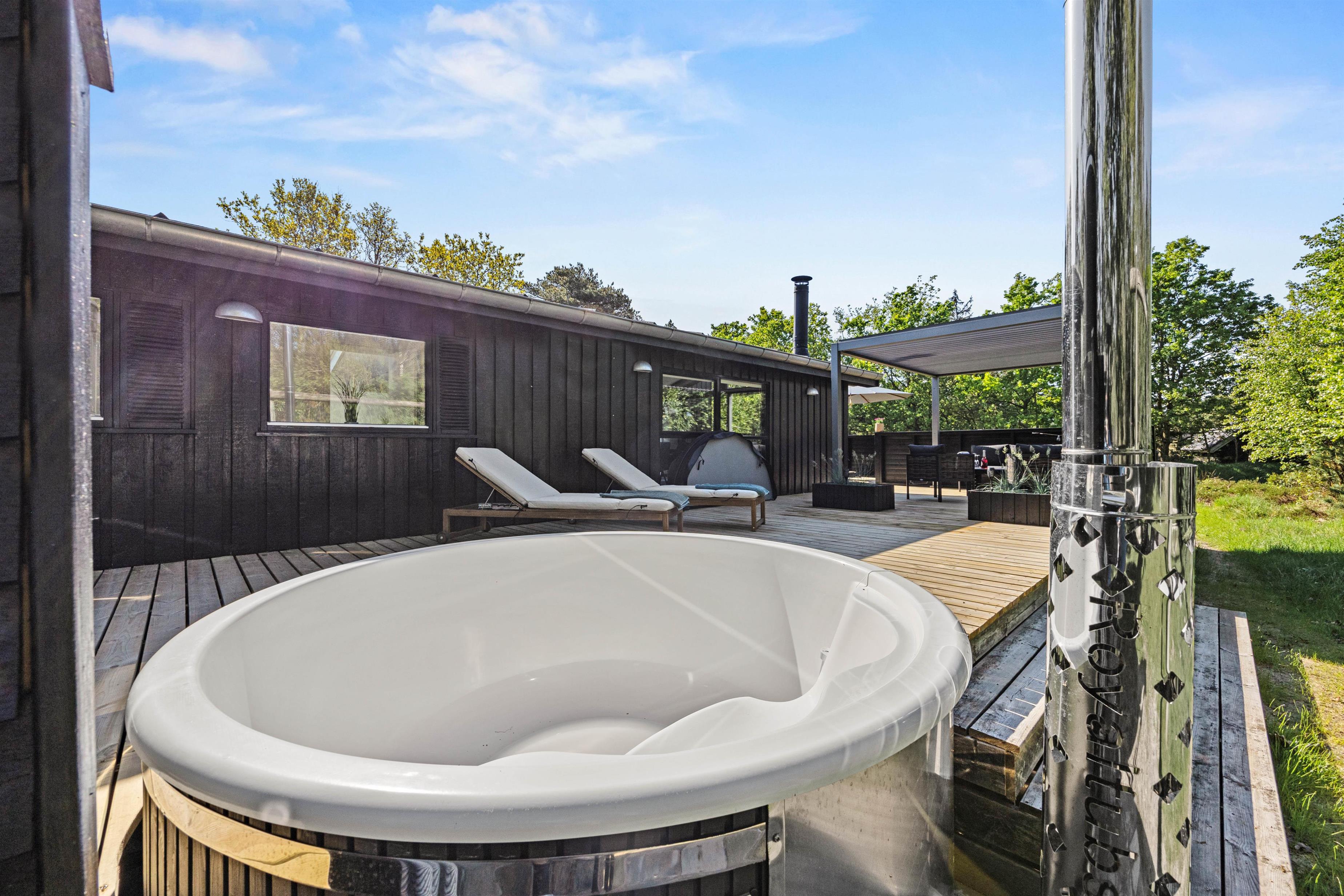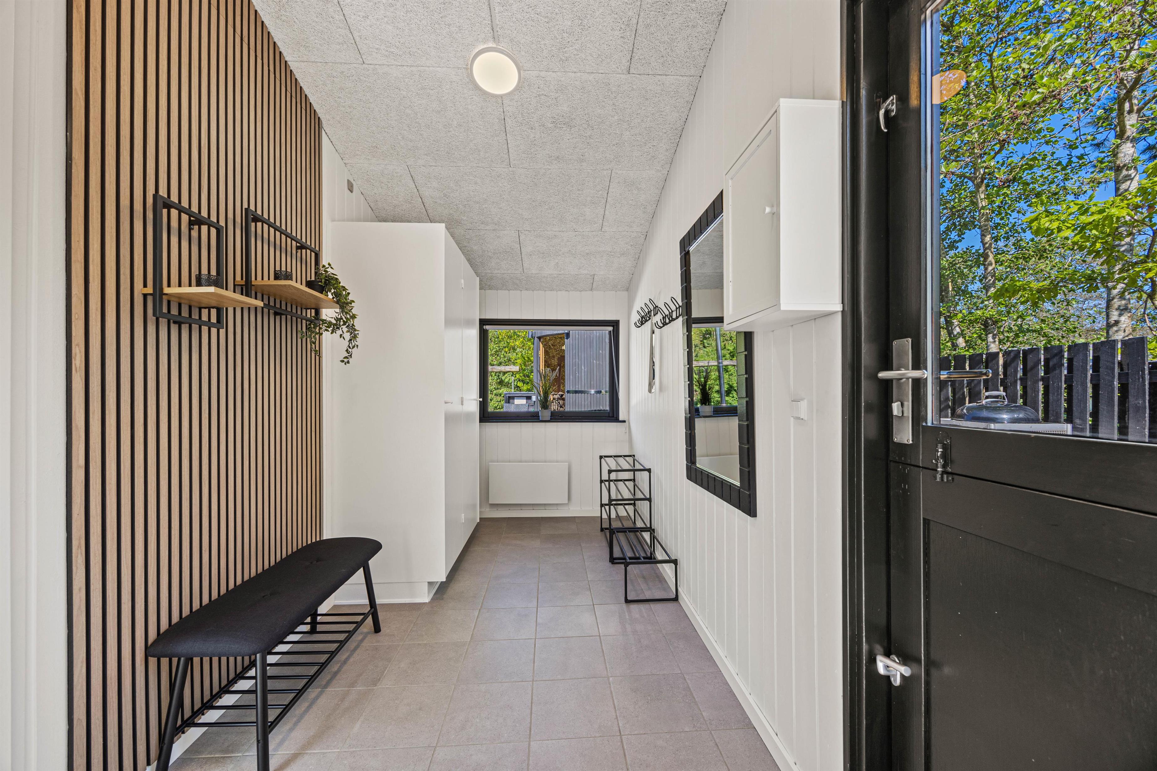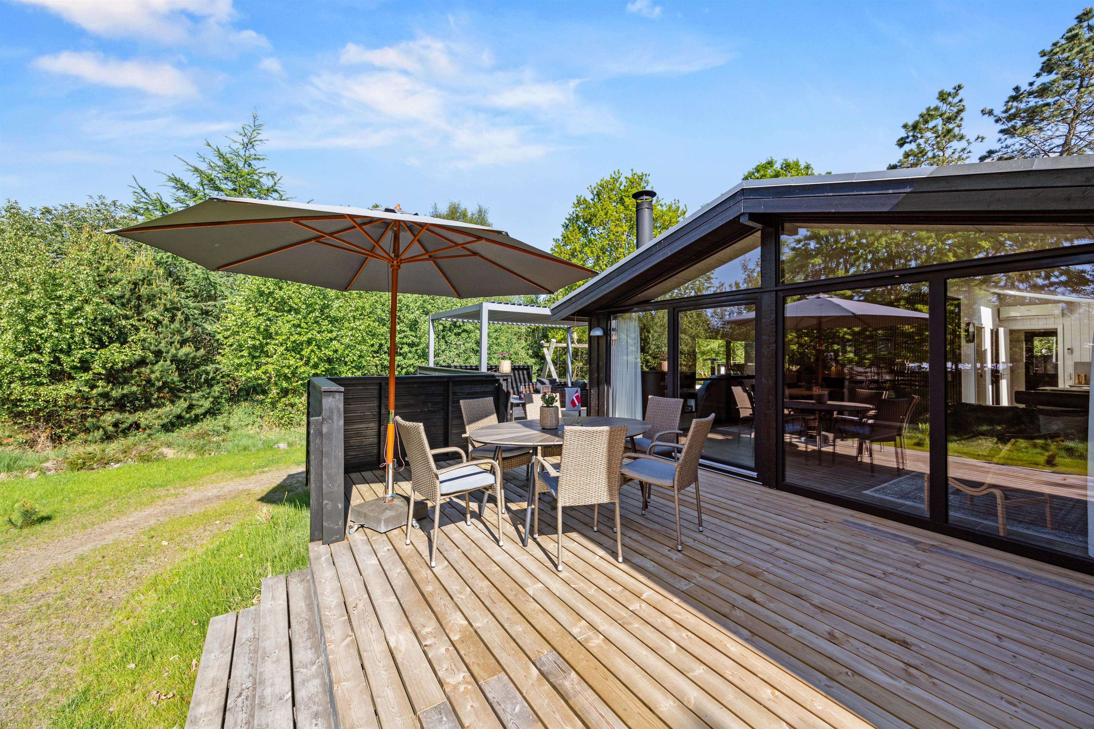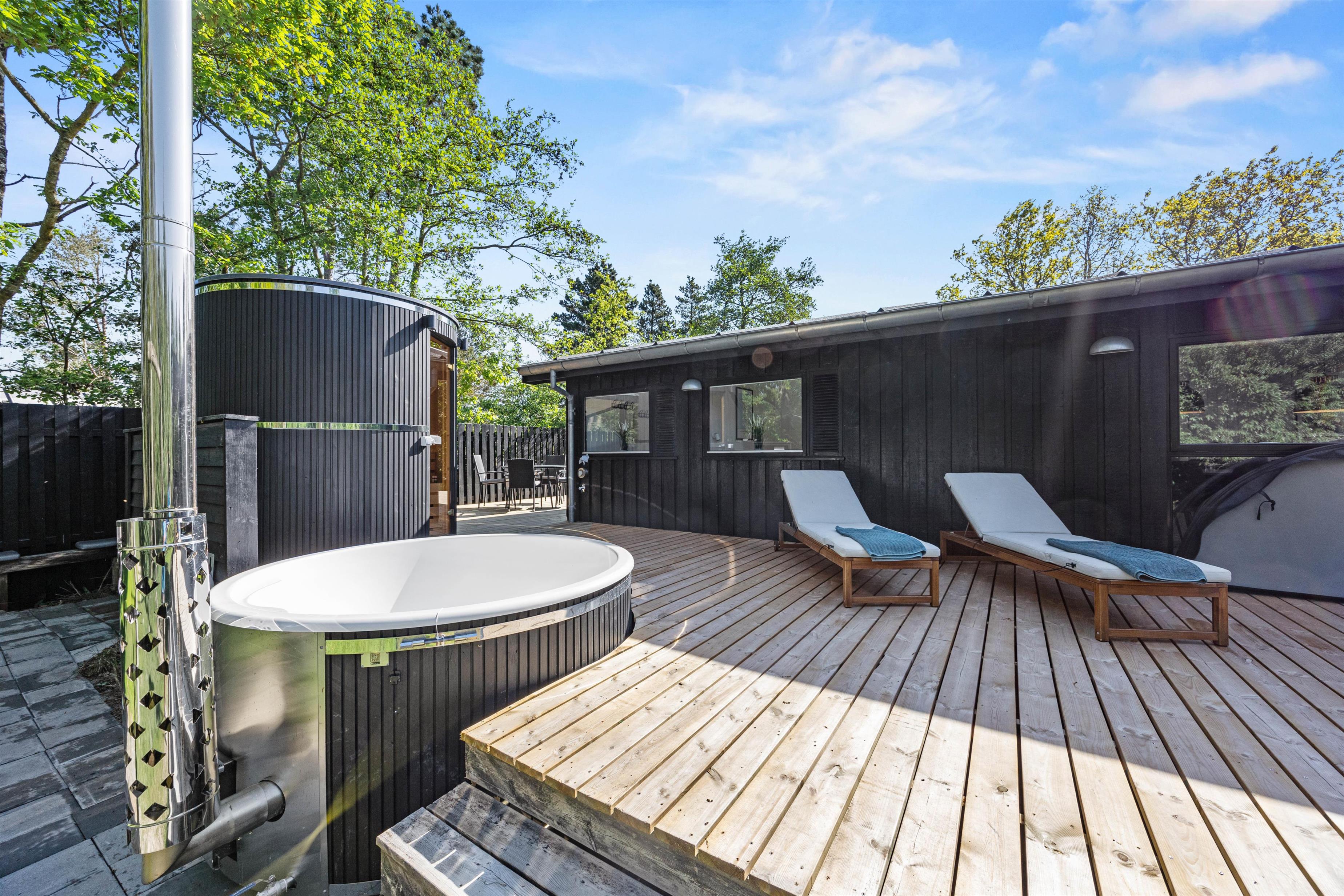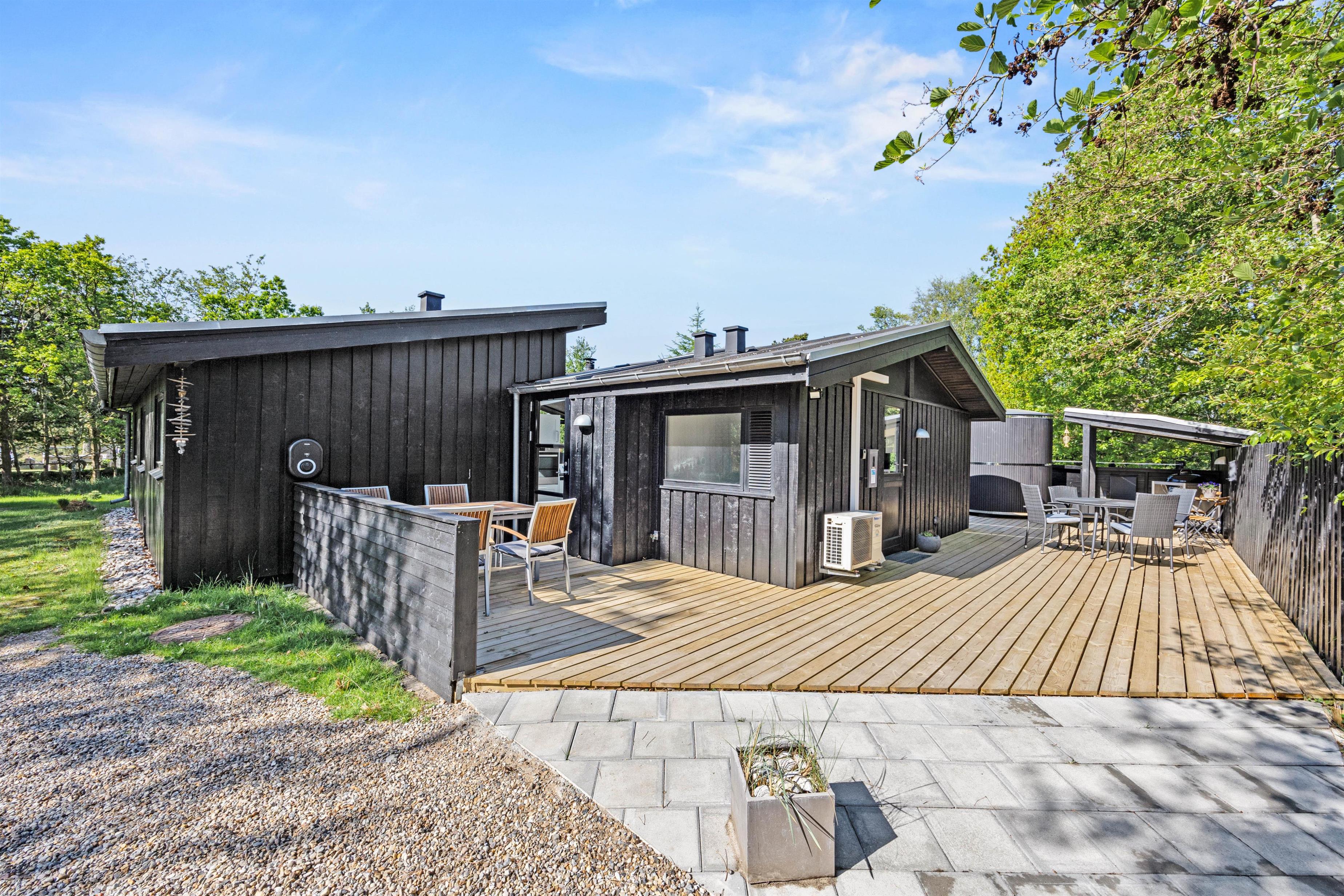 Huset er renoveret indvendigt i starten af 2025 og har fået en større træterrasse udendørs, hvor I også kan nyde et vildmarksbad og en udesauna samt sidde i loungesættet og slappe af og nyde stilheden.