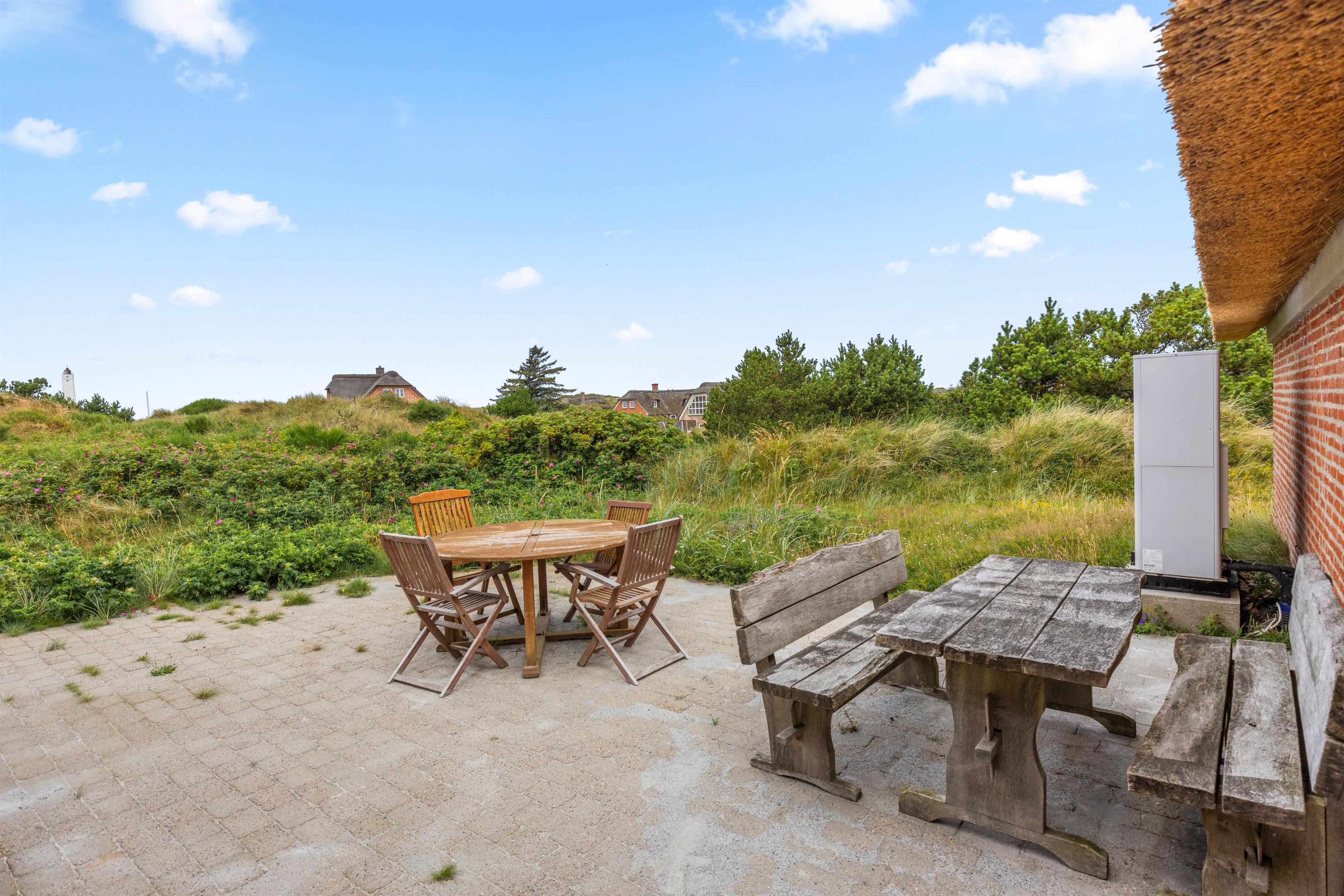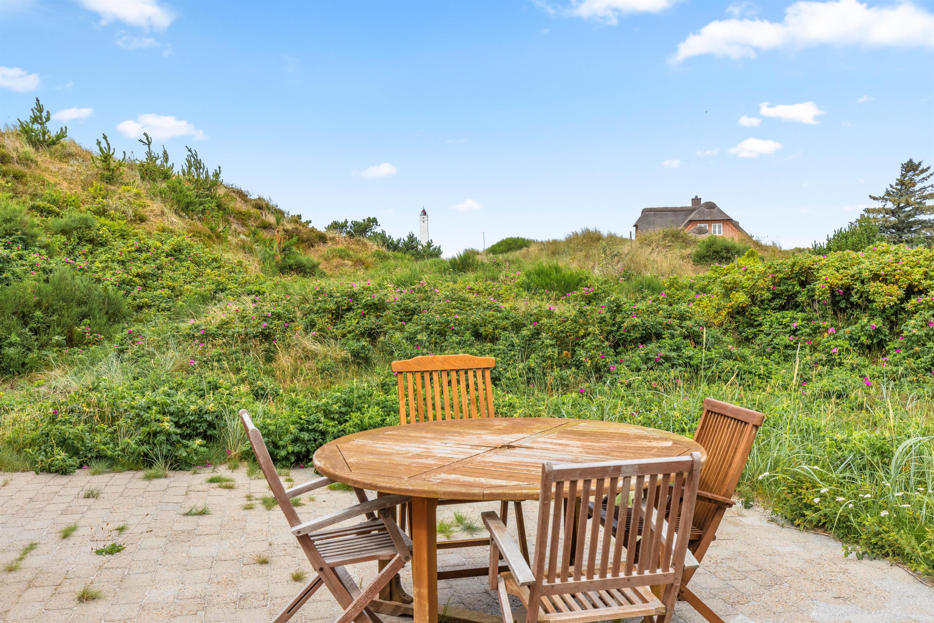 Efter en lang gåtur på stranden, der ligger blot 200 meter fra huset, kan I slappe af i den nyrenoverede sauna med glasdør. Nyd den friske havbrise på den åbne terrasse på toppen af klitten, som du nemt kan tilgå via de nye trapper eller på den store terrasse ved huset.