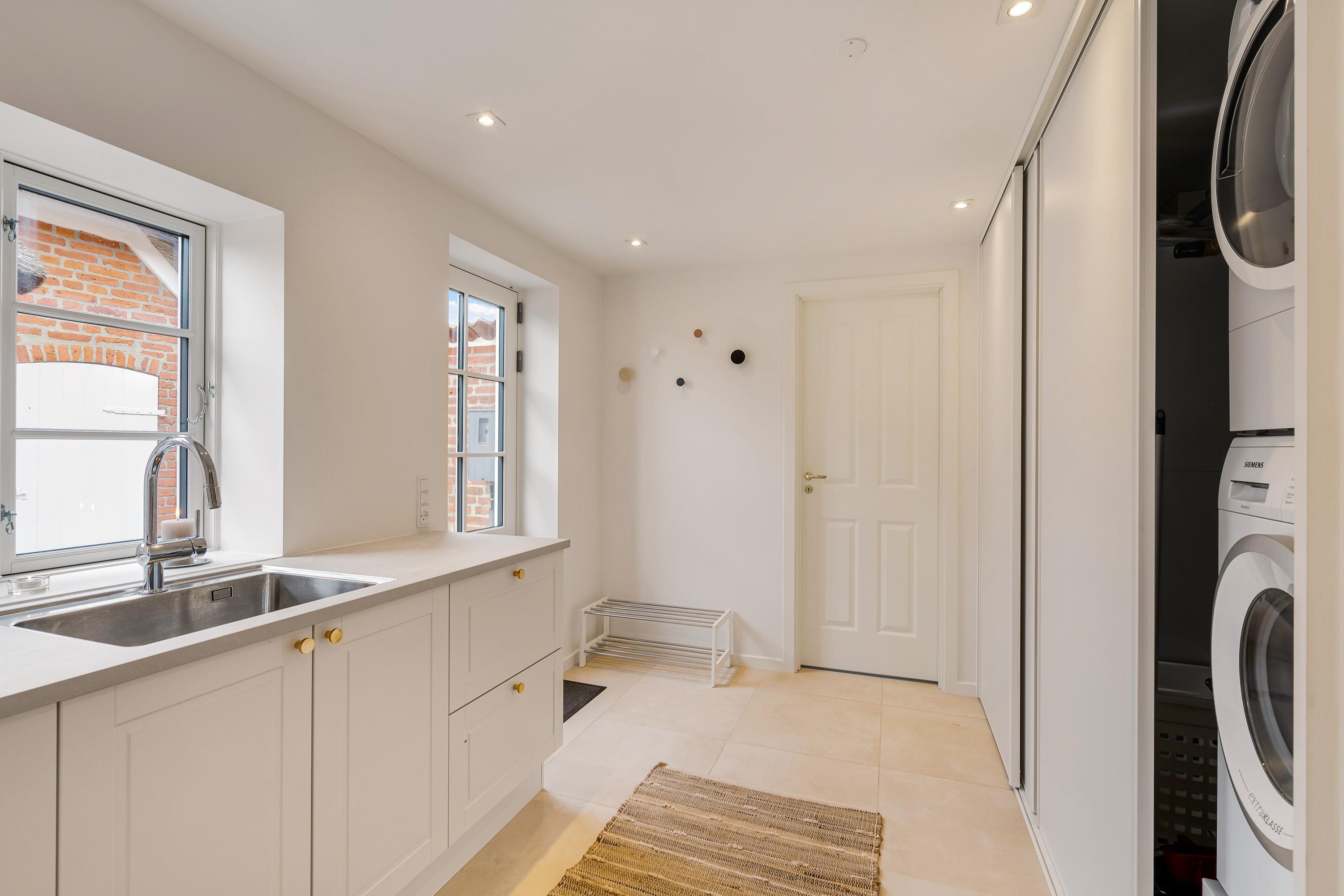 Forestil jer hyggelige aftener foran den knitrende brændeovn, der skaber en varm og hyggelig atmosfære. Derudover byder huset på moderne bekvemmeligheder som opvaskemaskine, vaskemaskine og tørretumbler, der gør hverdagen nemmere. Opholdet bliver også forbedret af gulvvarme på badeværelset og en effektiv luft-vand-varmepumpe, der sikrer en behagelig temperatur året rundt.