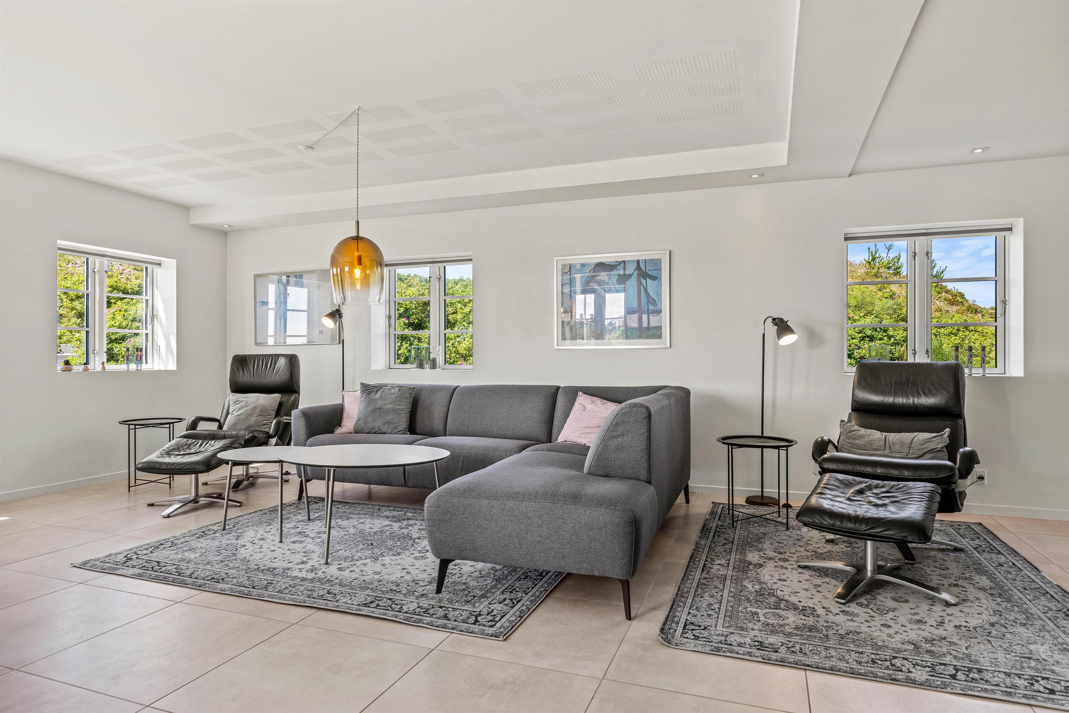 Et af højdepunkterne ved dette sommerhus er den flotte panoramaudsigt fra første sal. Med store altandøre og et skønt lysindfald fra de moderne rytterlys skabes en indbydende og afslappende atmosfære til hyggelige stunder. Med butikker kun 1800 meter fra huset, har I alt, hvad I behøver i nærheden.