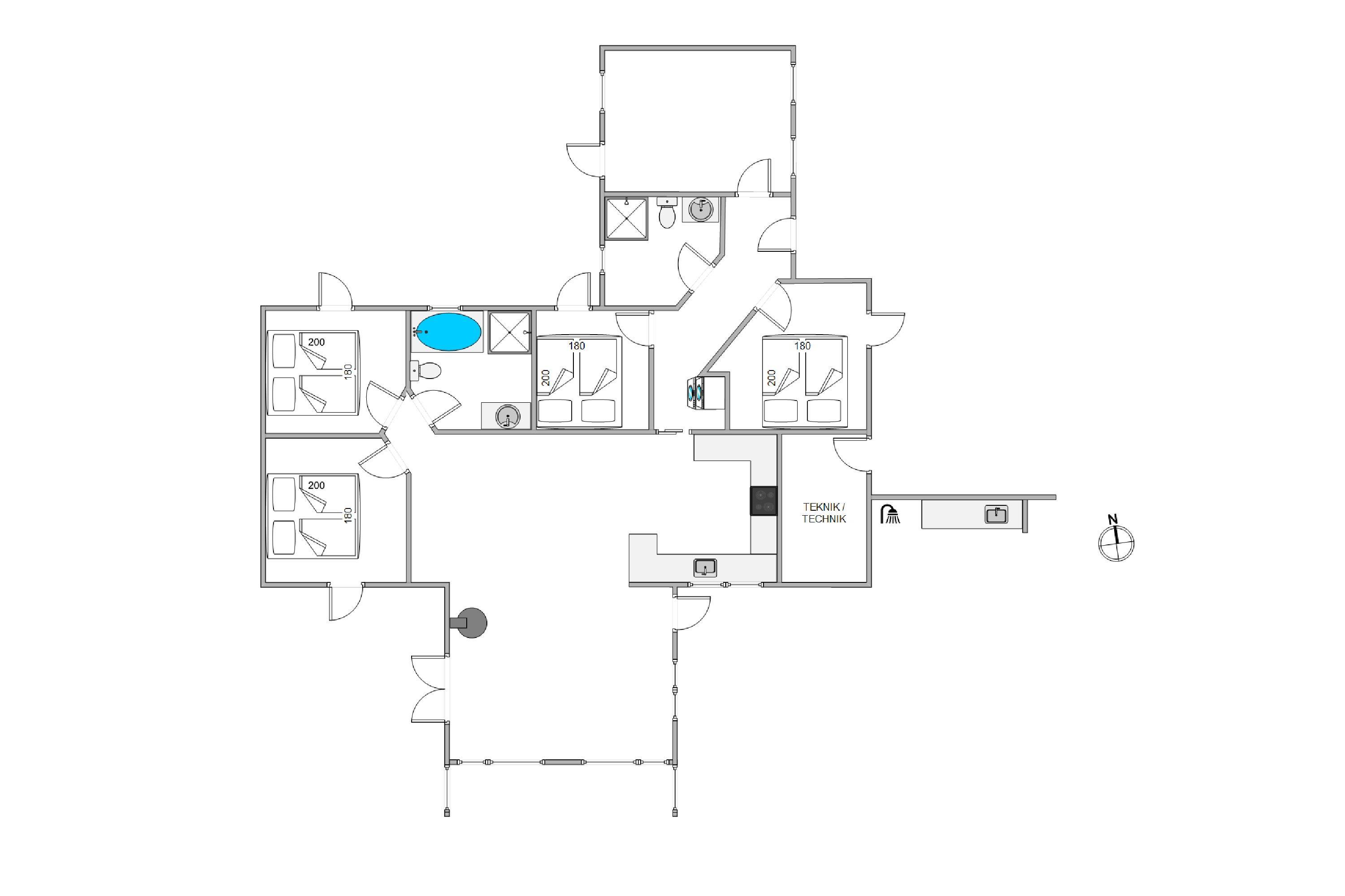 Sommerhuset har 2 moderne badeværelser med gulvvarme, og det ene er indrettet med spabad – helt perfekt til afslapning efter en oplevelsesrig feriedag. Med 4 komfortable soveværelser er der rigelig plads til op til 8 personer, hvilket gør feriehuset til det ideelle valg for en familieferie eller en tur med venner.