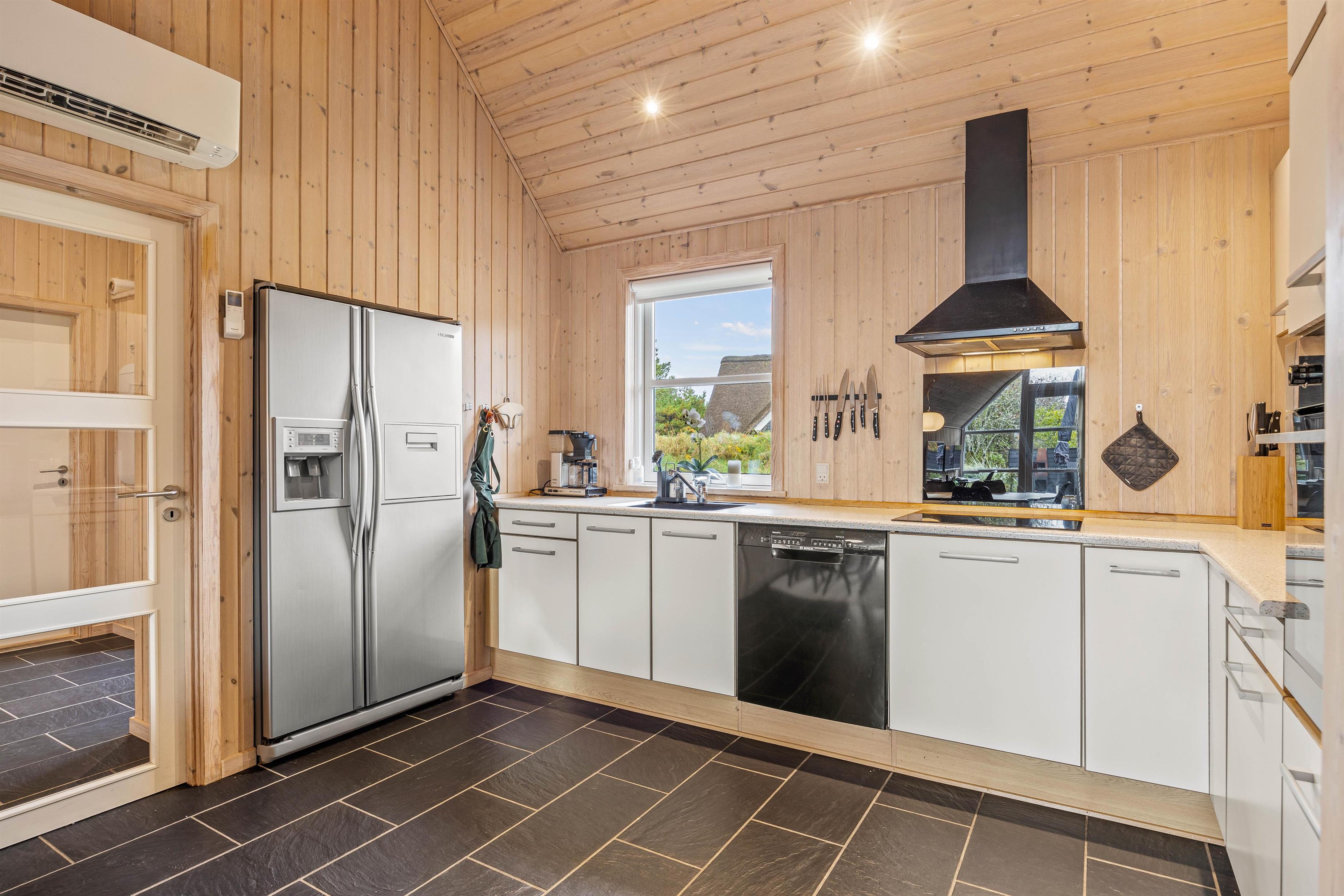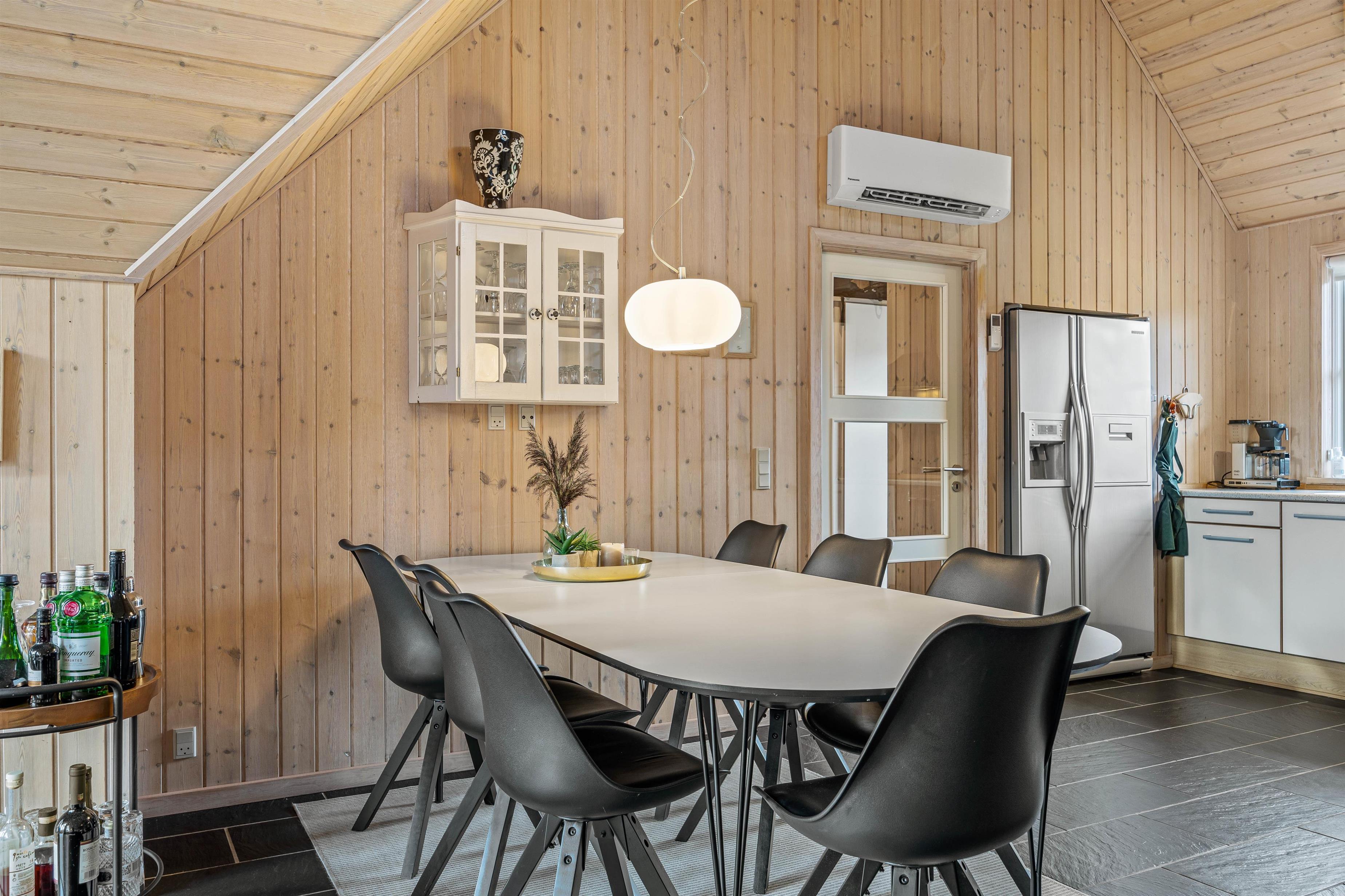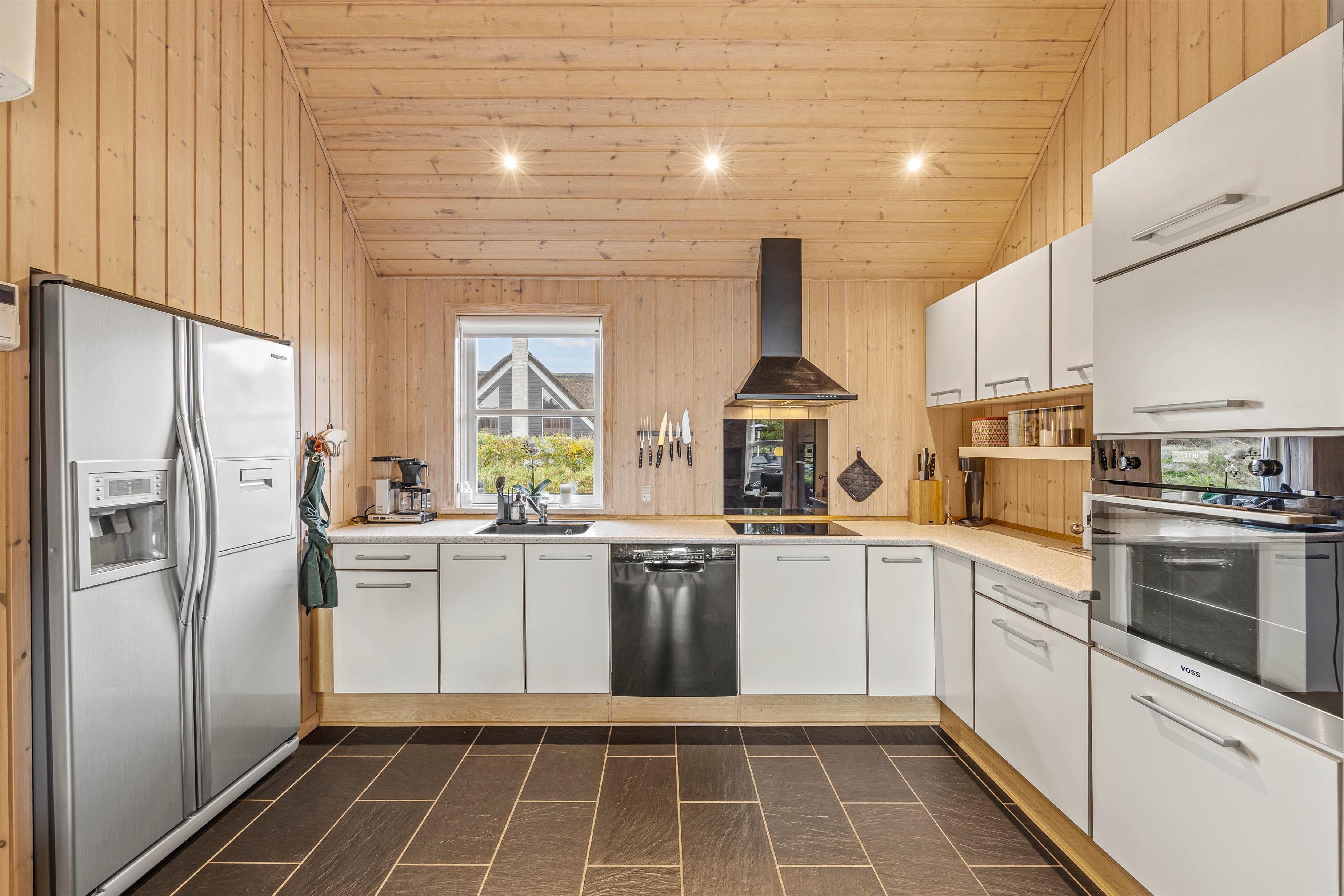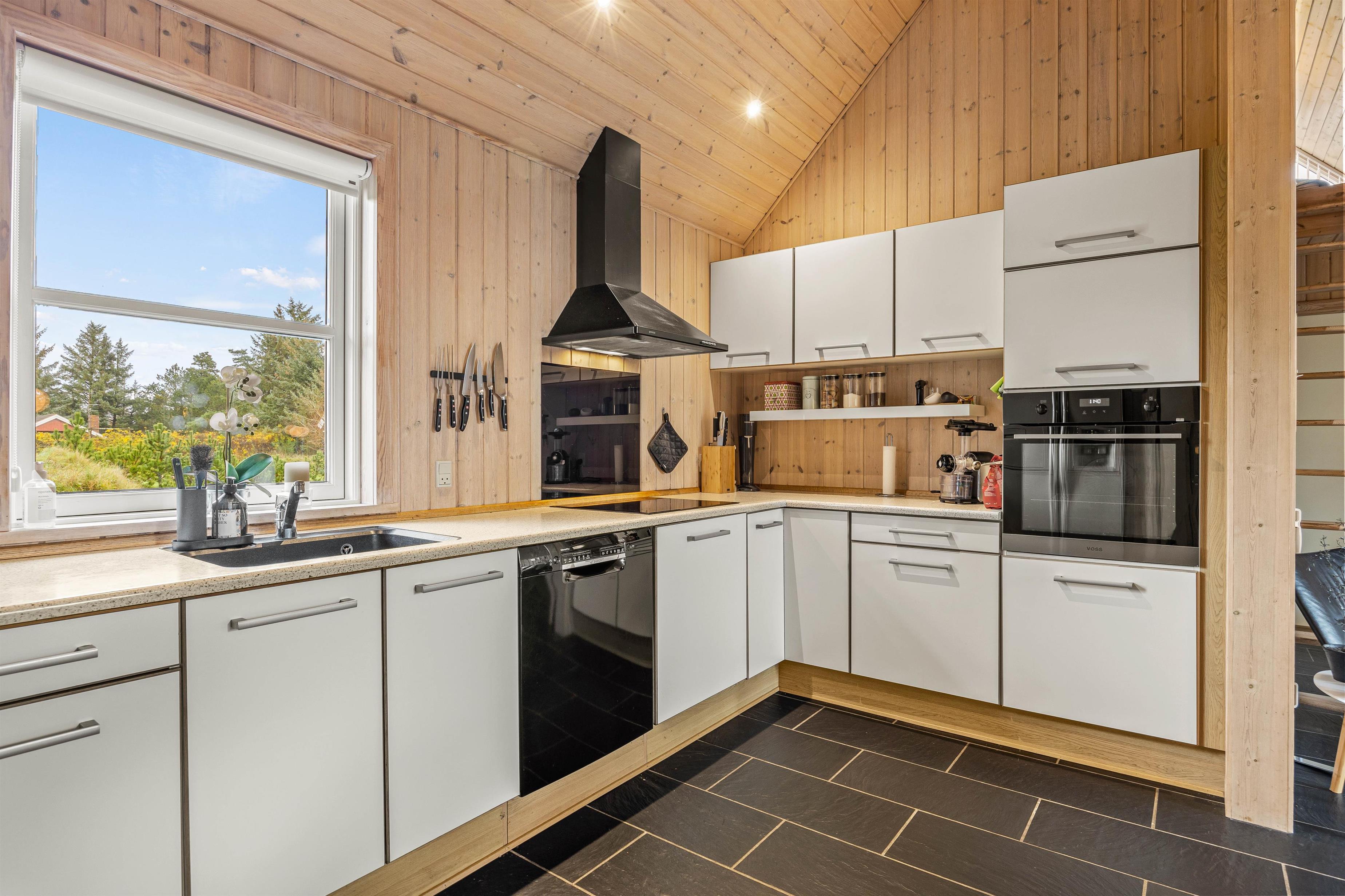 Straks I træder ind i dette feriehus, vil feriefreden sænke sig, for her er tænkt på det hele. Lige fra det moderne hvide køkken med stort køleskab, opvaskemaskine, induktionskogeplade og ovn i løftehøjde til den hyggelige spiseplads tæt på, hvor der kan spilles, være kreativ eller nydes et dejligt måltid.