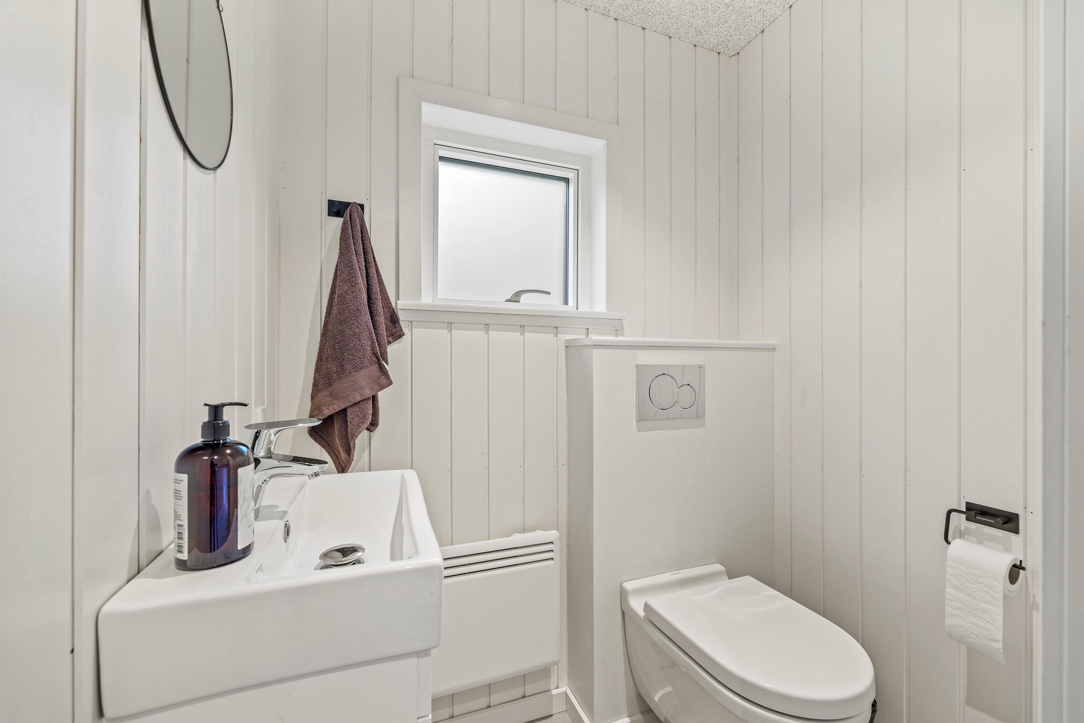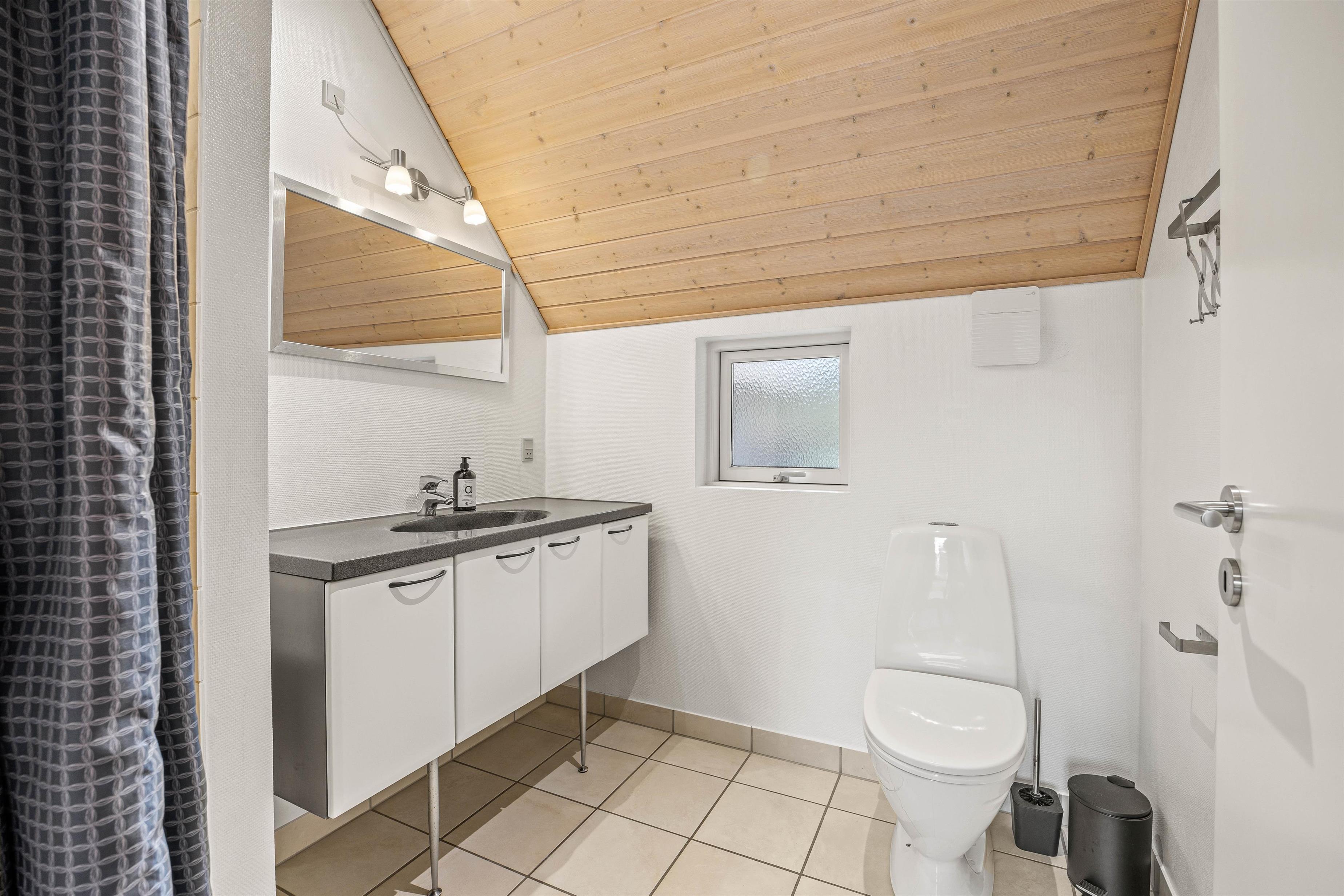 Der er i alt 3 badeværelser, hvoraf det ene befinder sig i annekset. I feriehuset er der 2 badeværelser, hvoraf det ene også indeholder en lækker 2-personers spa og en dejlig sauna. Der er naturligvis gulvvarme i alle badeværelser, og der forefindes vaskemaskine og tørretumbler i huset.