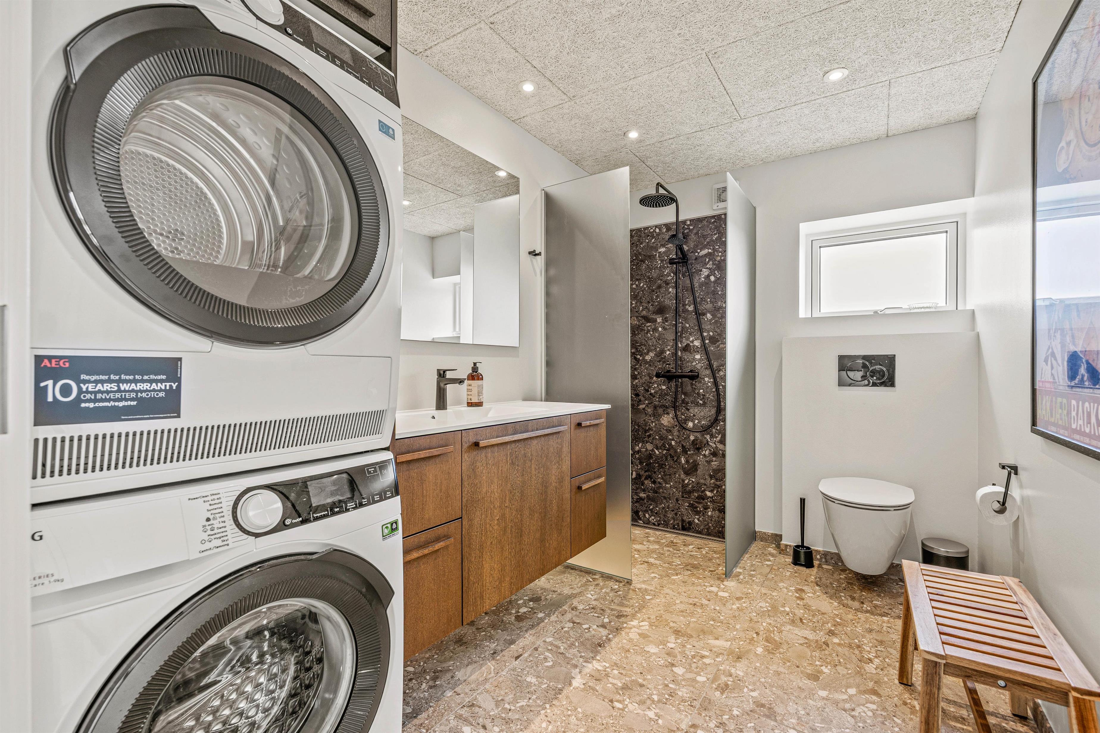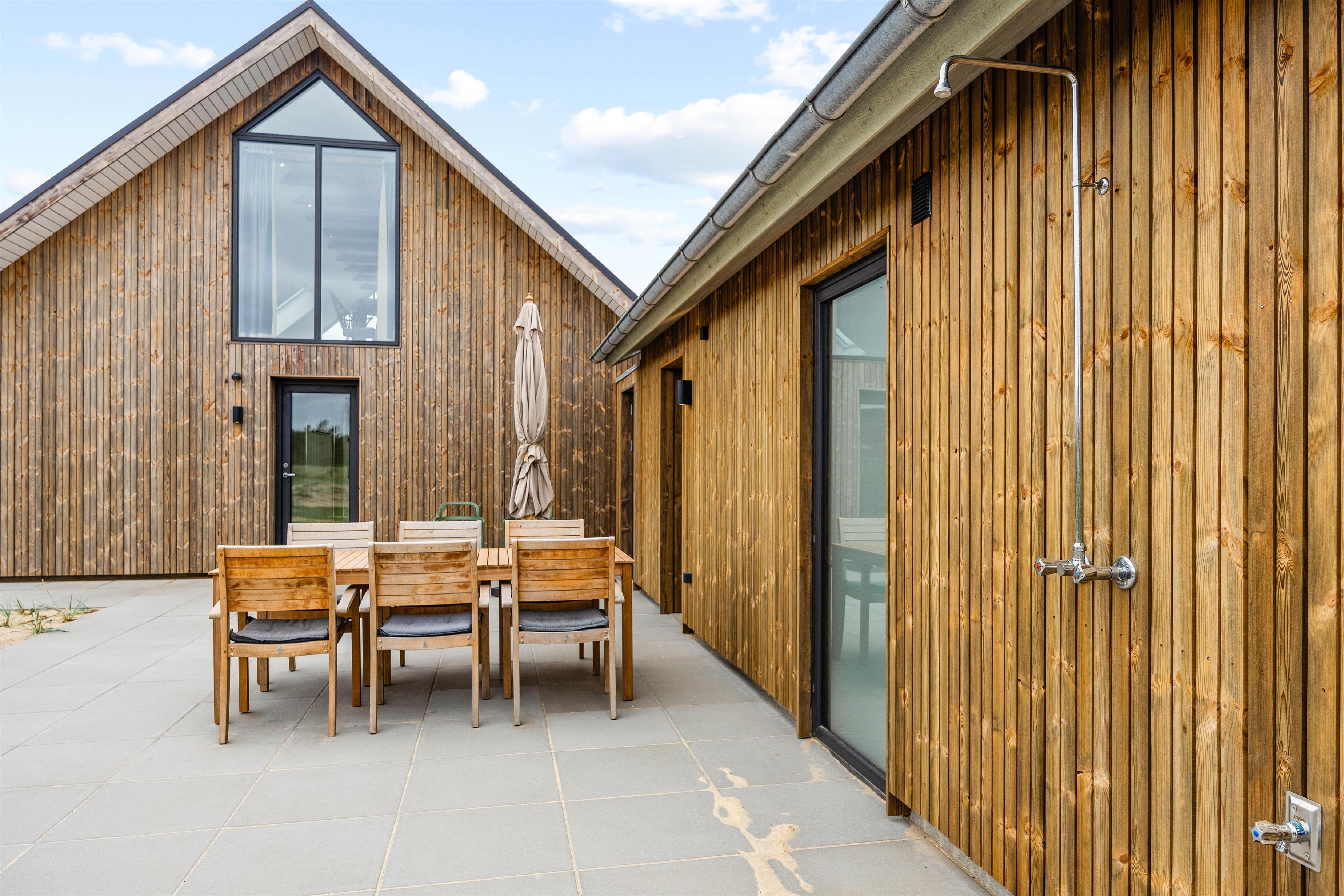 Nyd komforten i 2 badeværelser, der er udstyret med gulvvarme og en innovativ luft-til-vand-varmepumpe. Med huset får du desuden en udendørs bruser (kan benyttes fra 1. april til 31. oktober) til ren wellness efter en lang dag på stranden - sommerhuset ligger kun 150 meter fra den fantastiske, brede strand i Blåvand, så I kan hurtigt få sand under fødderne og sol på næsen på varme sommerdage eller gå en forfriskende tur i efteråret, varmt påklædt, og blive blæst igennem af den vestjyske vind.
