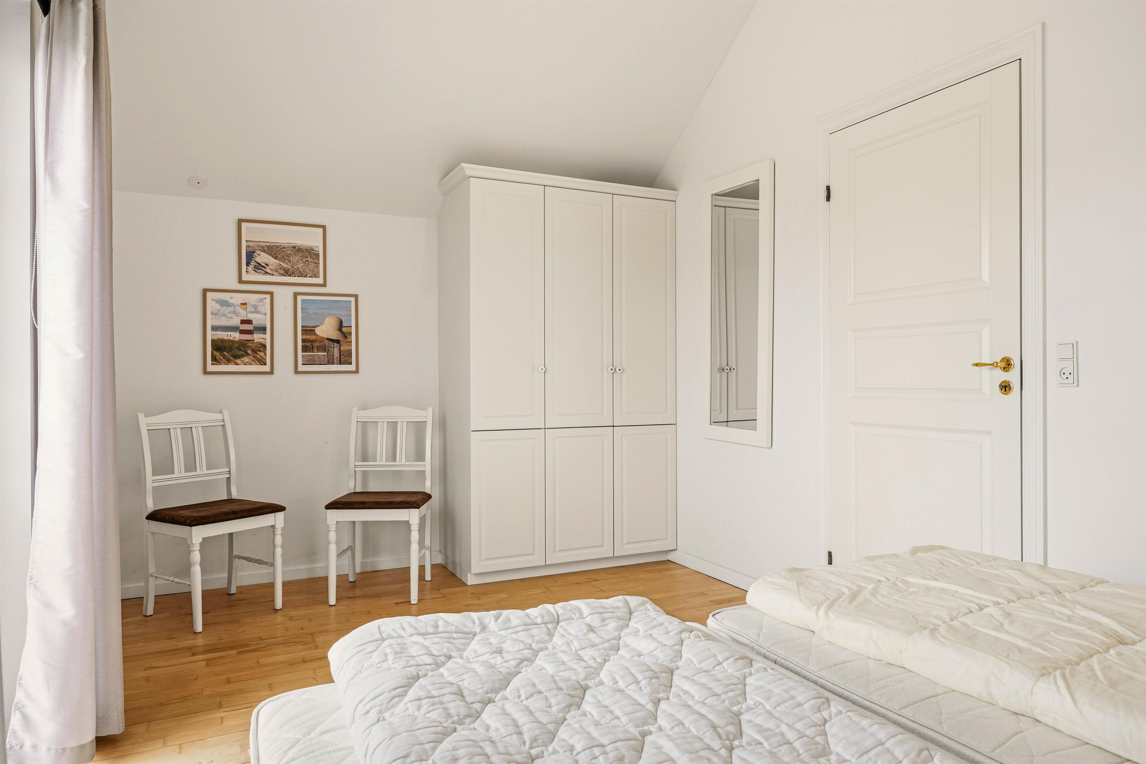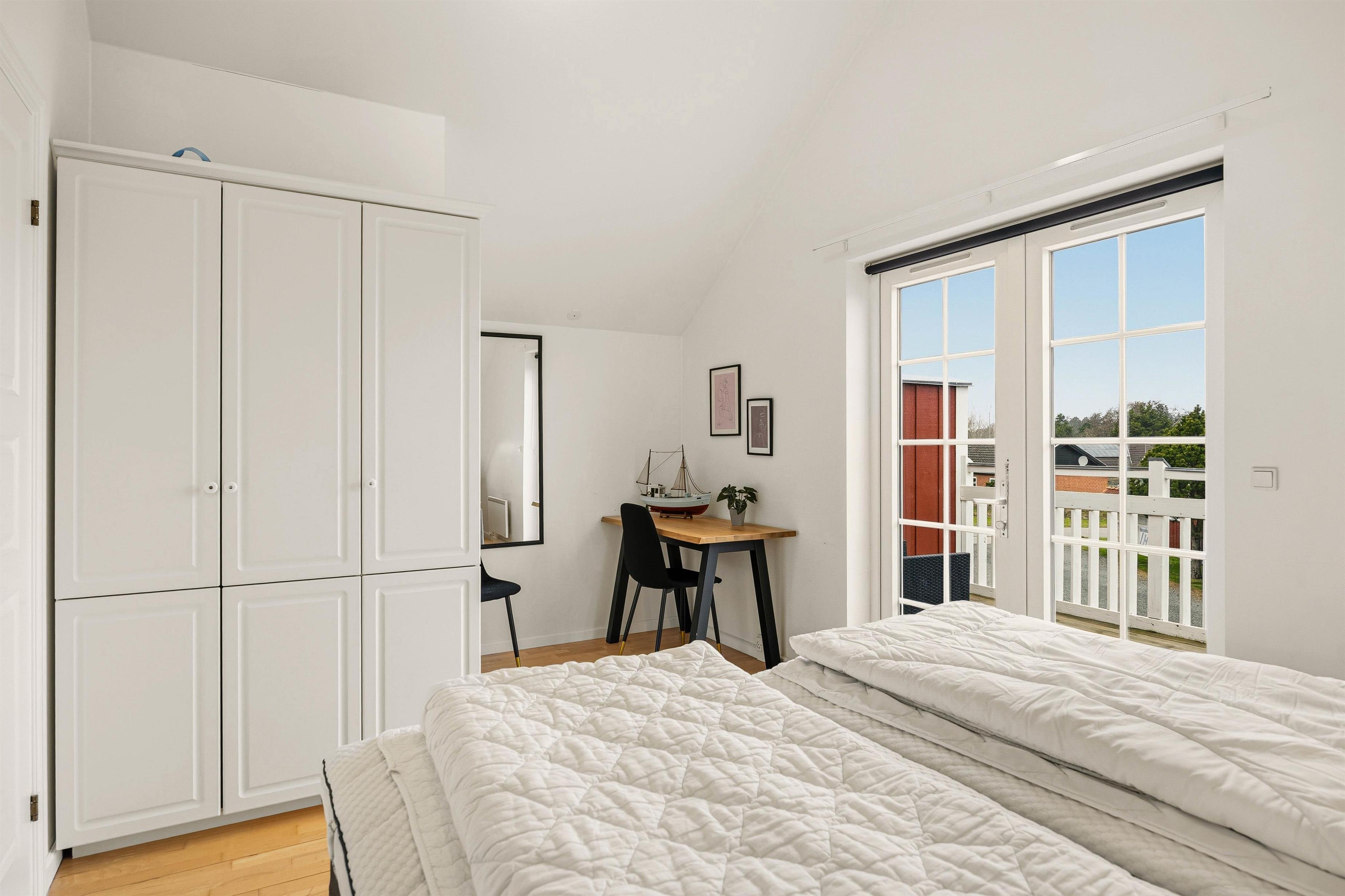 Her er der tænkt på, at du gerne vil have både fællesskab og privatliv. Huset har to soveværelser med hver sin dobbeltseng, så I kan sove godt og vågne udhvilede. Med to badeværelser undgår du kø om morgenen, og efter en lang dag er det rart, at tingene glider nemt. I badeværelset giver gulvvarmen en lun start på dagen, og en energieffektiv varmepumpe hjælper med et behageligt indeklima, uanset om du besøger Blåvand i blæst, sol eller køligere sæsoner.