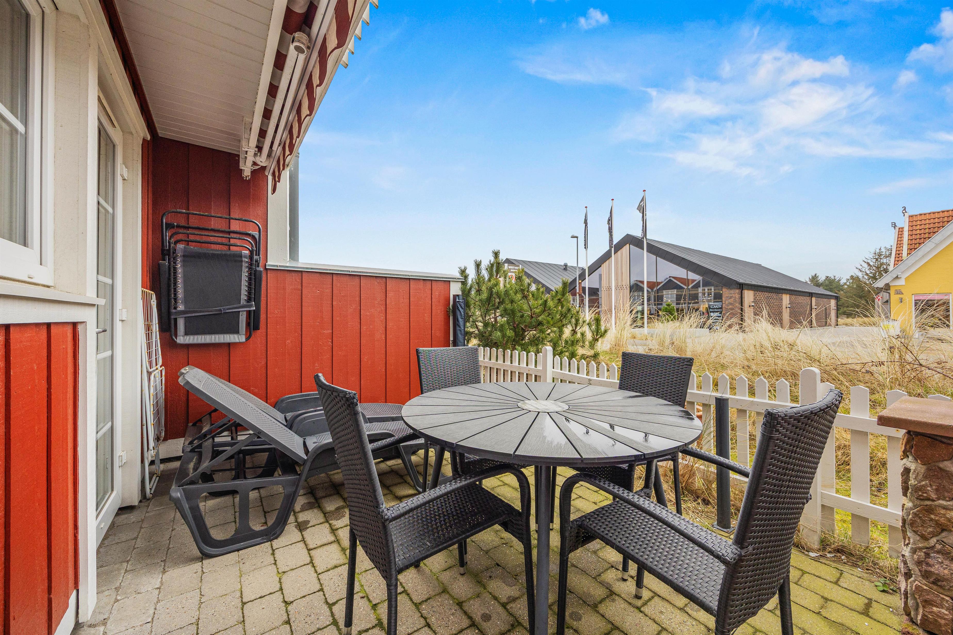 Vil du sidde ude, får du flere terrasser at vælge imellem, og det mærkes som ekstra ferieluksus. Den åbne terrasse indbyder til sol og afslapning, mens den overdækkede terrasse gør det let at blive siddende, også når vejret skifter. Med havemøblerne kan du skabe din egen rytme: langsomme morgener, frokost i det fri og aftener, der trækker ud, fordi du ikke har lyst til at gå ind endnu. Det er netop sådan et uderum, der gør dagene større.