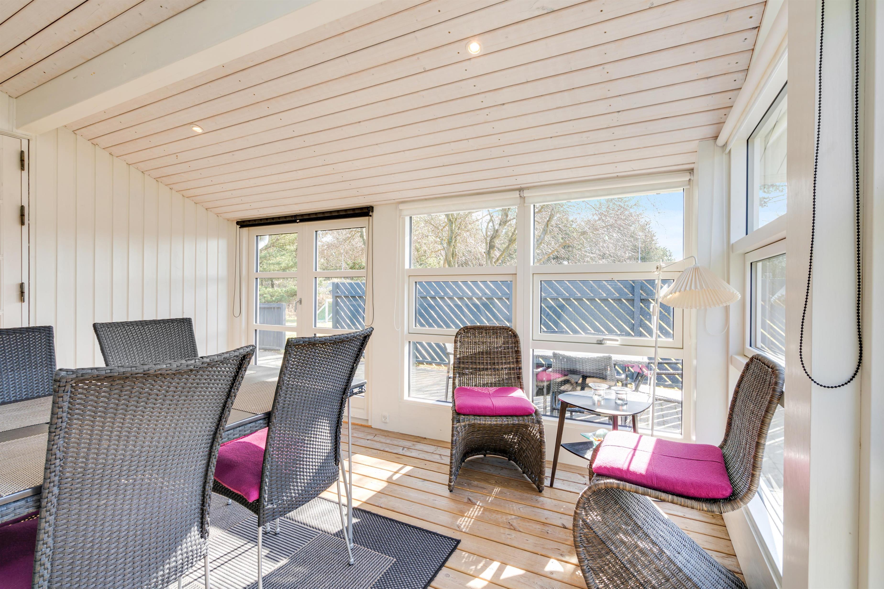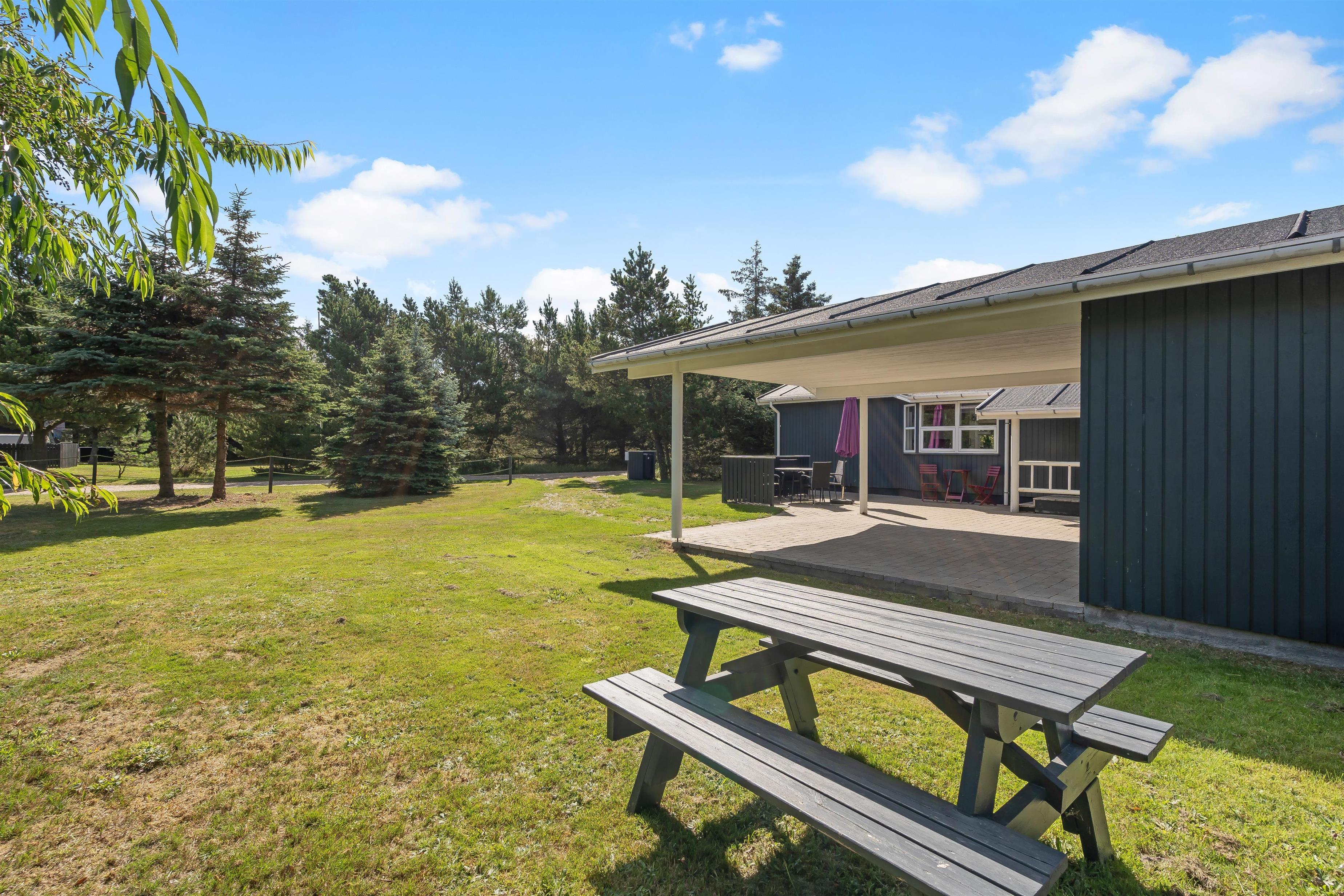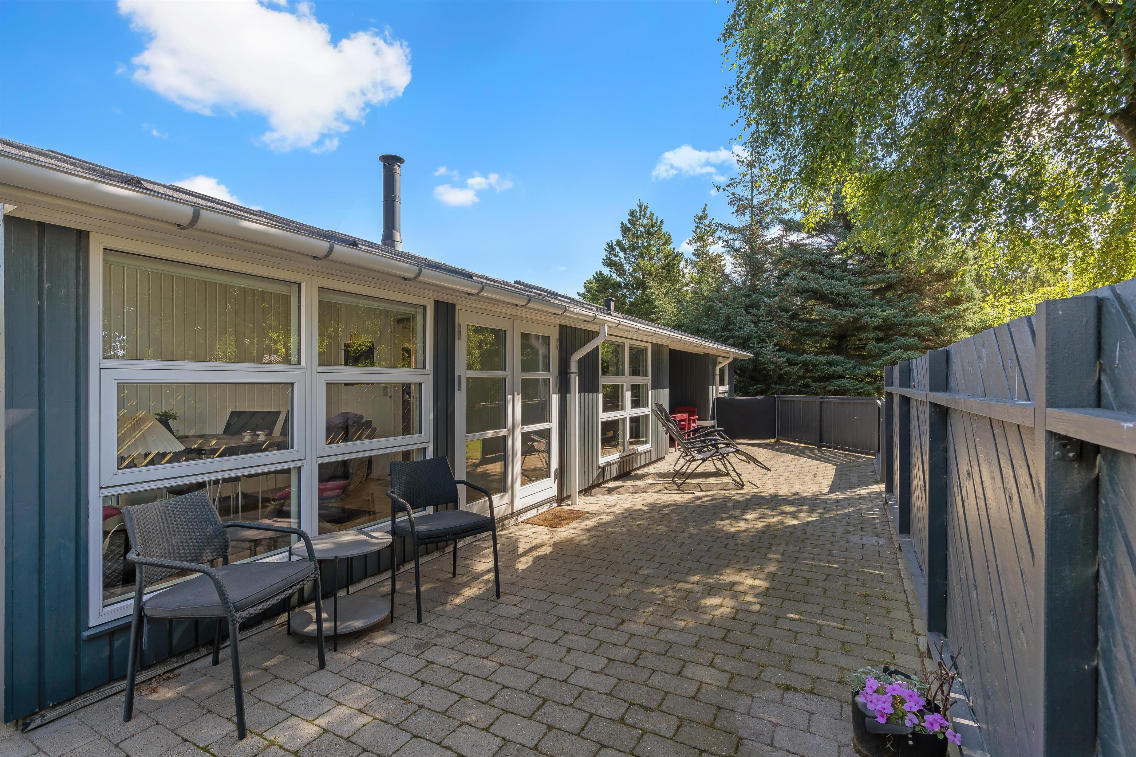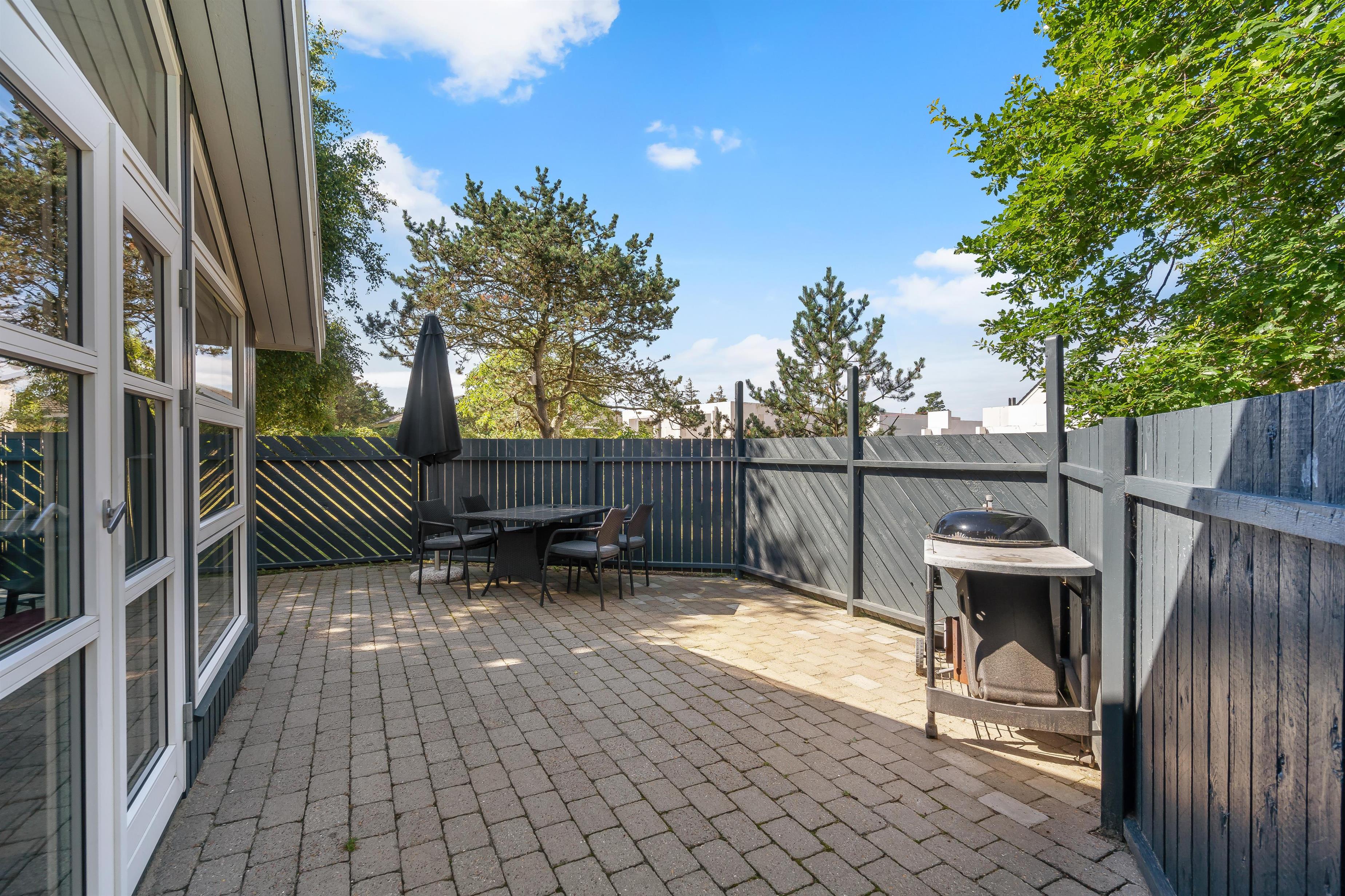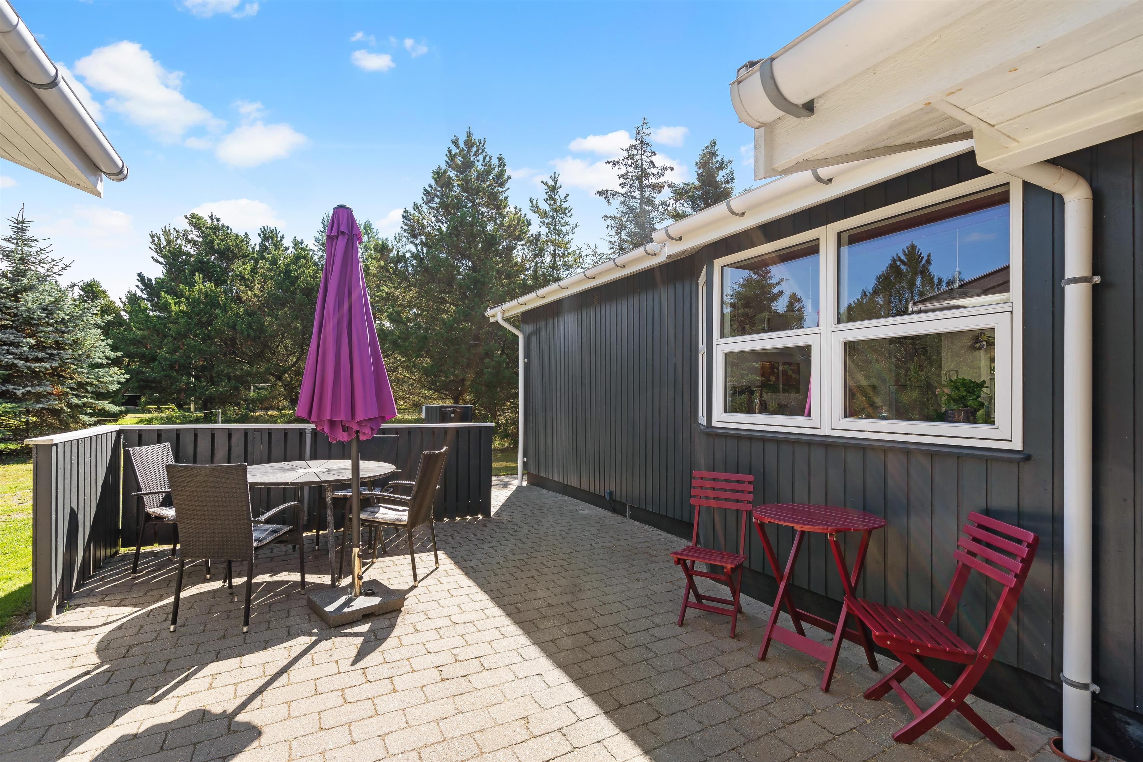 Når I har fået gummiben efter fodboldturneringen, kan I slappe af på sommerhusets store terrasse, som strækker sig fra den sydlige til den vestlige del af feriehuset. Her kan I altid finde en solstråle at slappe af i. Terrassen er afskærmet og delvist overdækket, så I der er mulighed for at kravle i skygge, hvis det bliver nødvendigt.