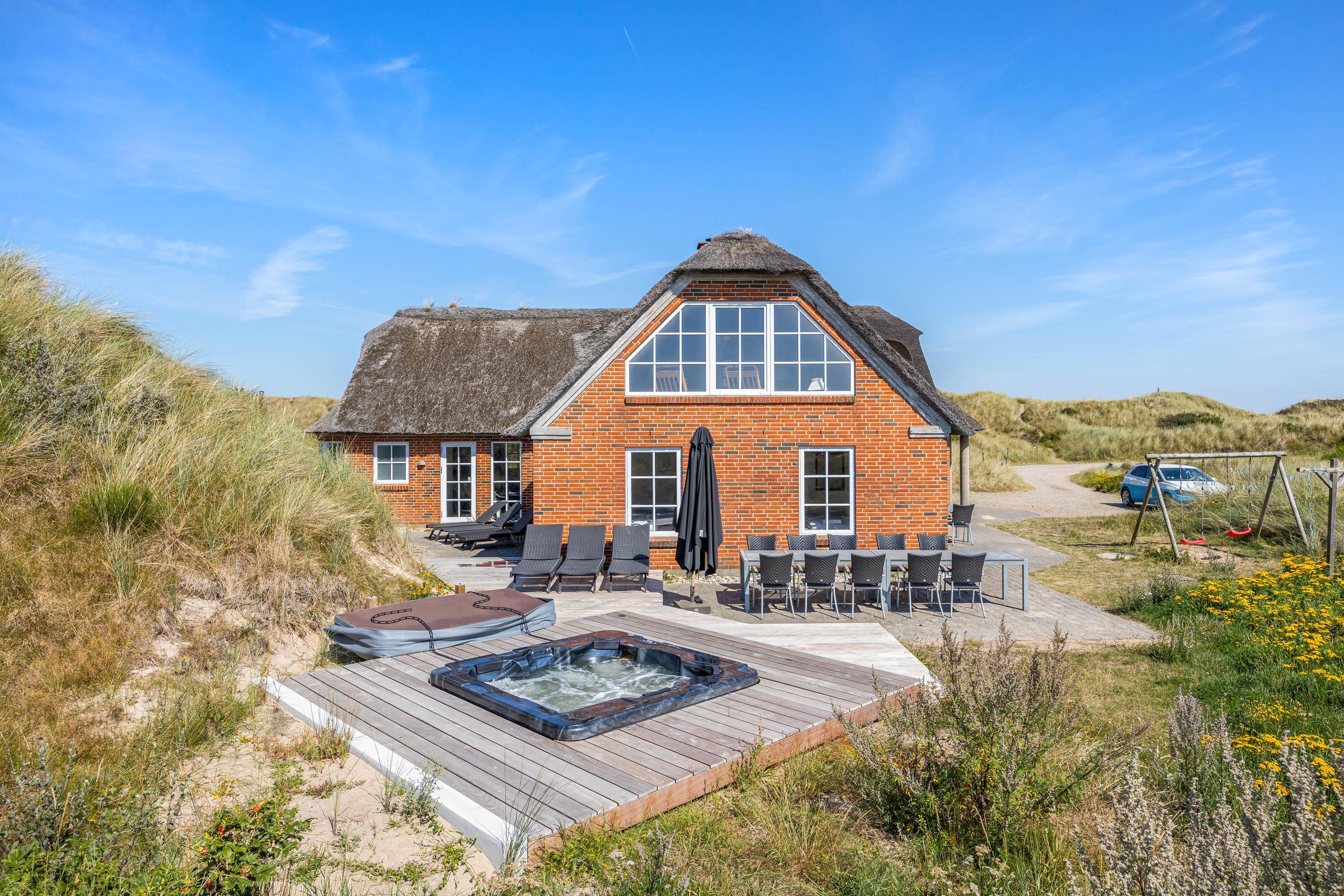 Desuden har sommerhuset 2 gode terrasser, som begge er afskærmet af klitterne, så I både kan undgå forstyrrelser fra nabohusene samt nyde den smukke, vestjyske natur. Hertil en udebruser til brug hele året, så I kan skylle jer af efter en tur på stranden, og det super lækre udespa, hvor I kan læne jer tilbage og nyde det varme vand under åben himmel.