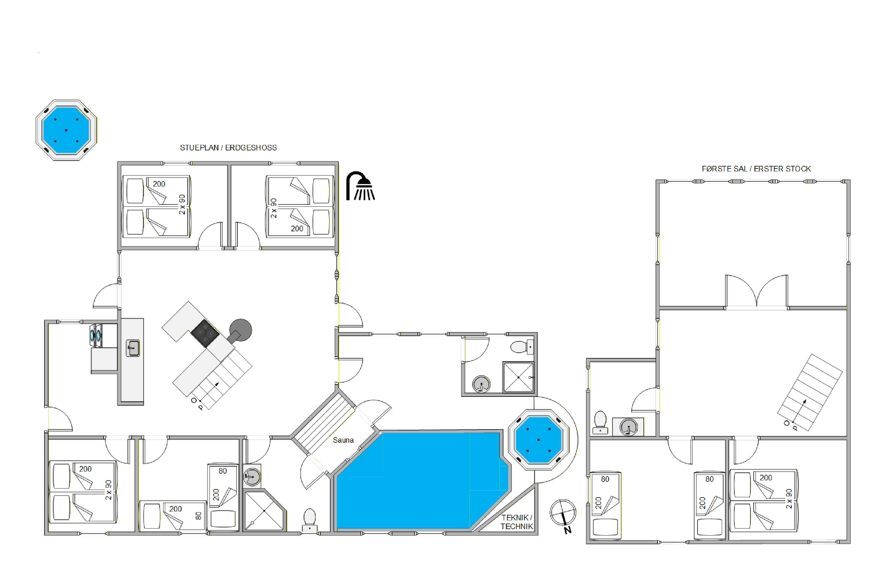 Yderligere har sommerhuset 2 badeværelser med gulvarme og et gæstetoilet, og de mange badeværelser er derfor ideelt, hvis I er flere familier, som holder ferie sammen.