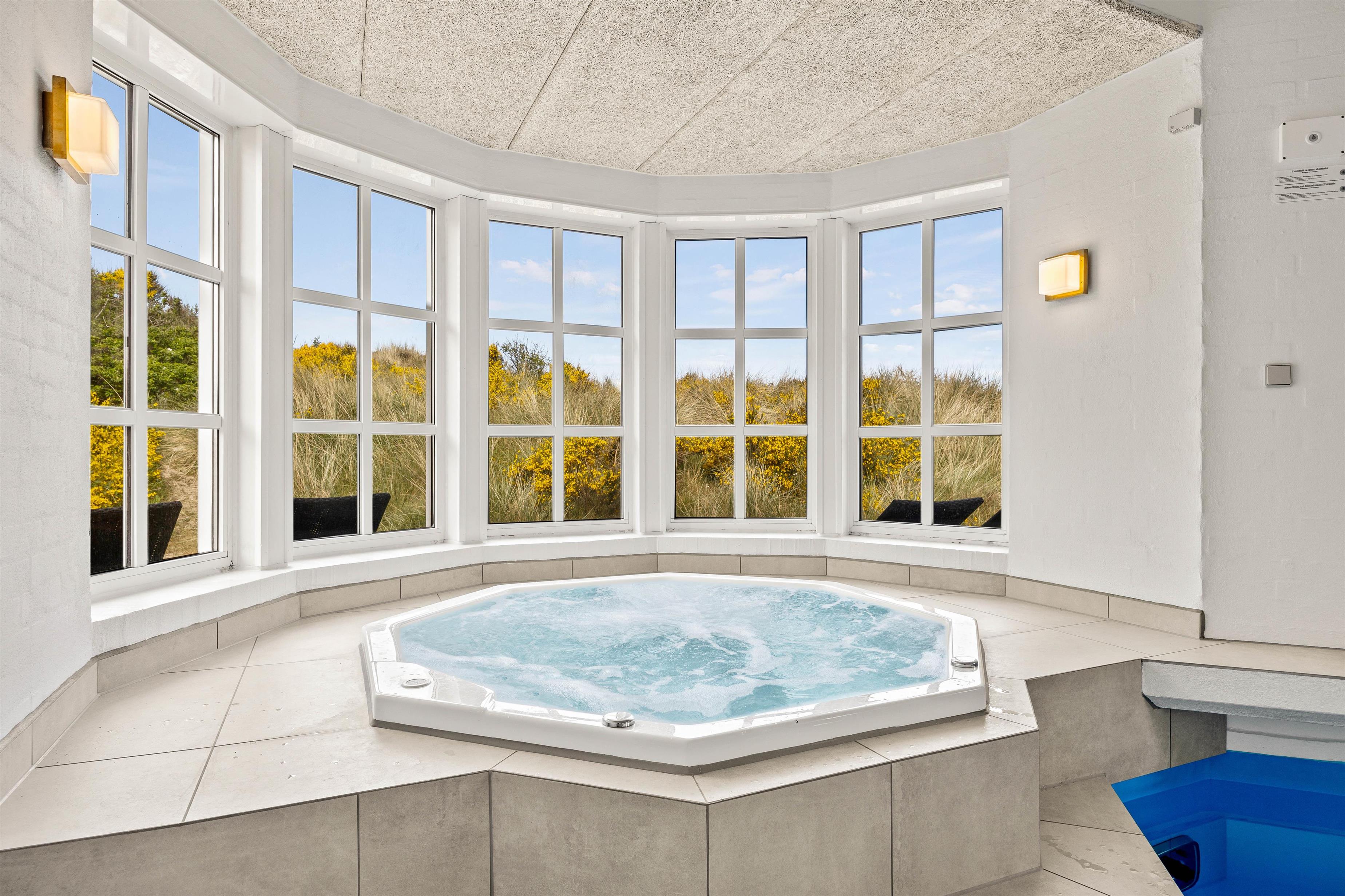 Poolsommerhuset har en absolut skøn wellness-afdeling, som I frit kan benytte lige så meget, som I har lyst til. Hvis I trænger til at pause fra hverdagens stress og jag, så tør vi næsten med garanti sige, at en tur i spa eller sauna kan hjælpe. Og hvis I ikke har fået nok af at bade i Vesterhavet, så er det virkelig luksus at have sin helt egen swimmingpool – kun til jer. Poolen har også en indbygget svømmetræner, og I kan derfor få sved på panden med en god svømmetræning.