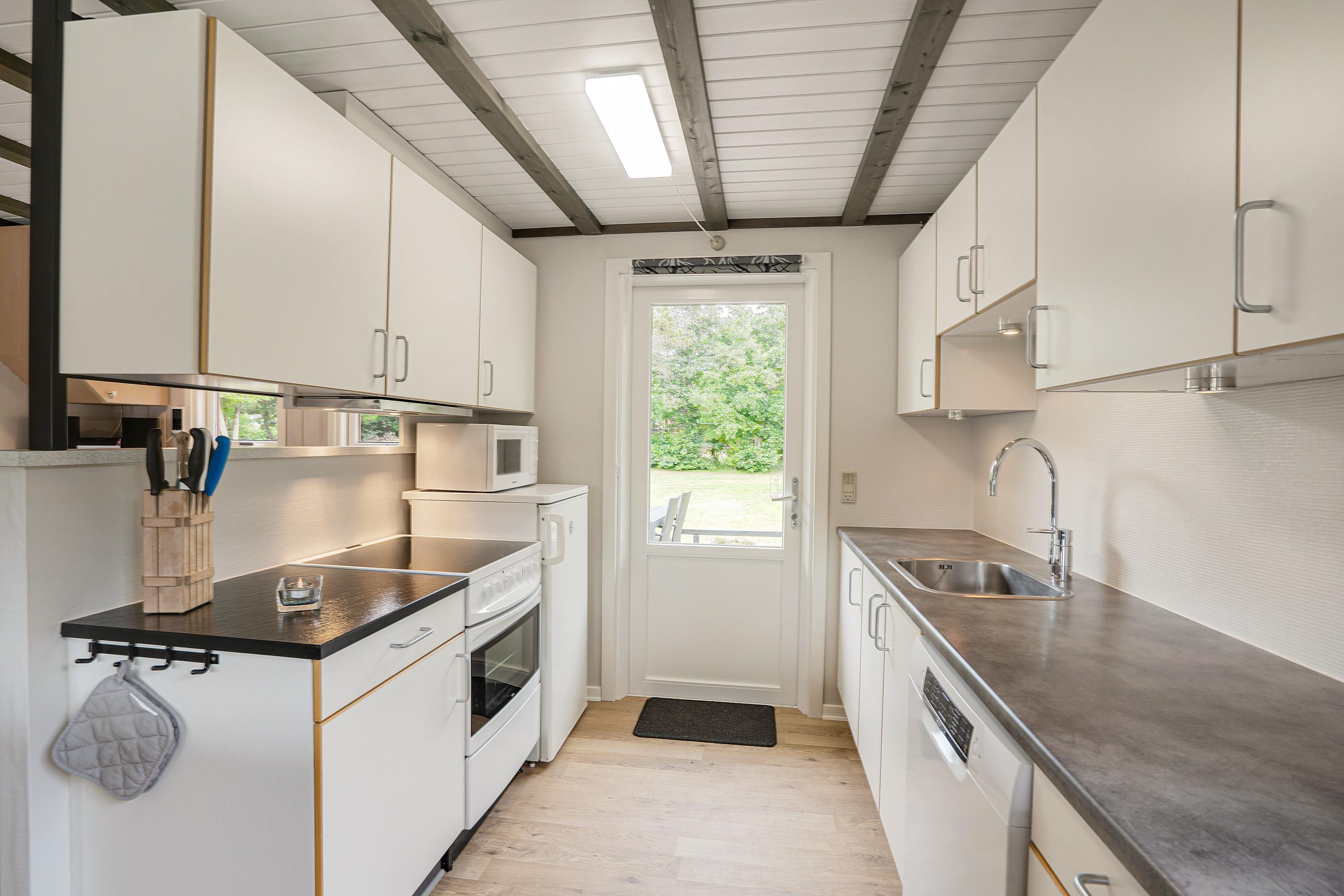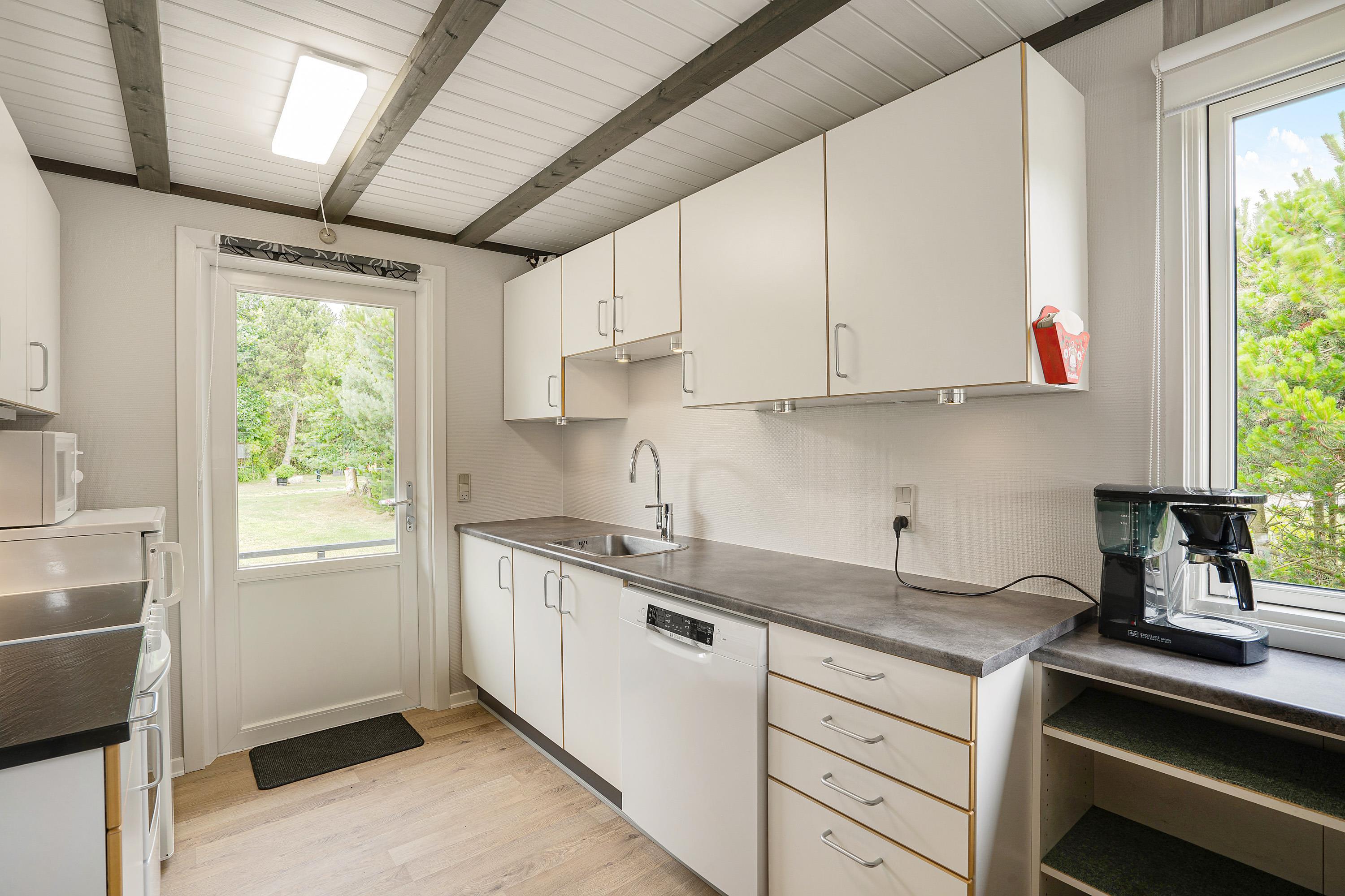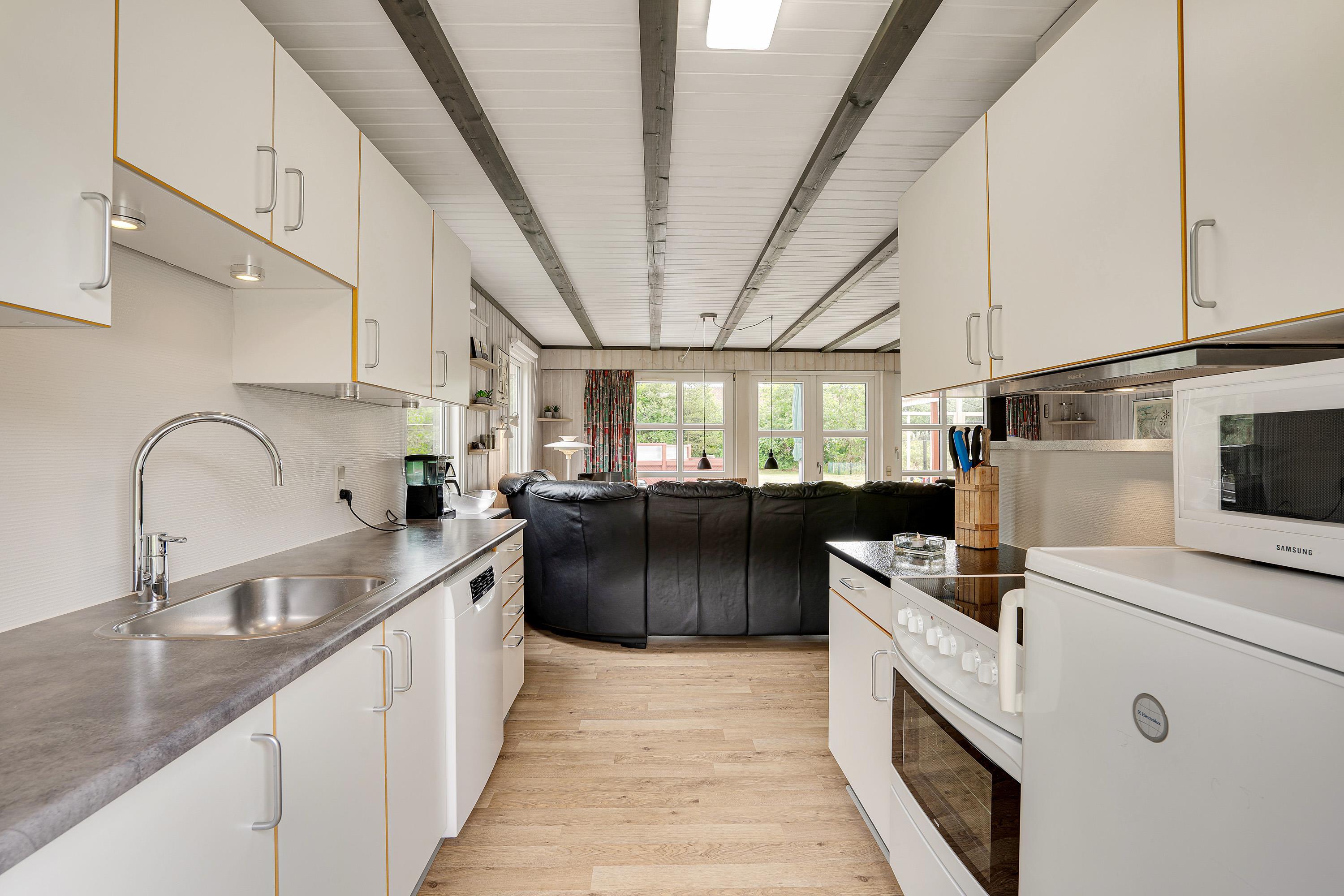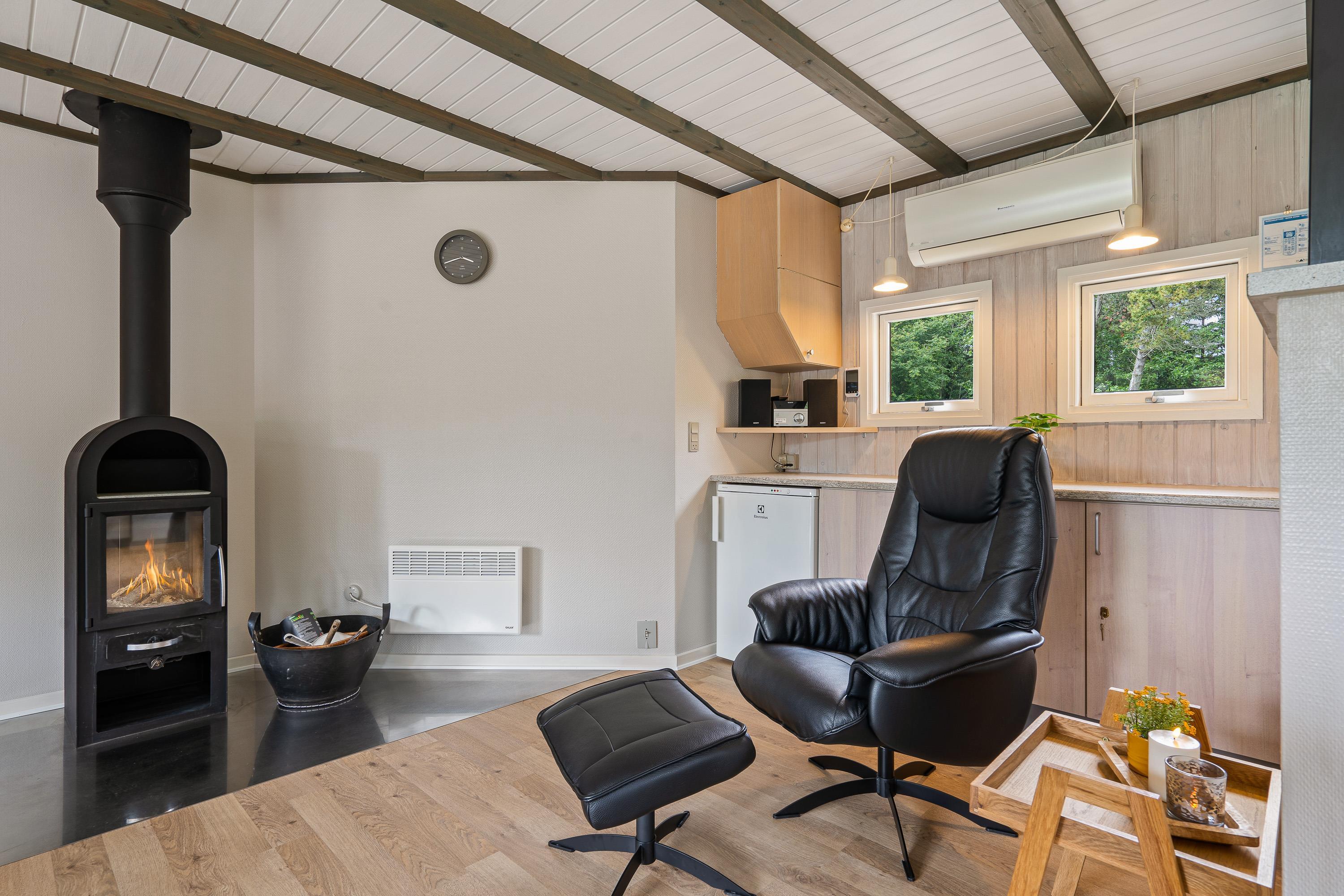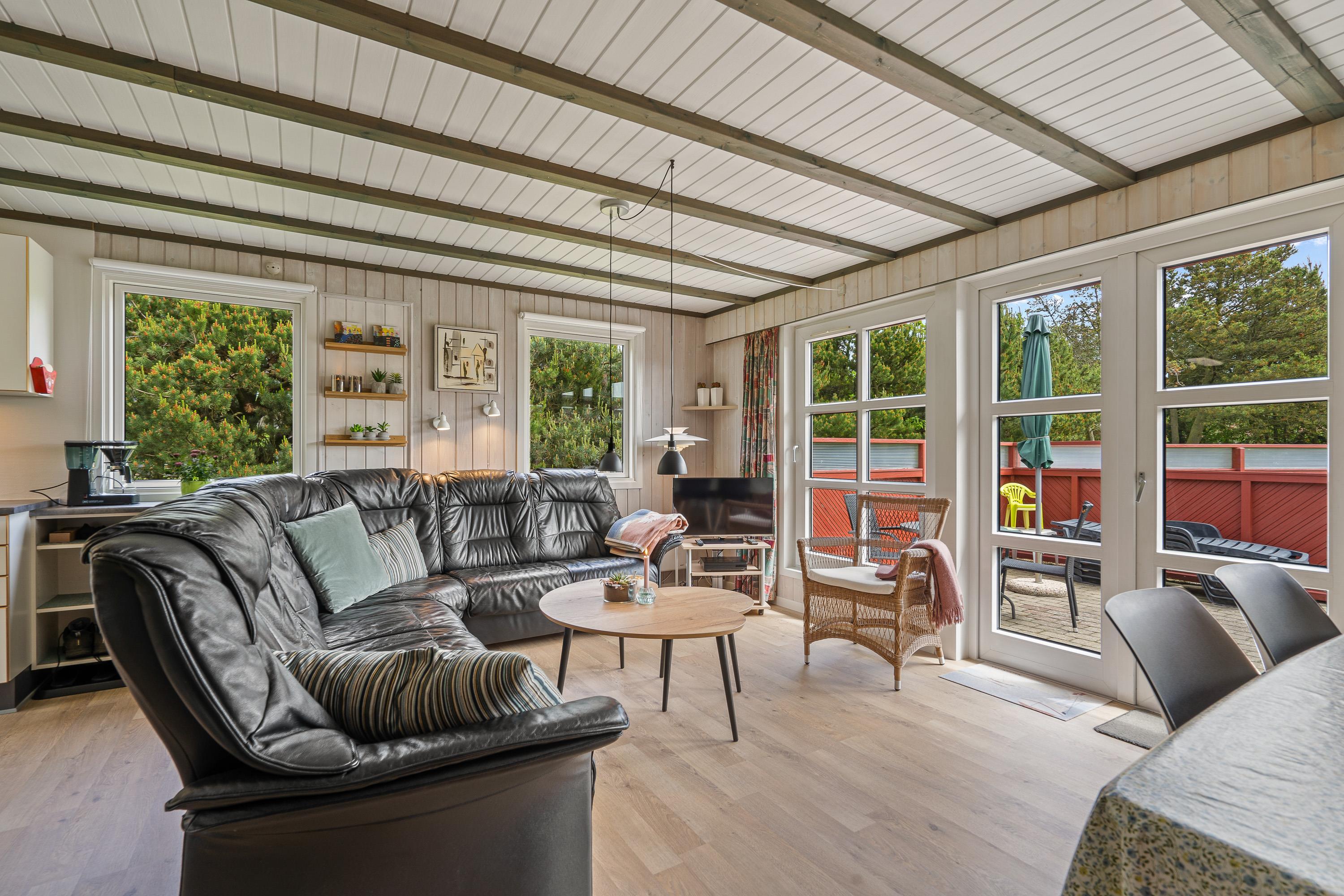 Hvis vestenvinden har vist tænder, hjælper feriehusets økonomiske varmepumpe med at holde jer varme. Derudover vil I naturligvis møde både vaskemaskine, tørretumbler og opvaskemaskine, så I slipper for alt det praktiske og blot skal læne jer tilbage i en af sommerhusets lækre stole.