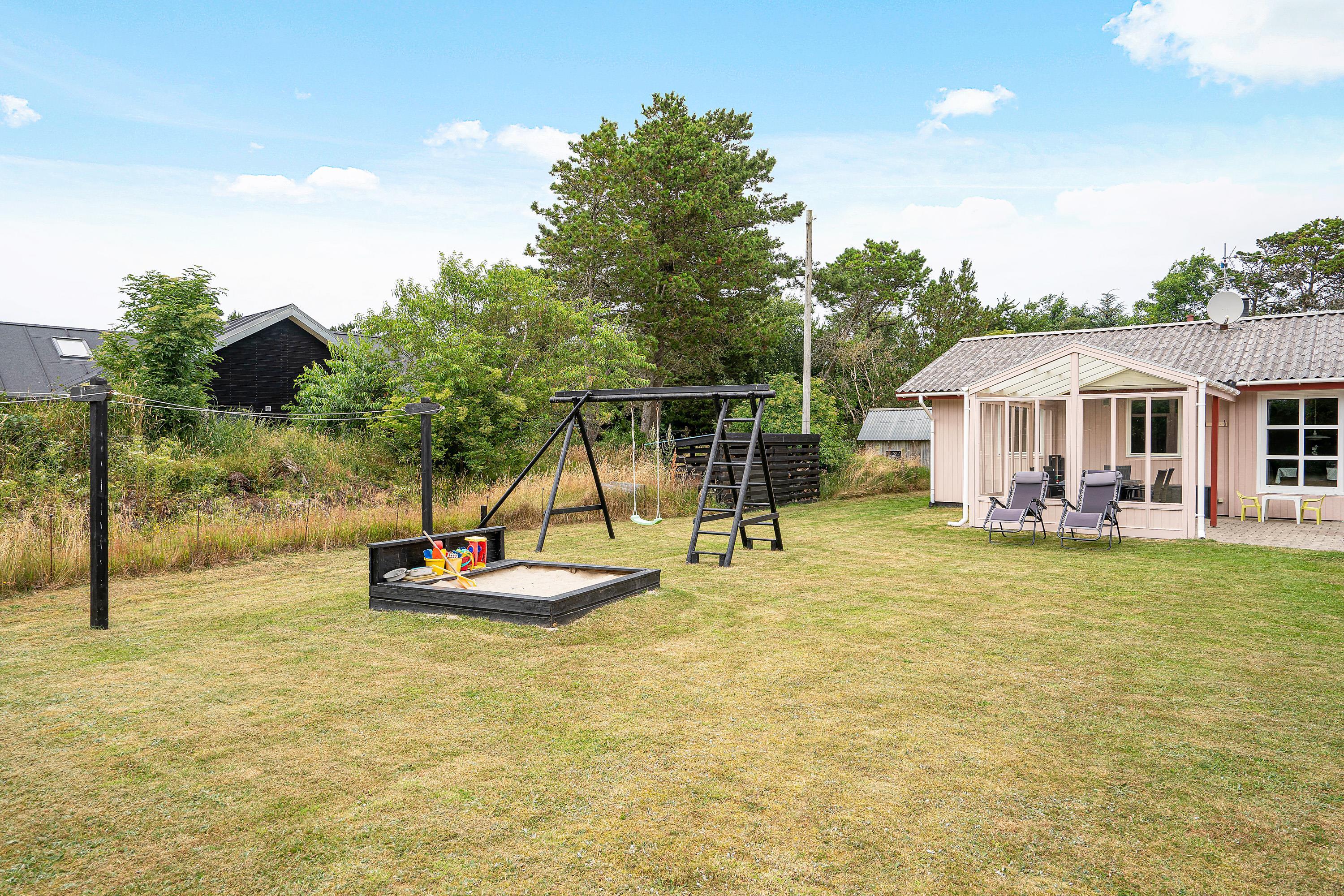 Sommerhuset i Blåvand bliver utvivlsomt et hit hos de yngste. Den 1.800 kvadratmeter store plænegrund byder på fodboldmål, sandkasse og gynge, hvor børn (eller voksne) kan brænde krudt af – vi garanterer, at der er ro til sengetid!
