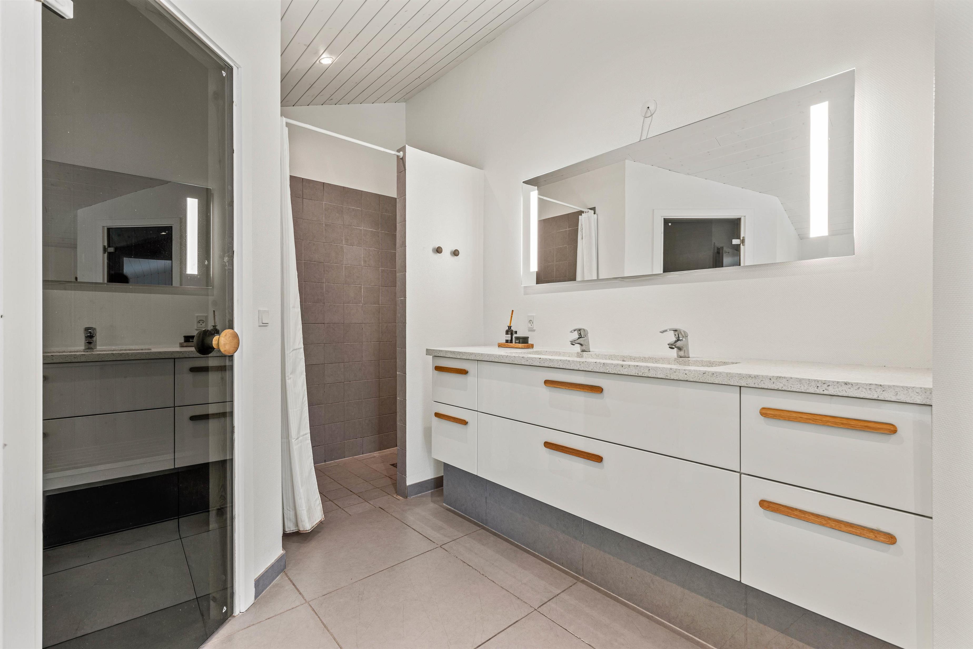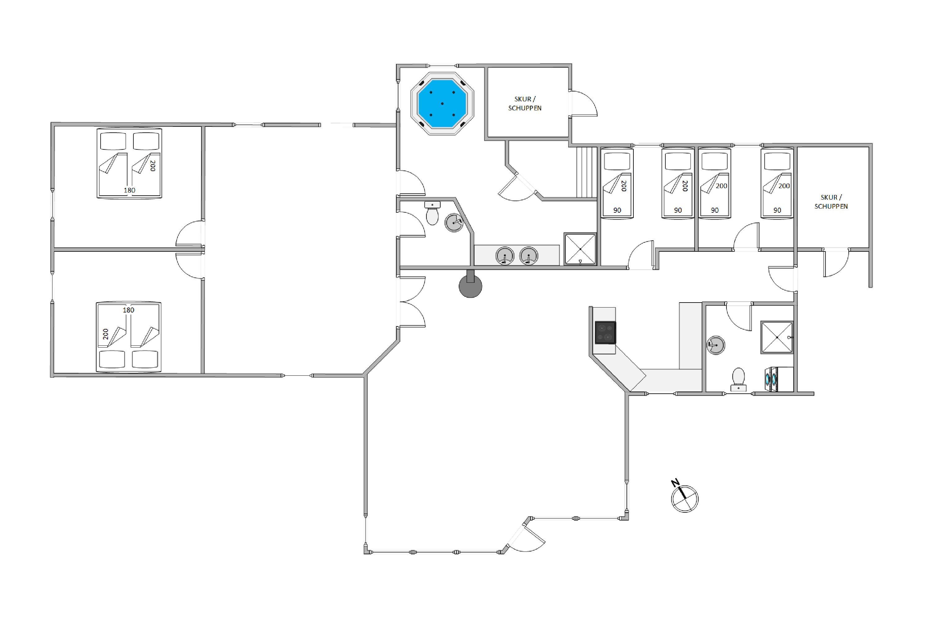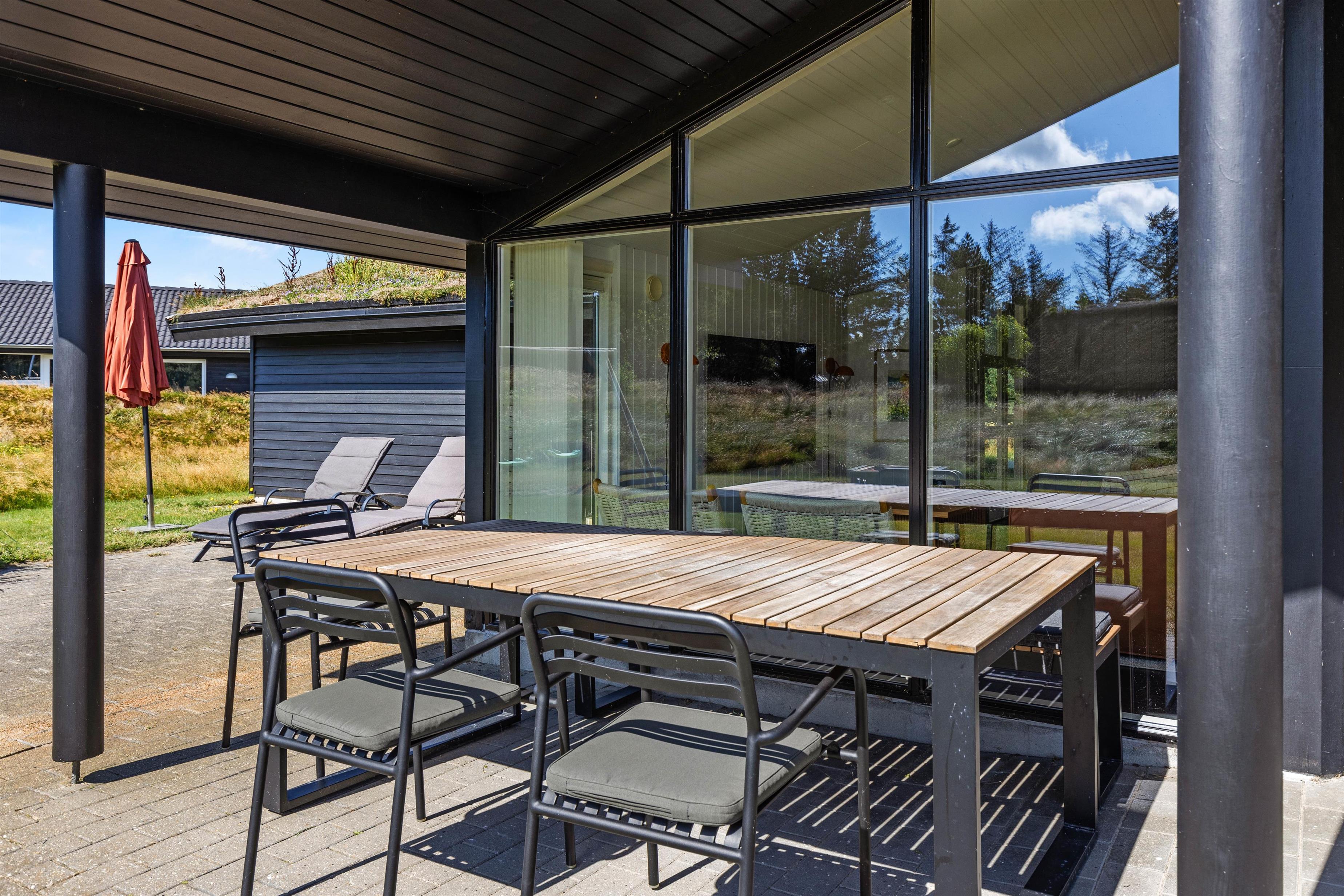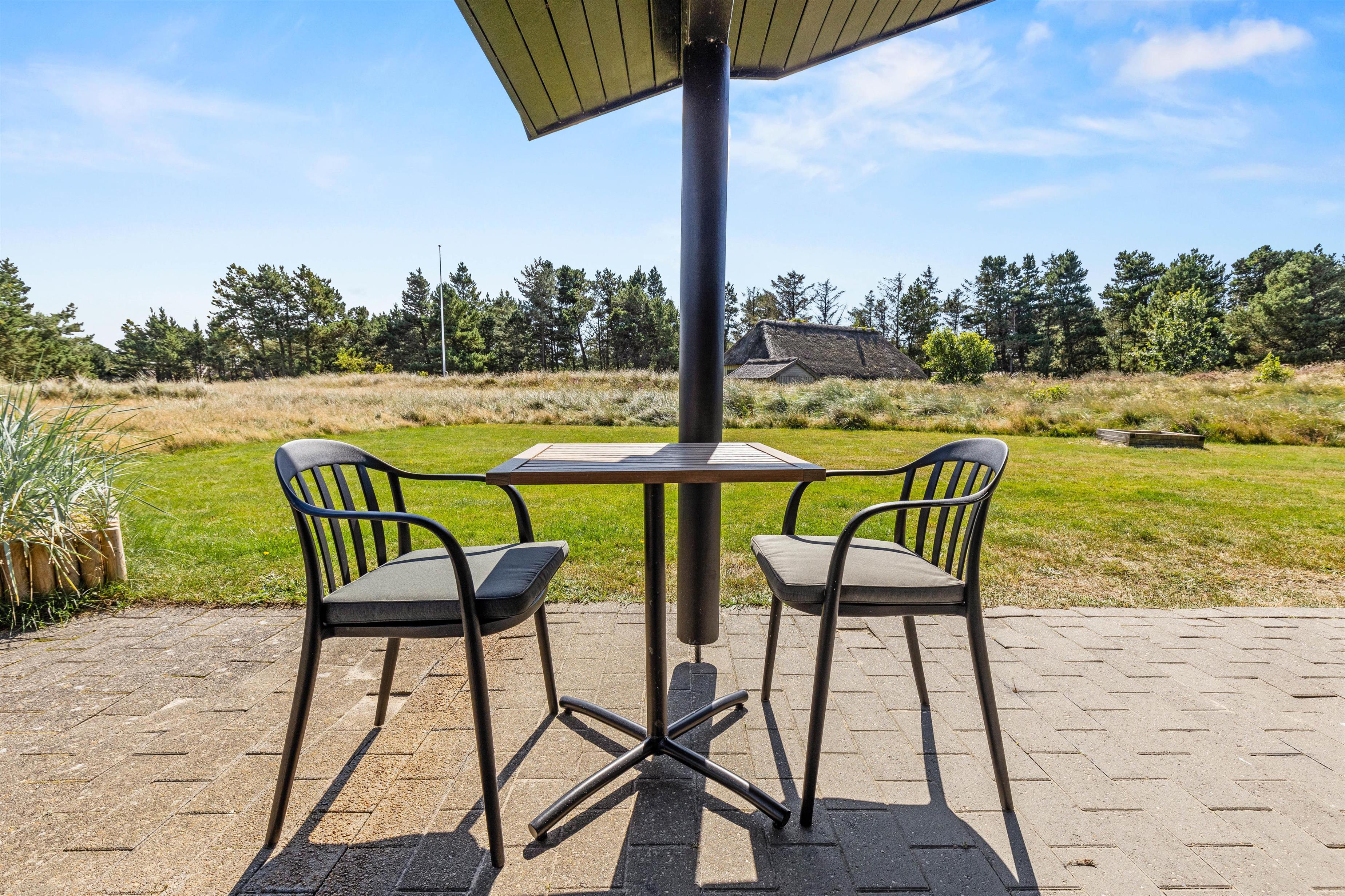 Sommerhuset tilbyder en bred vifte af faciliteter til både afslapning og aktivitet, og med både sauna og standspa er der rig mulighed for luksuriøs selvforkælelse efter en lang dag. For de mere energiske byder aktivitetsrummet på underholdning i form af poolbillard og bordfodbold. Børnene kan lege frit og fantasifuldt på den store, grønne plæne, hvor gynge, sandkasse og trampolin indbyder til timevis af leg og sjov. På den hyggelige, overdækkede terrasse kan I tænde op i grillen, lægge et par saftige bøffer på risten og nyde lange, stemningsfulde aftener under den åbne, blå himmel.
