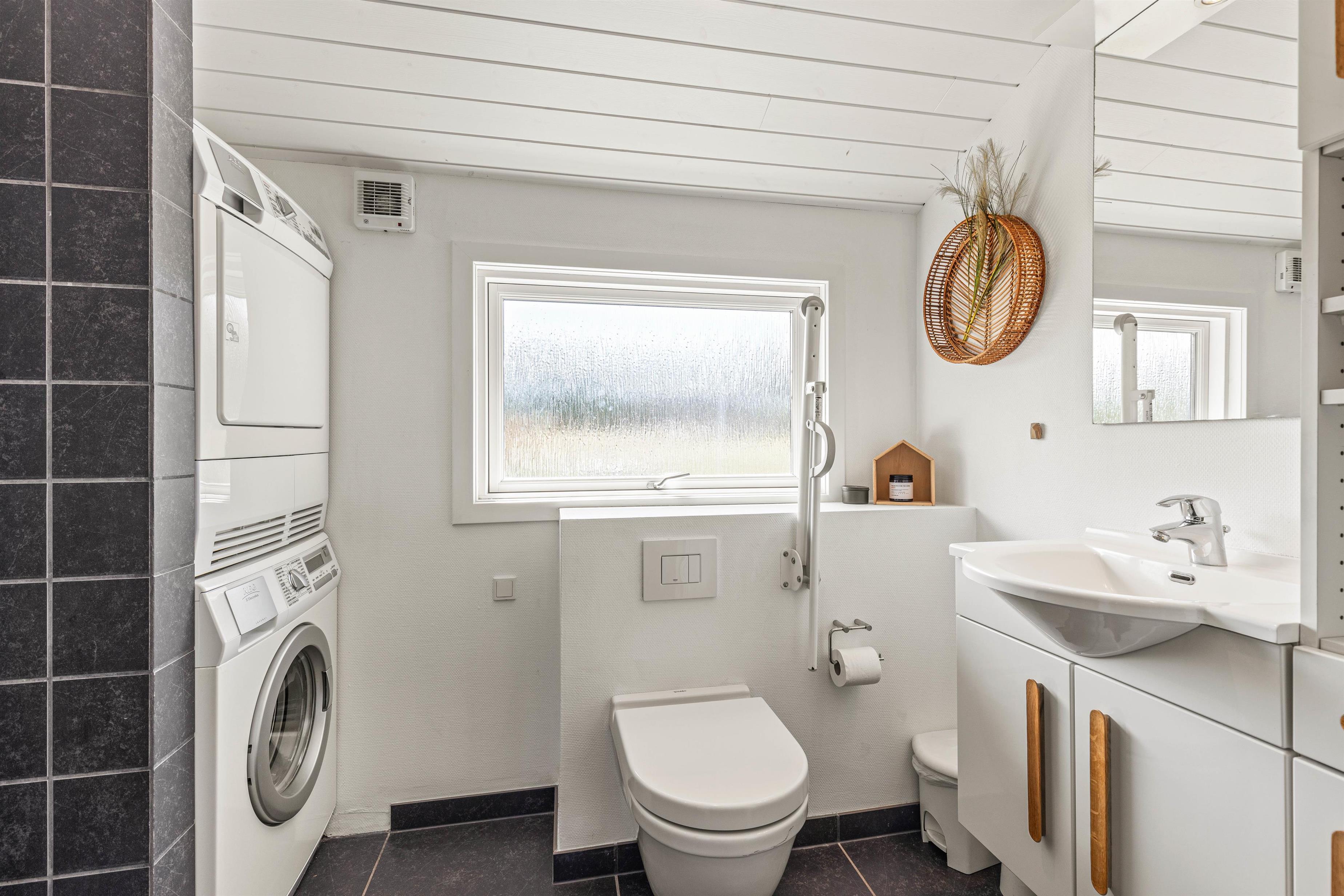Søger I et ferieophold, hvor alle moderne bekvemmeligheder er tilgængelige, vil dette sommerhus i Blåvand tilfredsstille jeres ønsker. Feriehuset er udstyret med en brændeovn, der tilføjer hygge på kølige aftener, samt en luft til luft varmepumpe, der sikrer et behageligt indeklima. De fire soverum er fordelt med to dobbeltsenge og fire enkeltsenge, hvilket giver komfortabel soveplads til alle gæster. Et gæstetoilet og to badeværelser, det ene med gulvvarme, sikrer ingen kø i morgenstunden.