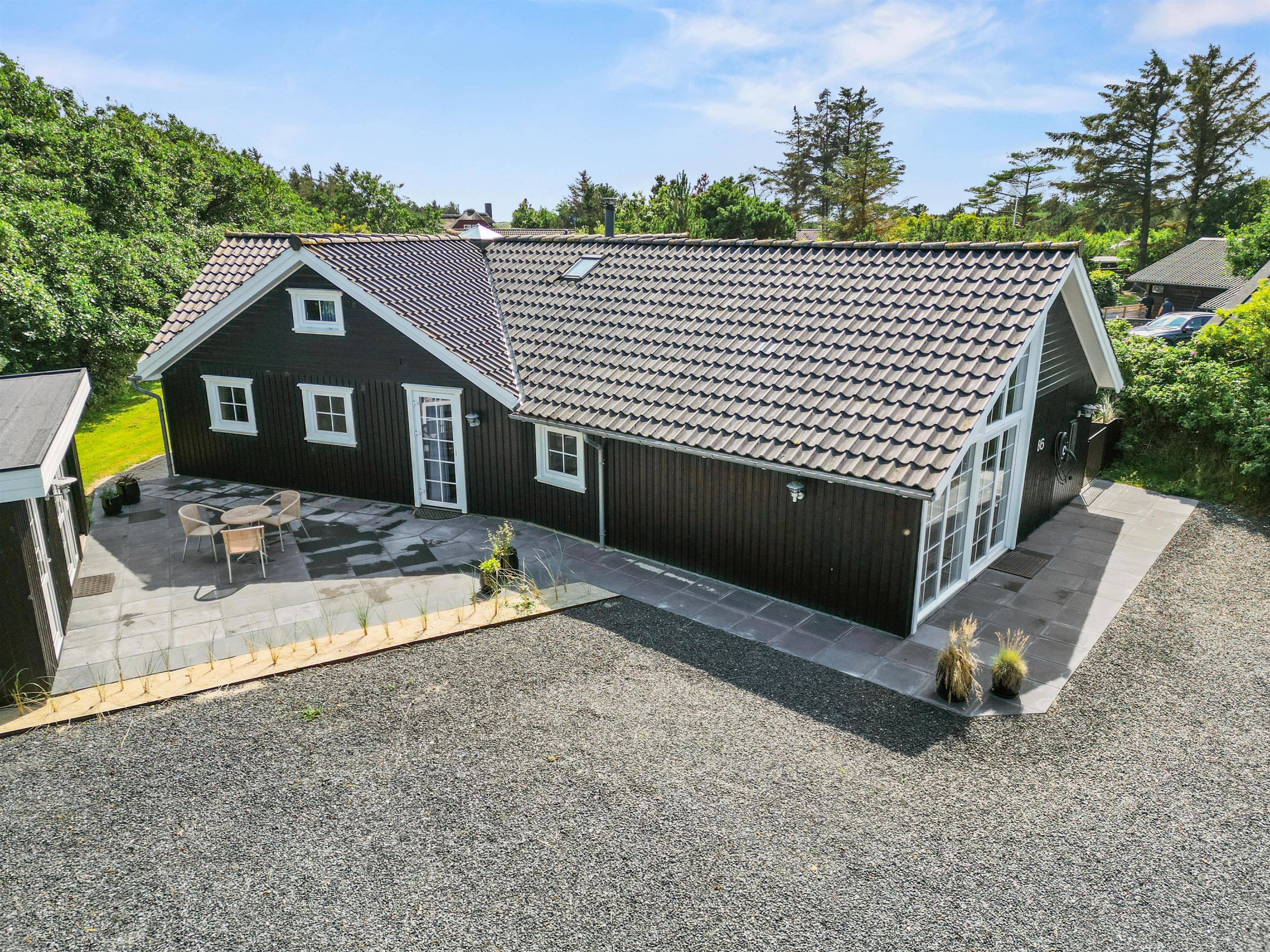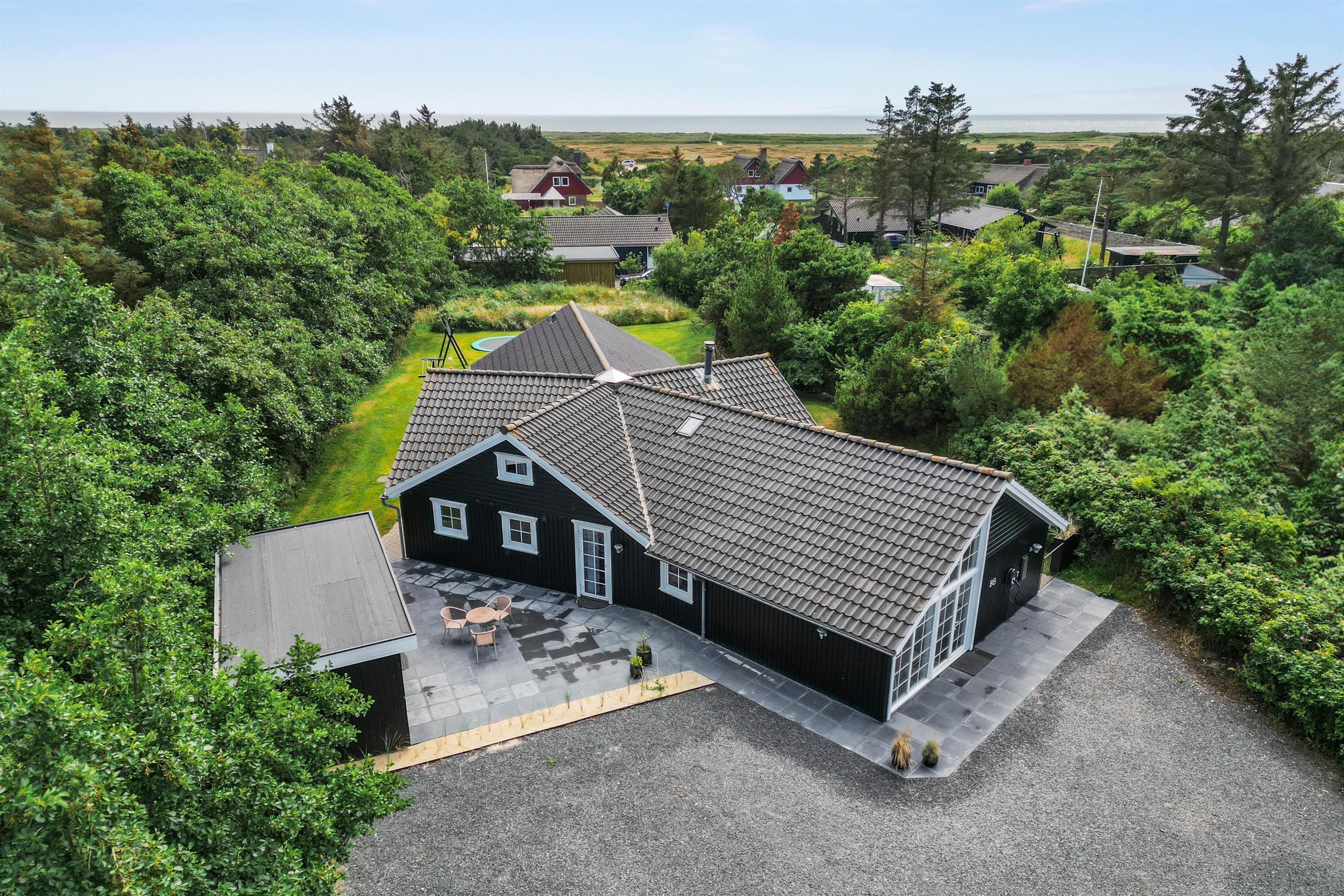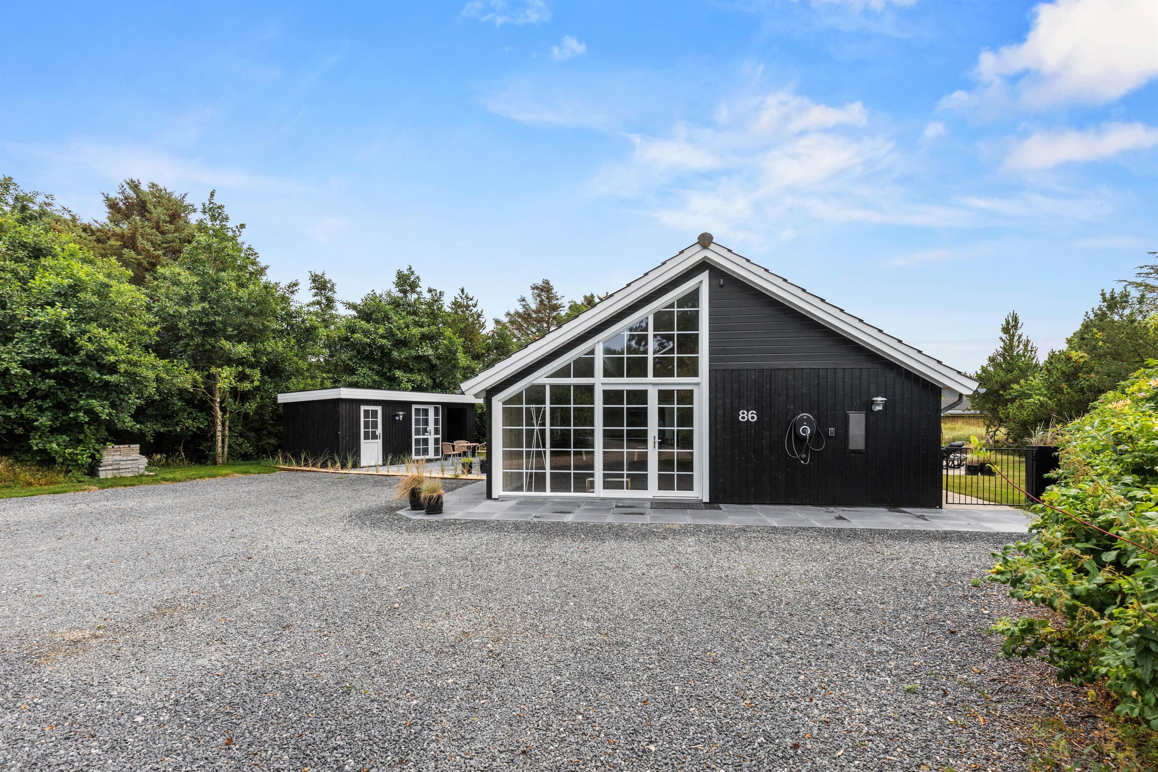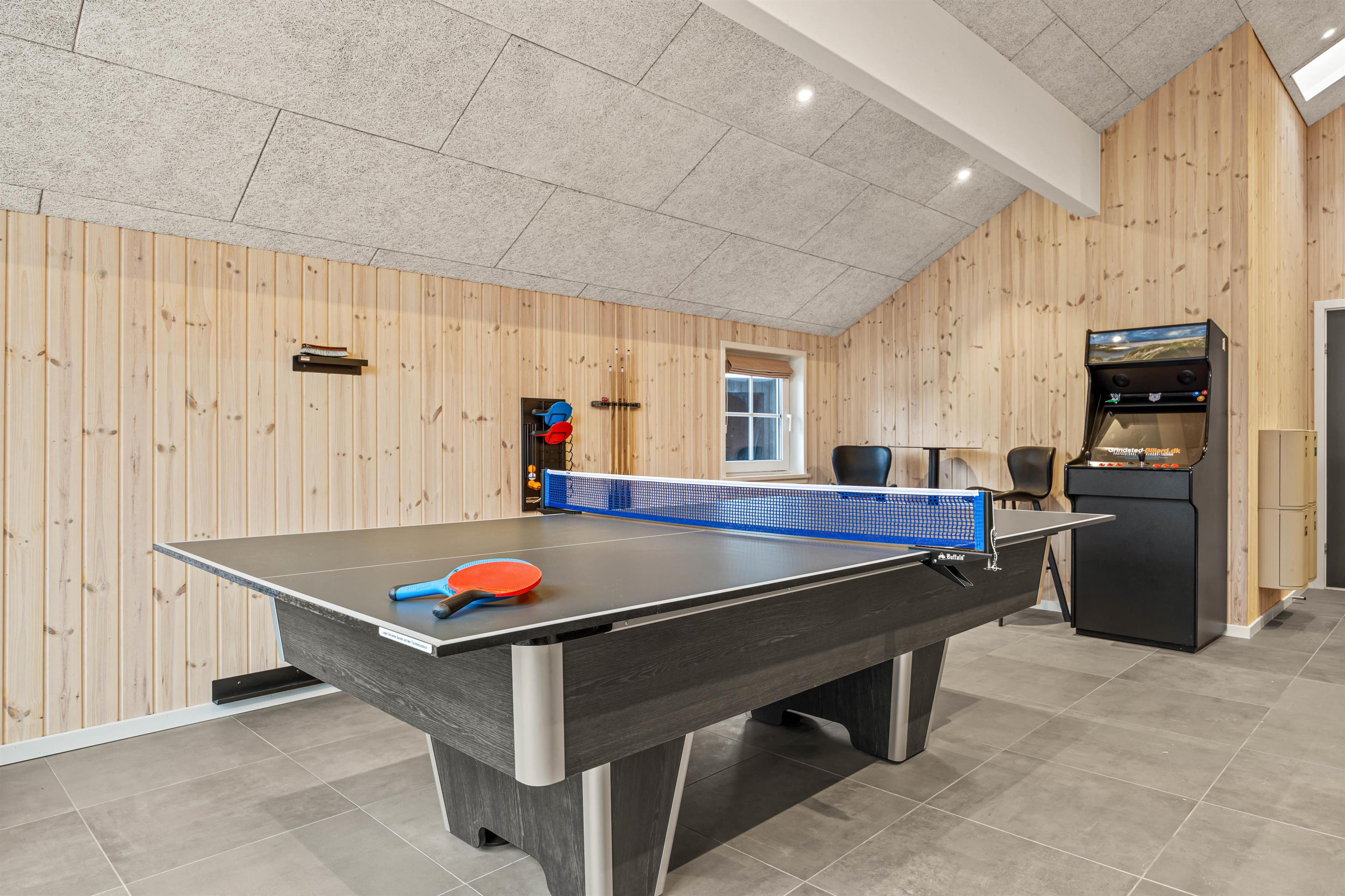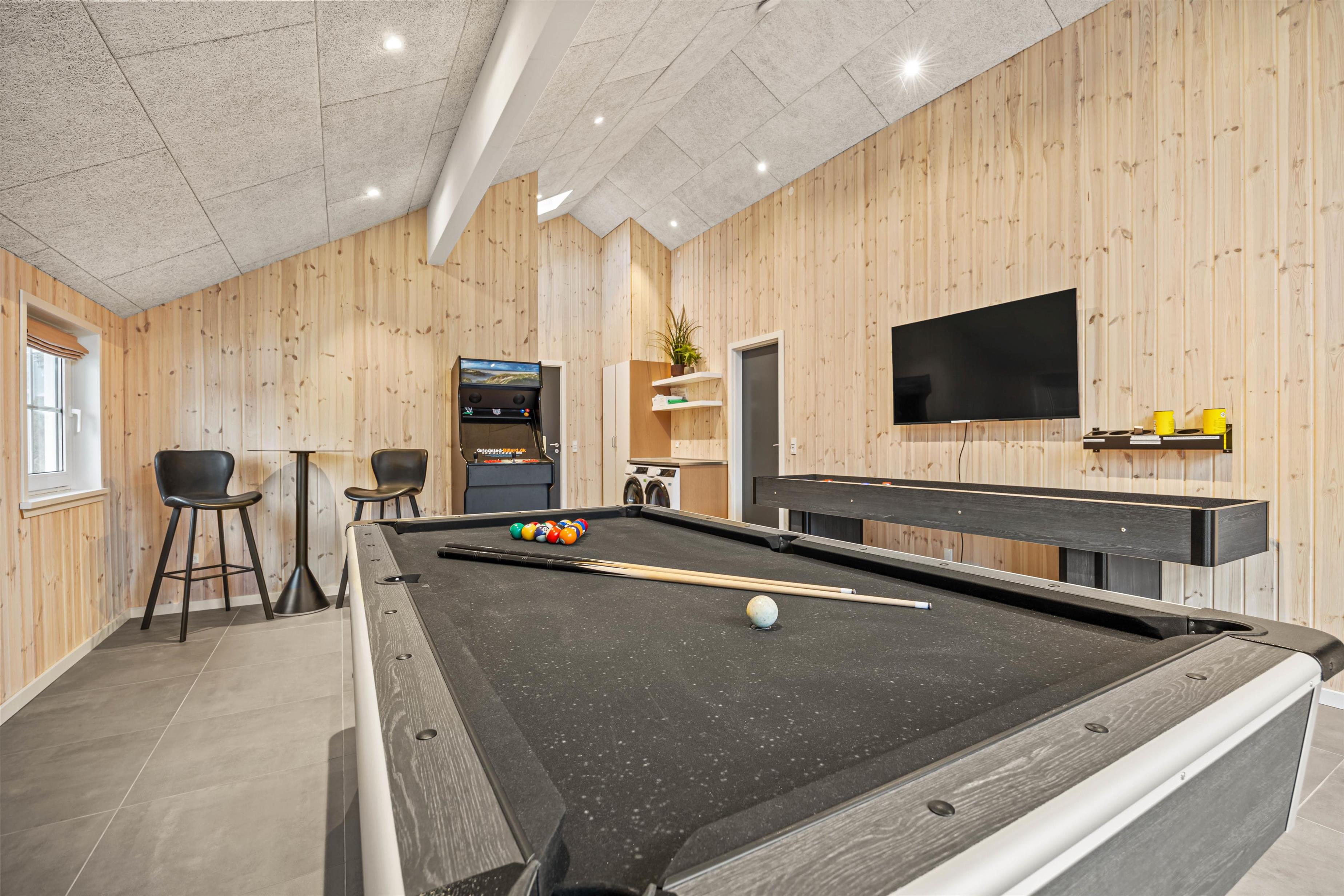 I hjertet af Blåvand, men stadig med en rolig beliggenhed, ligger dette store, flot renoverede sommerhus med egen swimmingpool. I de store, højloftede rum er der plads til jer alle, og dertil kommer saunaen og spabadet med plads til 6 personer samt aktivitetsrummet, hvor I kan spille billard, bordtennis eller shuffleboard eller hygge jer ved spillemaskinen. Uanset om I er til en aktiv eller afslappende ferie, er der noget for jer på Sønder-Vasevej 86.