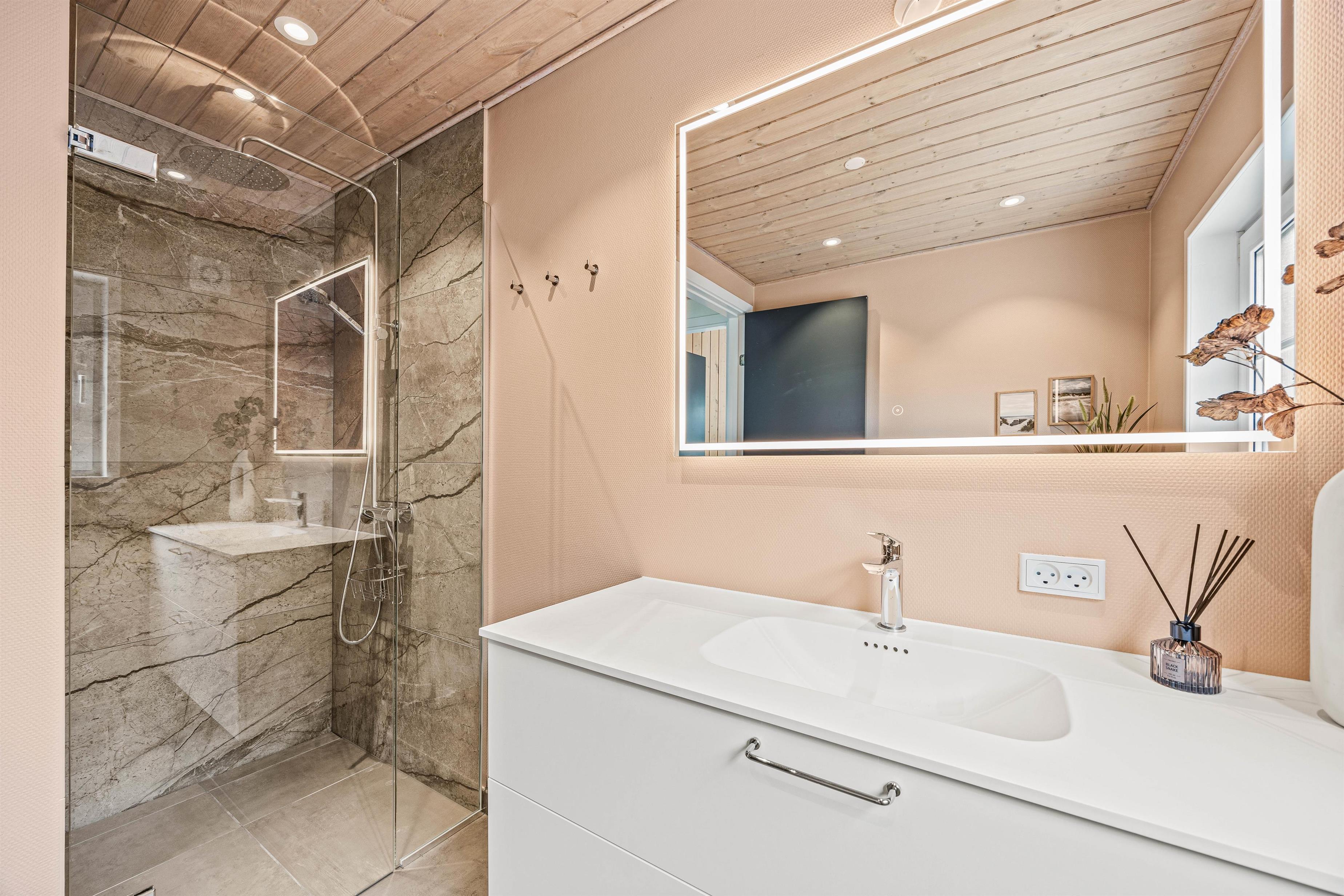 De 3 smukke og smagfuldt indrettede badeværelser med gulvvarme har masser af skabsplads, så I kan holde fødderne lune og opbevare jeres toiletsager her under ferien, og i de fine soverum med komfortable senge og god skabsplads til jeres ferietøj kan I finde ro og hvile efter oplevelsesrige feriedage og glemme alt om hverdagens stress.