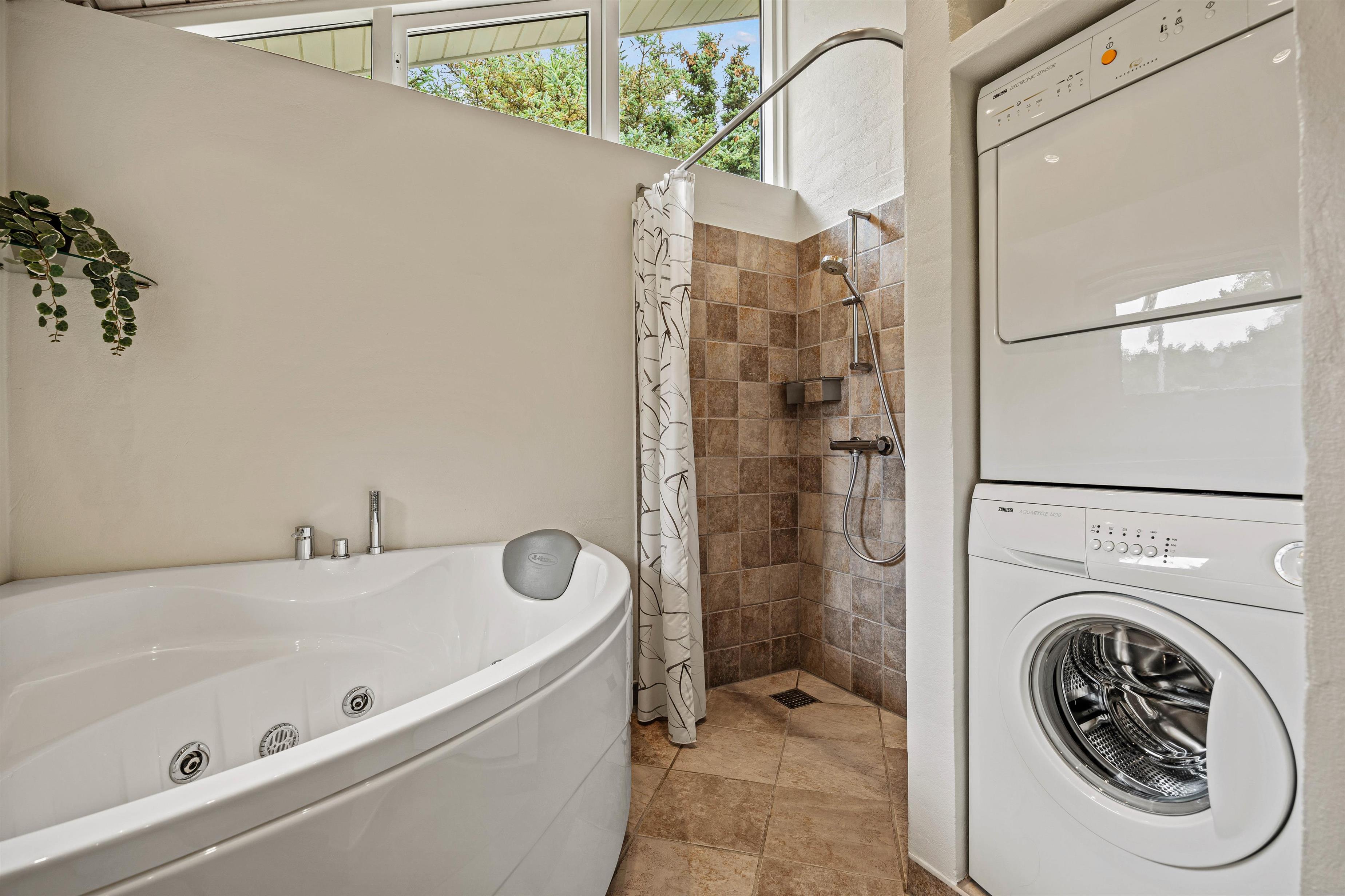 I sommerhuset er rammerne sat for en afslappende ferie ved Vesterhavet. Badeværelset er indrettet med spabad, så I kan nyde lidt ekstra wellness, og brændeovnen i stuen tilfører både hyggelig feriestemning og god varme med sine knitrende flammer. Den skønne, indbydende udespa kan bruges hele året rundt og giver mulighed for at slappe af i det varme, boblende vand. Udespaen er udstyret med behagelige massagedyser, en liggeplads og 5 gode siddepladser, så både familie og venner kan hygge sig sammen. Her kan I nyde roen, lade kroppen slappe af og samle kræfter efter dagens oplevelser.