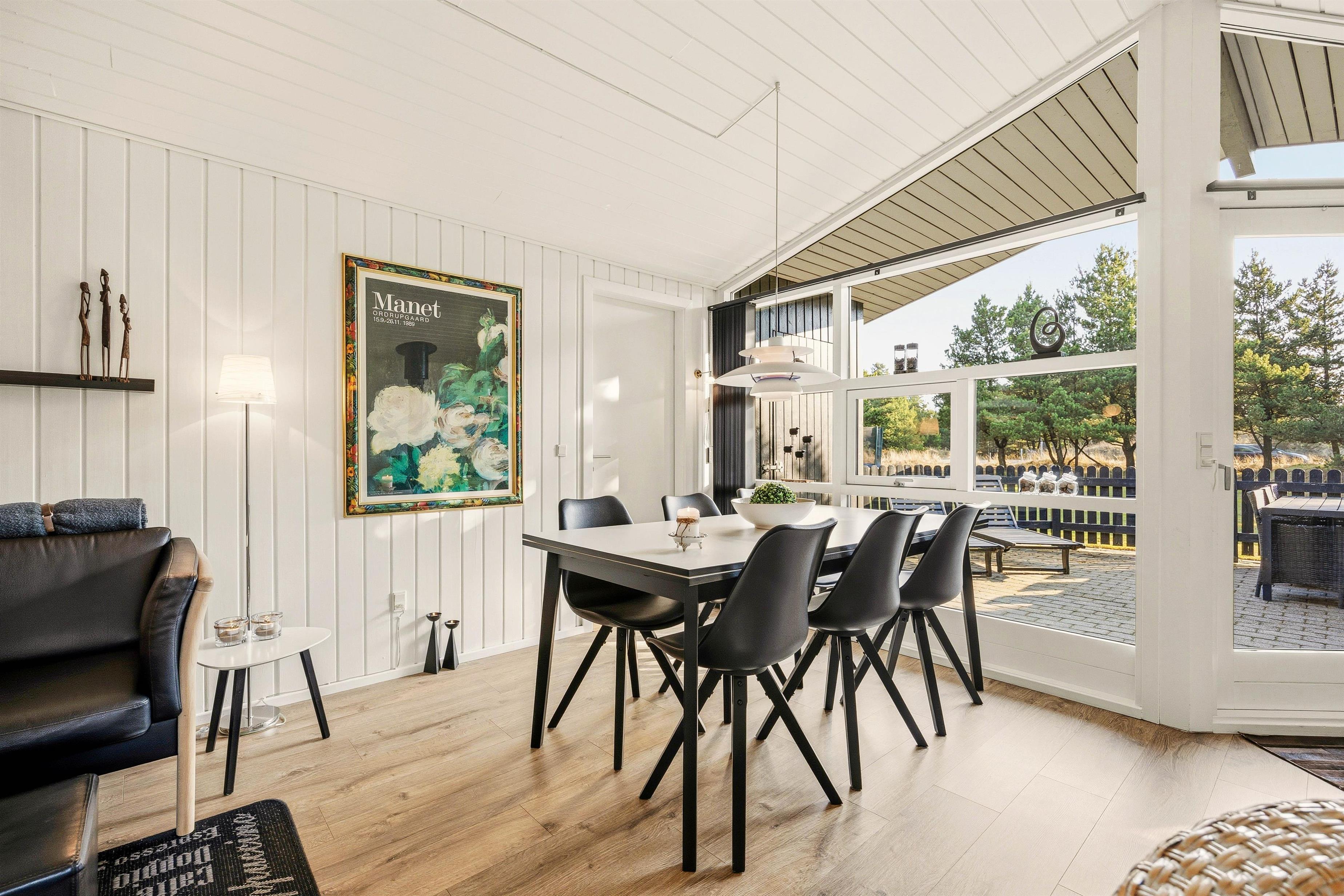 Det klassiske træhus sætter de helt rigtige rammer for en hyggelig sommerhusferie langt væk fra hverdagens tumult. Når I træder ind ad hoveddøren, vil I blive mødt af en lys og venlig indretning med brændeovn og fine pyntedetaljer. De store vinduespartier i opholdsrummet inviterer solens stråler og Blåvands grønne natur indenfor, og derudover byder stueafdelingen på en hyggelig alkove, hvor I kan trække jer tilbage med en god bog eller snuppe en middagslur. Her er der gjort meget for, at I skal føle jer hjemme fra første ferieøjeblik.