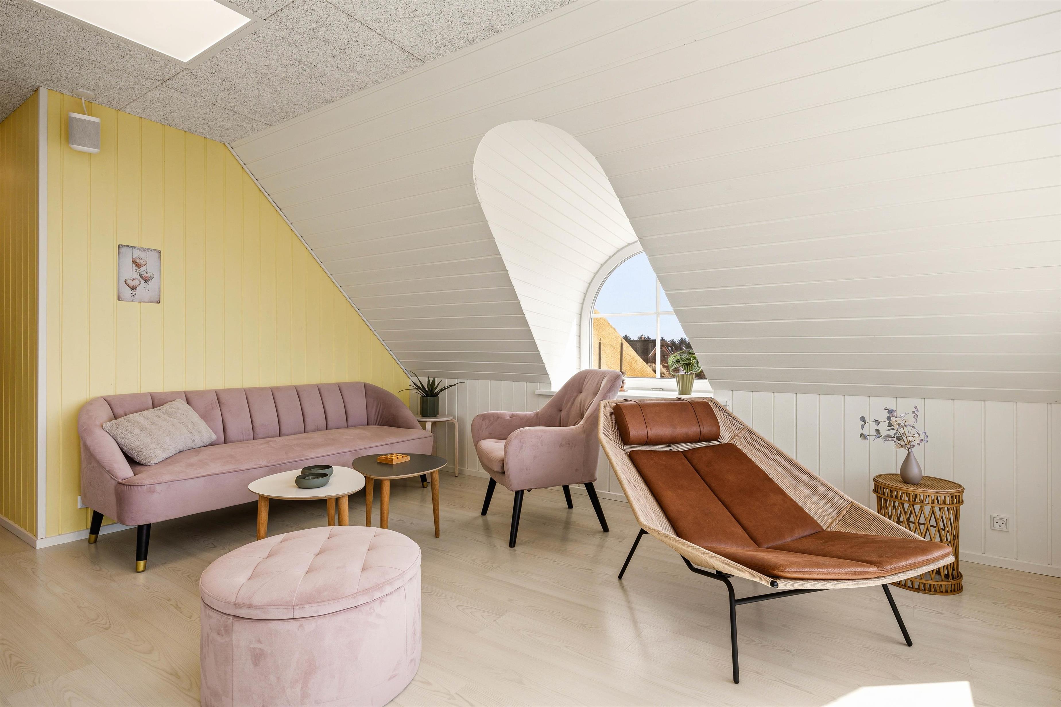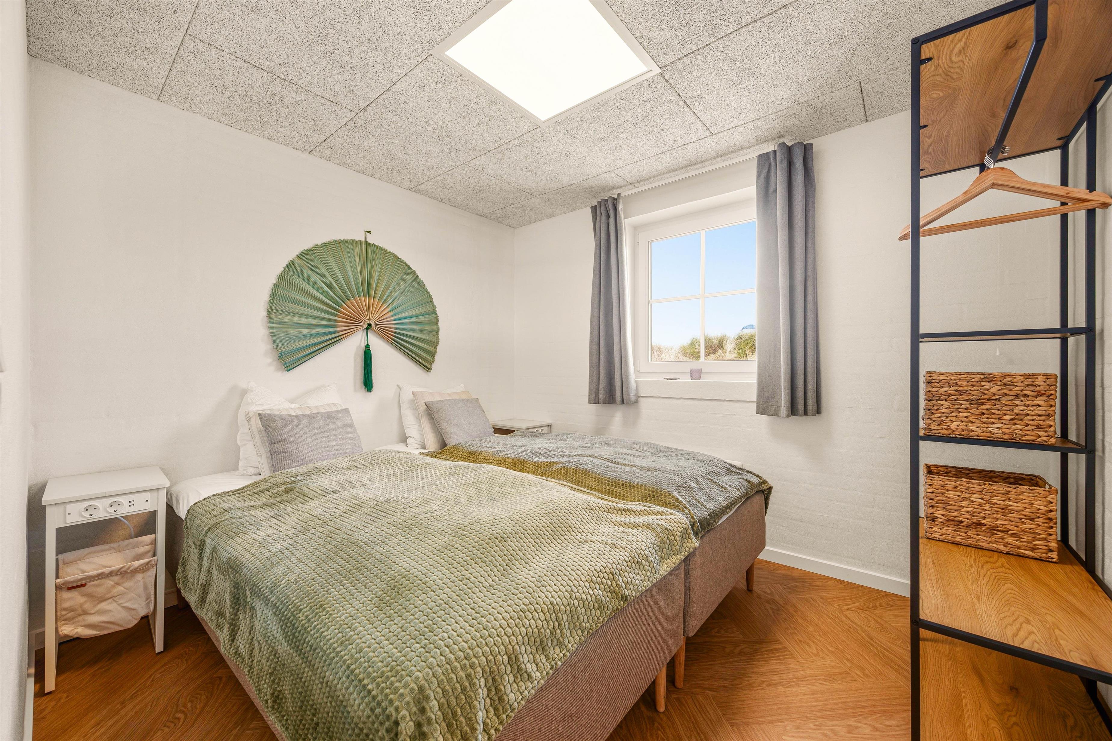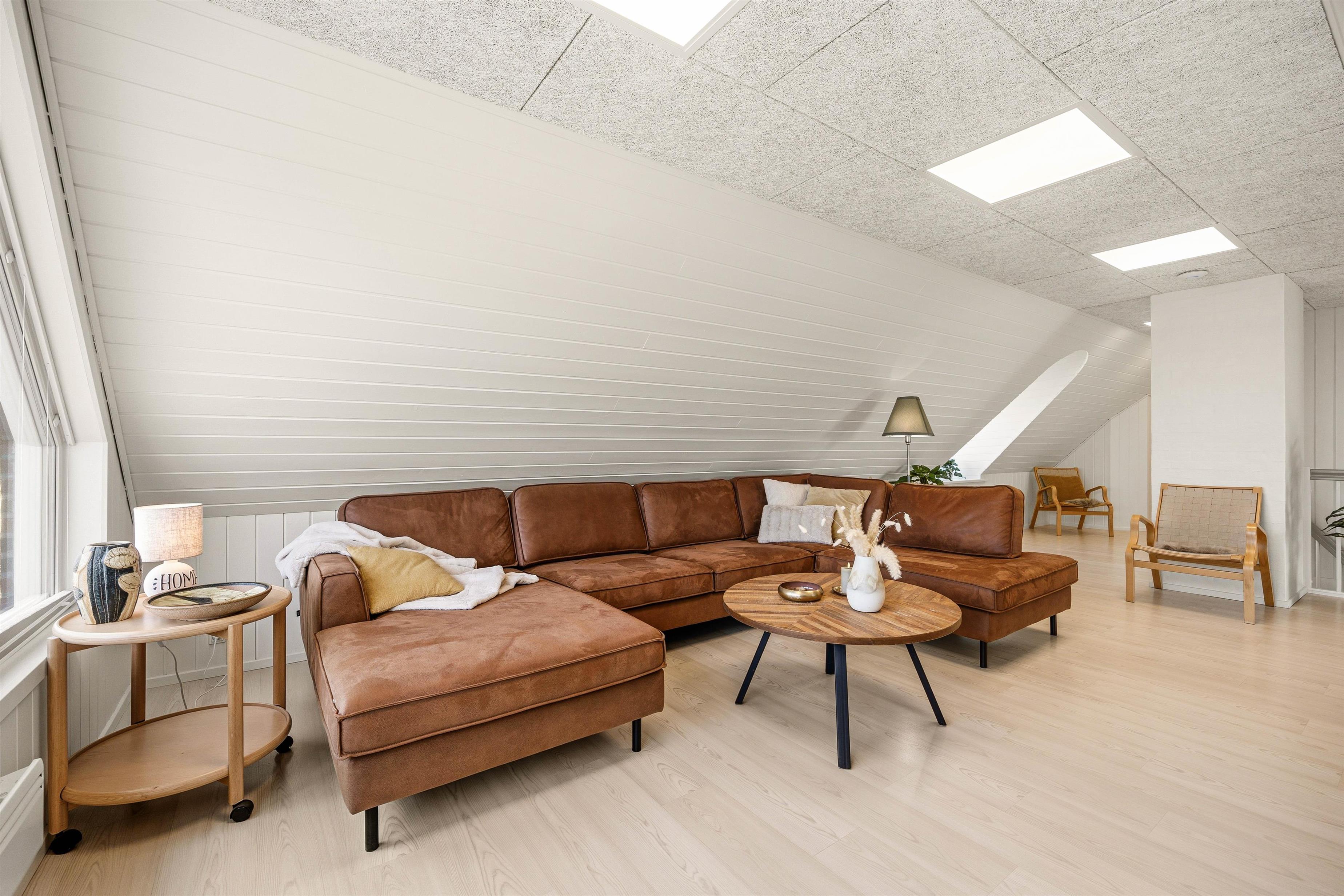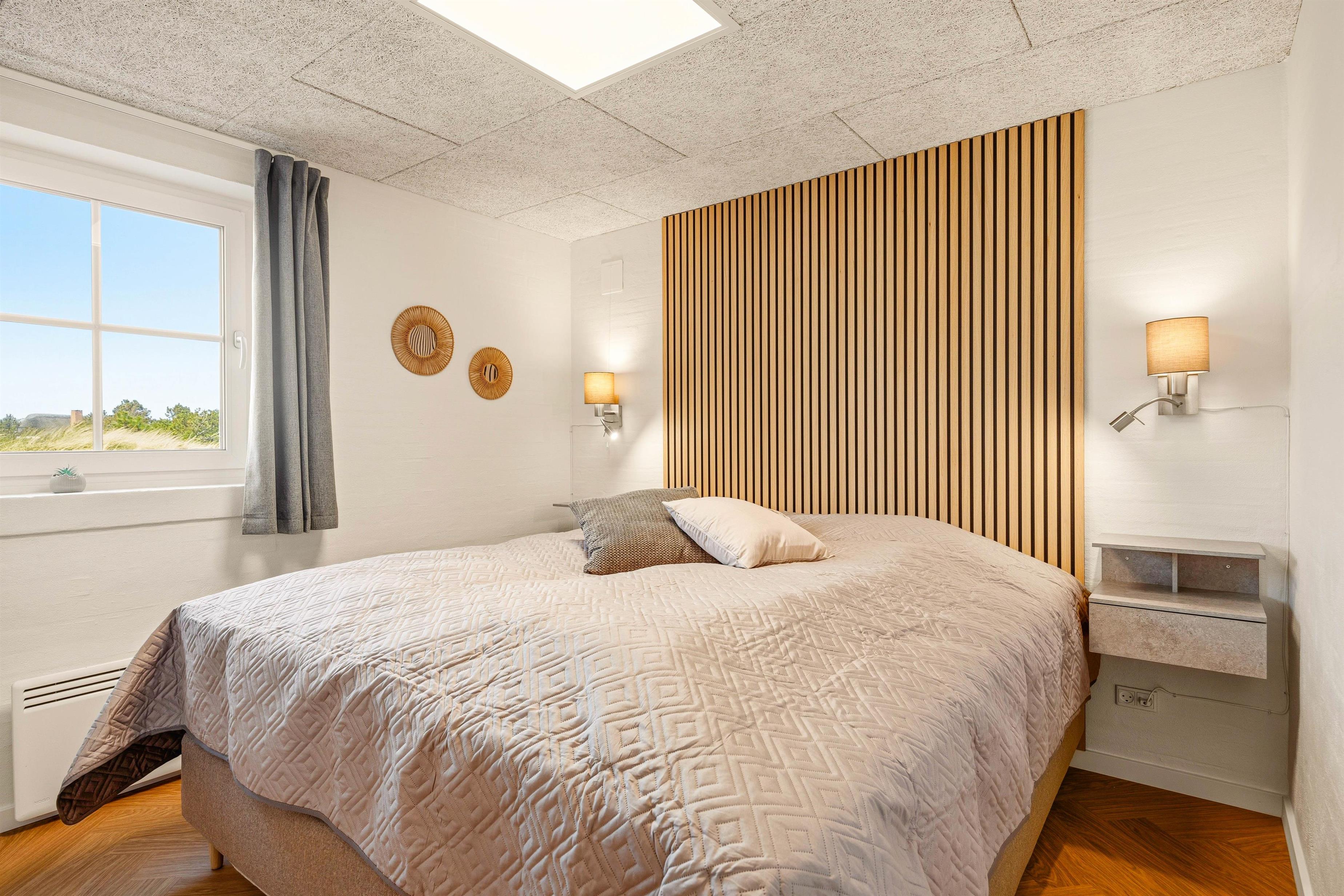 De 5 indbydende soveværelser giver god plads til ro og hvile med 4 dobbeltsenge og 2 enkeltsenge - her kan I få sovet igennem under de hyggelige, skrå vægge, så I er klar til næste dags aktiviteter. Efter dage fulde af oplevelser kan du nyde aftenerne ved brændeovnen i den store stue.