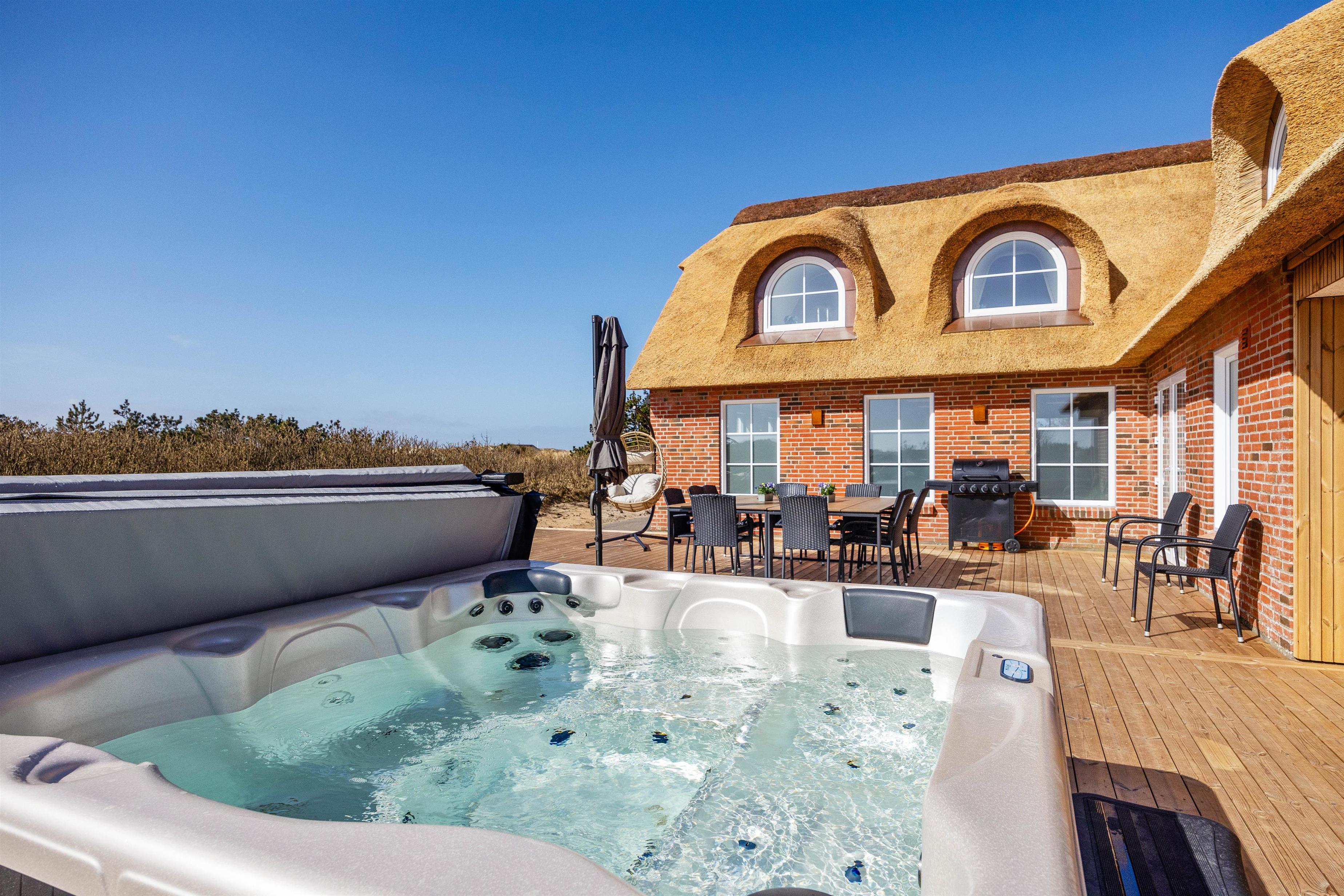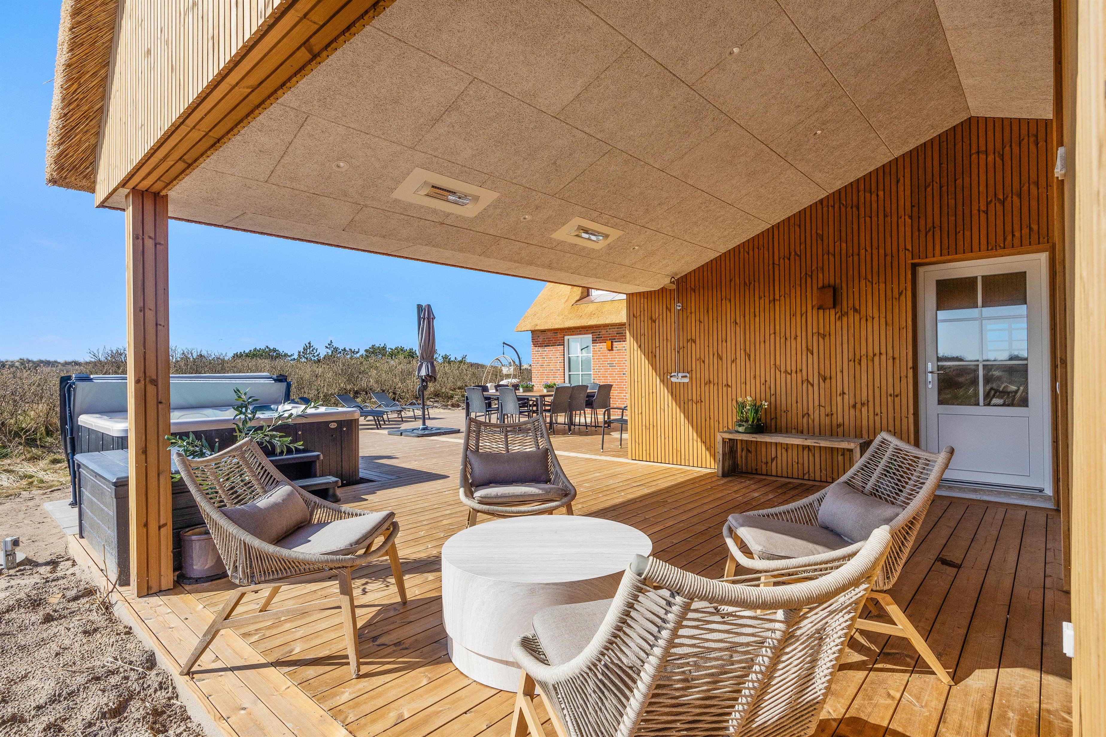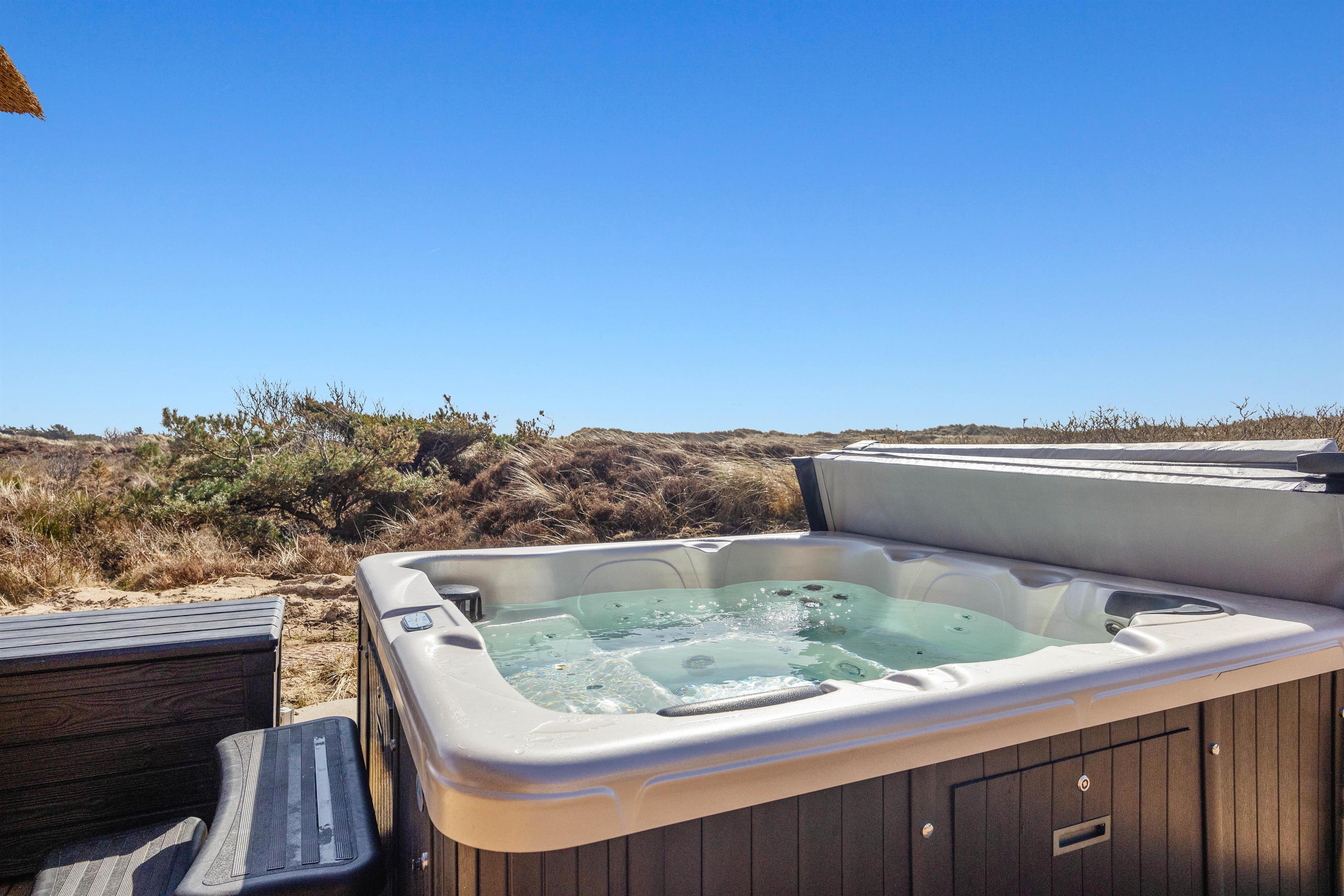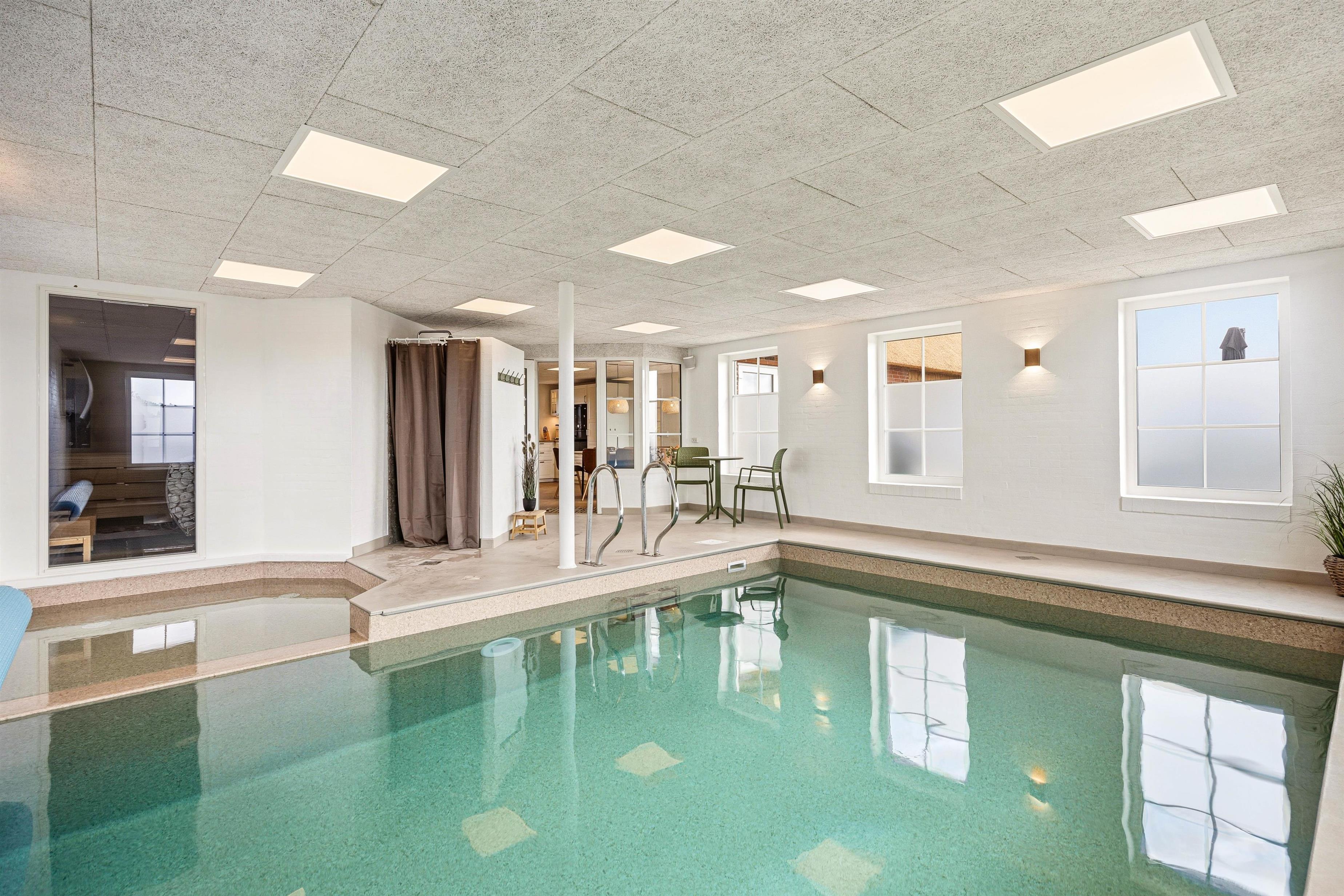 Det bedste i huset er dog den skønne 21 kvadratmeter store, indendørs swimmingpool, der indbyder til såvel sjove stunder som motion. Efter en rask svømmetur kan du slappe af i det udendørs spabad eller tage et forfriskende brusebad i den udendørs bruser, før du tager til den nærliggende strand kun 50 meter væk. Udebruseren kan benyttes fra 1. april til 31. oktober.