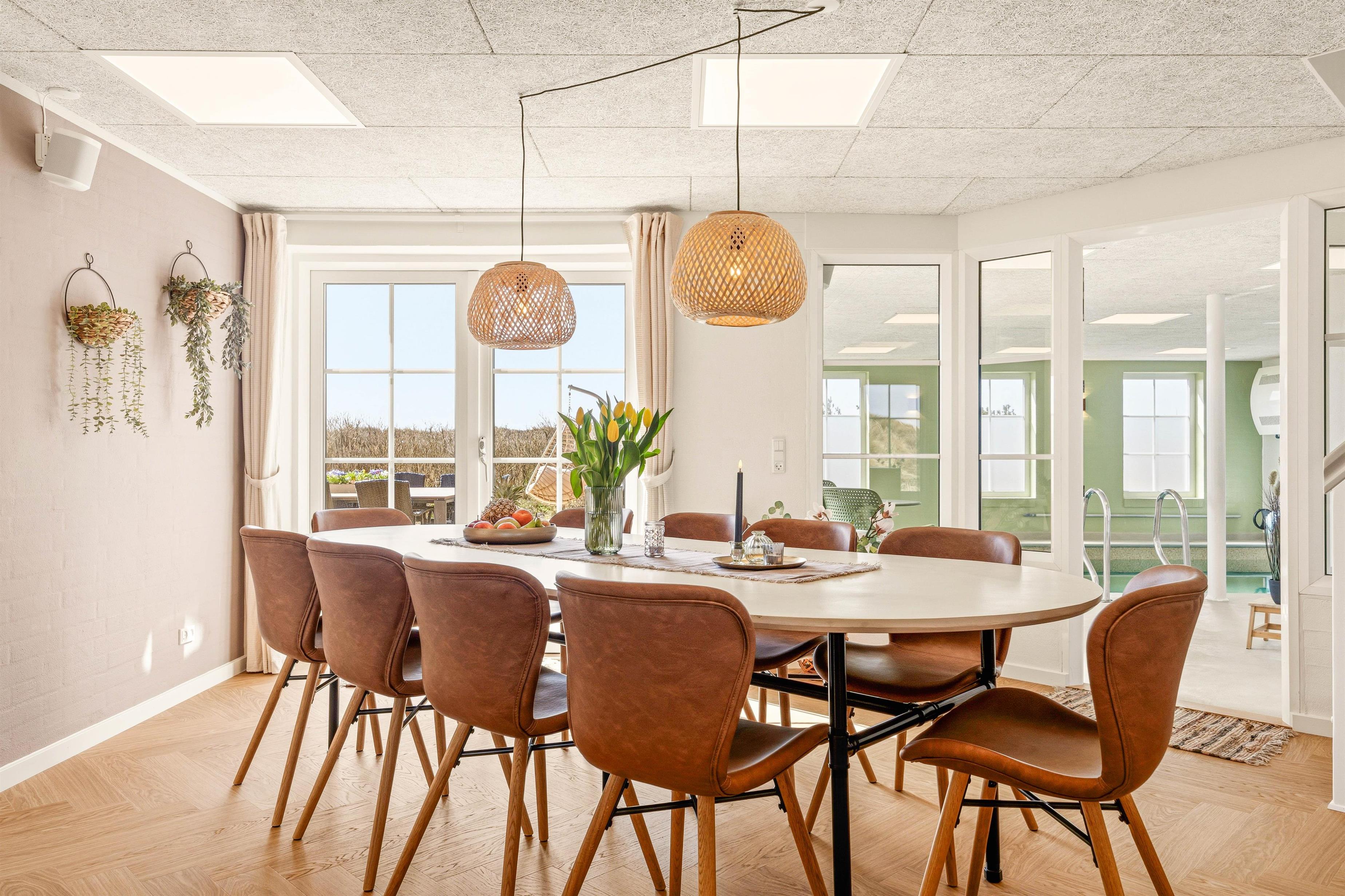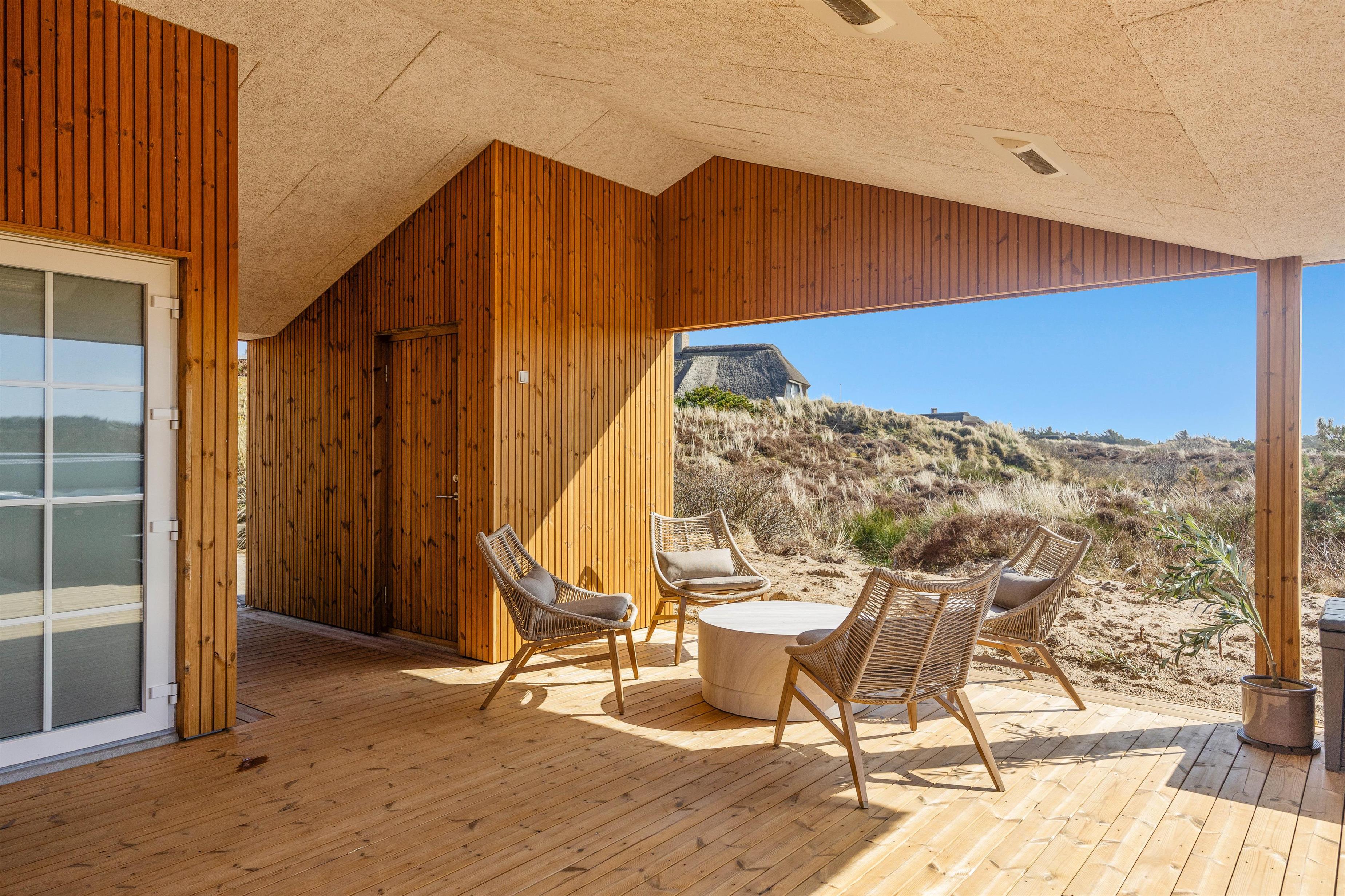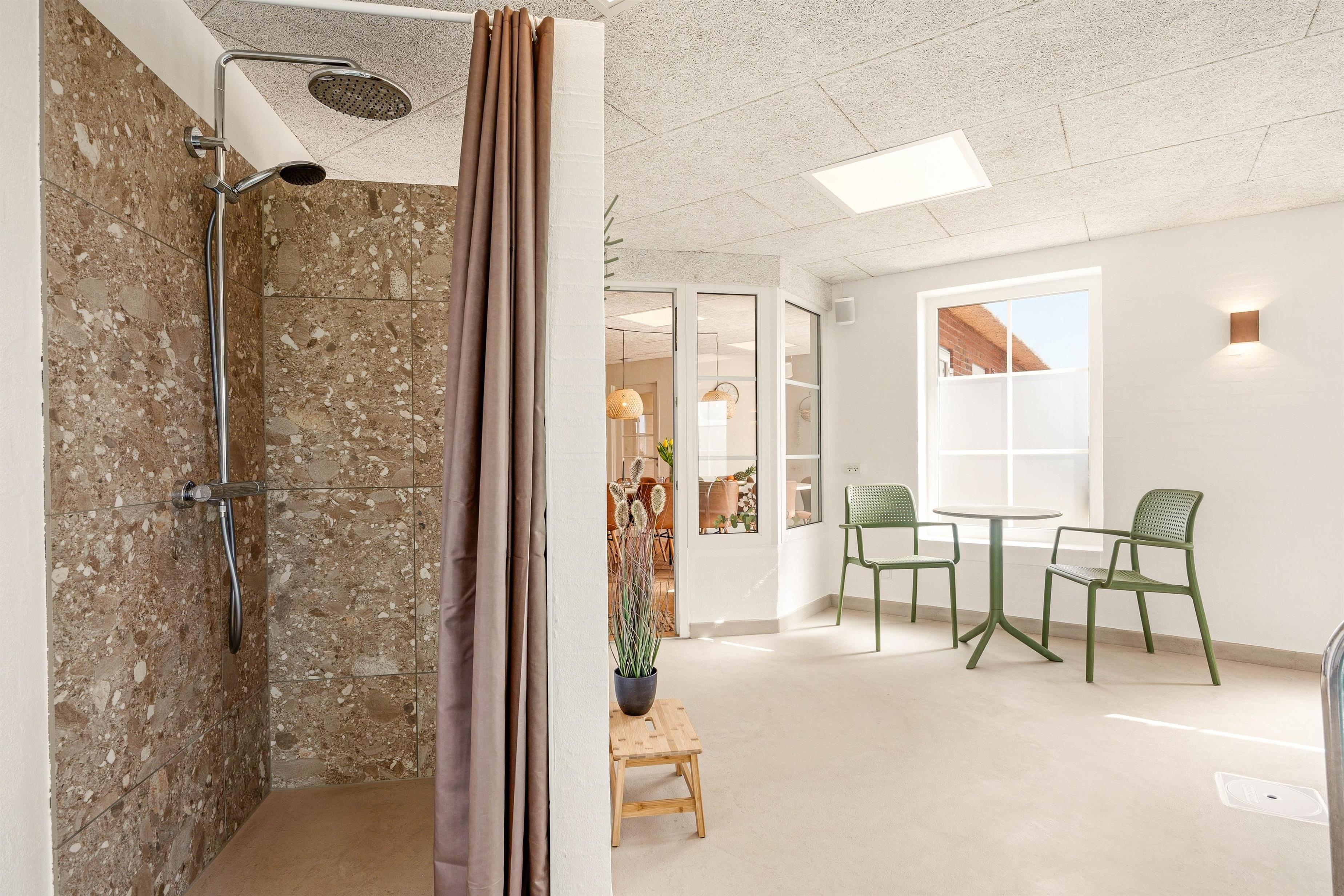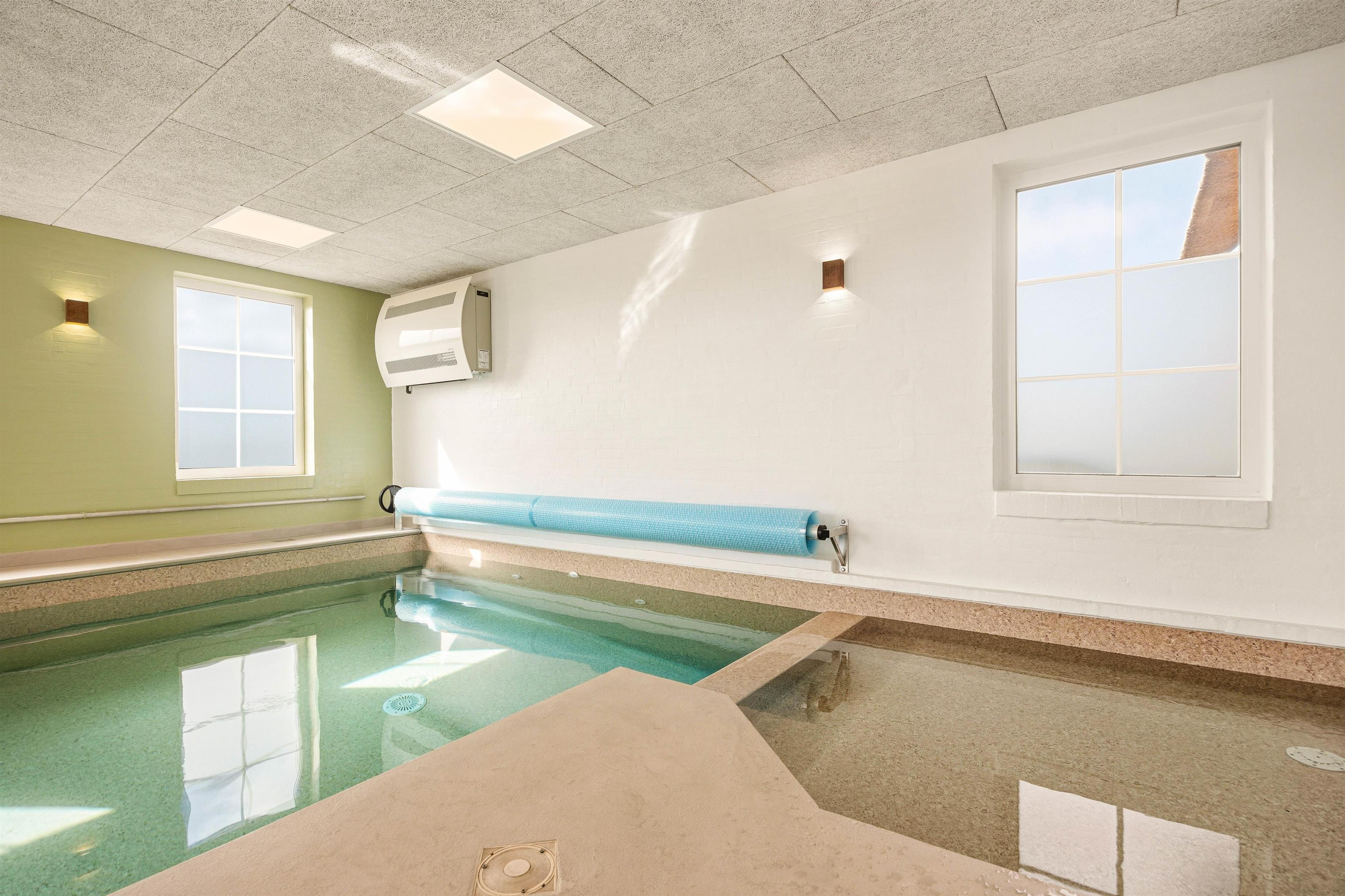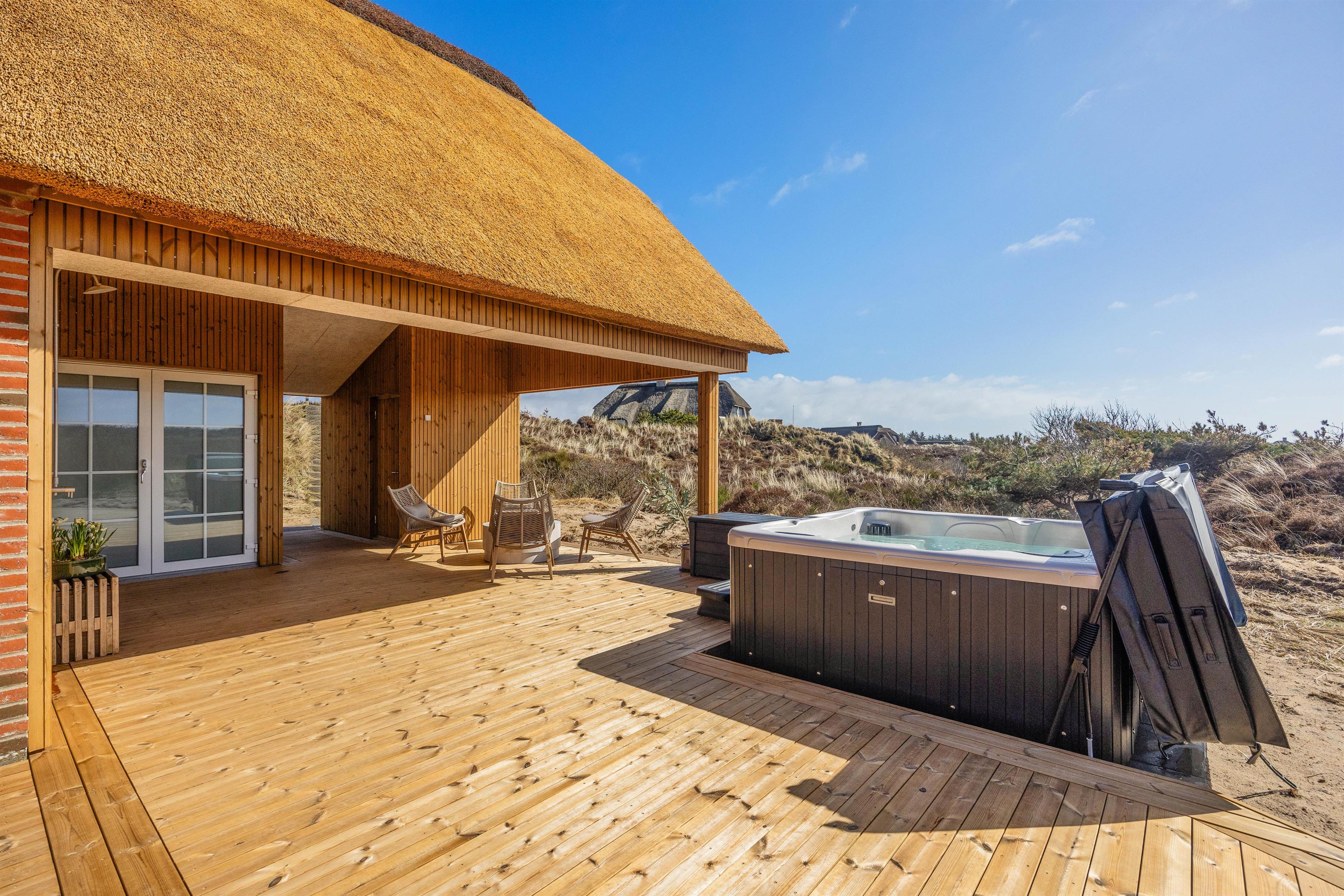 Det bedste i huset er dog den skønne 21 kvadratmeter store, indendørs swimmingpool, der indbyder til såvel sjove stunder som motion. Efter en rask svømmetur kan du slappe af i det udendørs spabad eller tage et forfriskende brusebad i den udendørs bruser, før du tager til den nærliggende strand kun 50 meter væk. Udebruseren kan benyttes fra 1. april til 31. oktober.