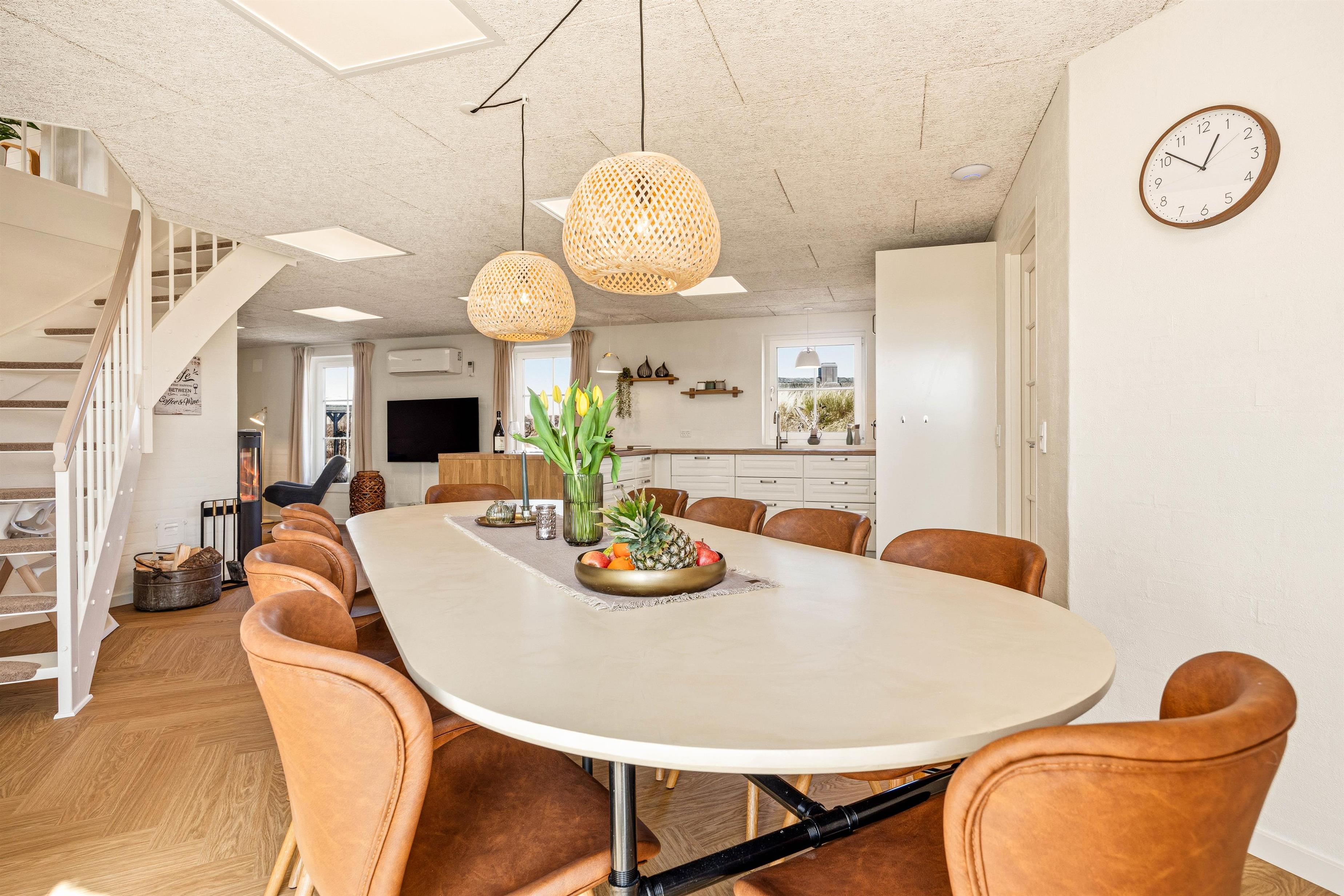 Den effektive varmepumpe samt gulvvarmen i badeværelserne sørger for et behageligt indeklima i huset året rundt, uanset årstiden - derfor vil du altid nyde at holde din ferie her.
