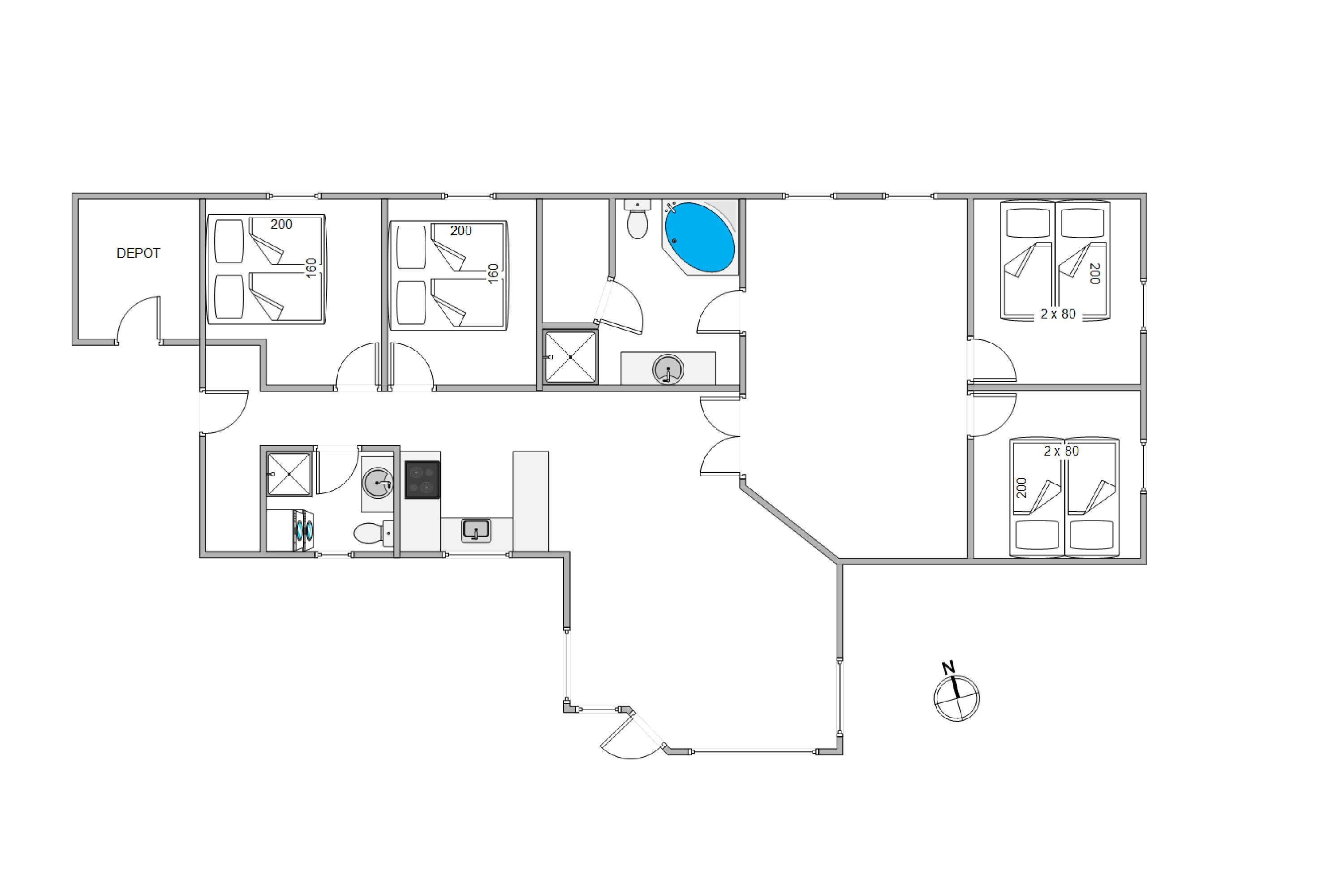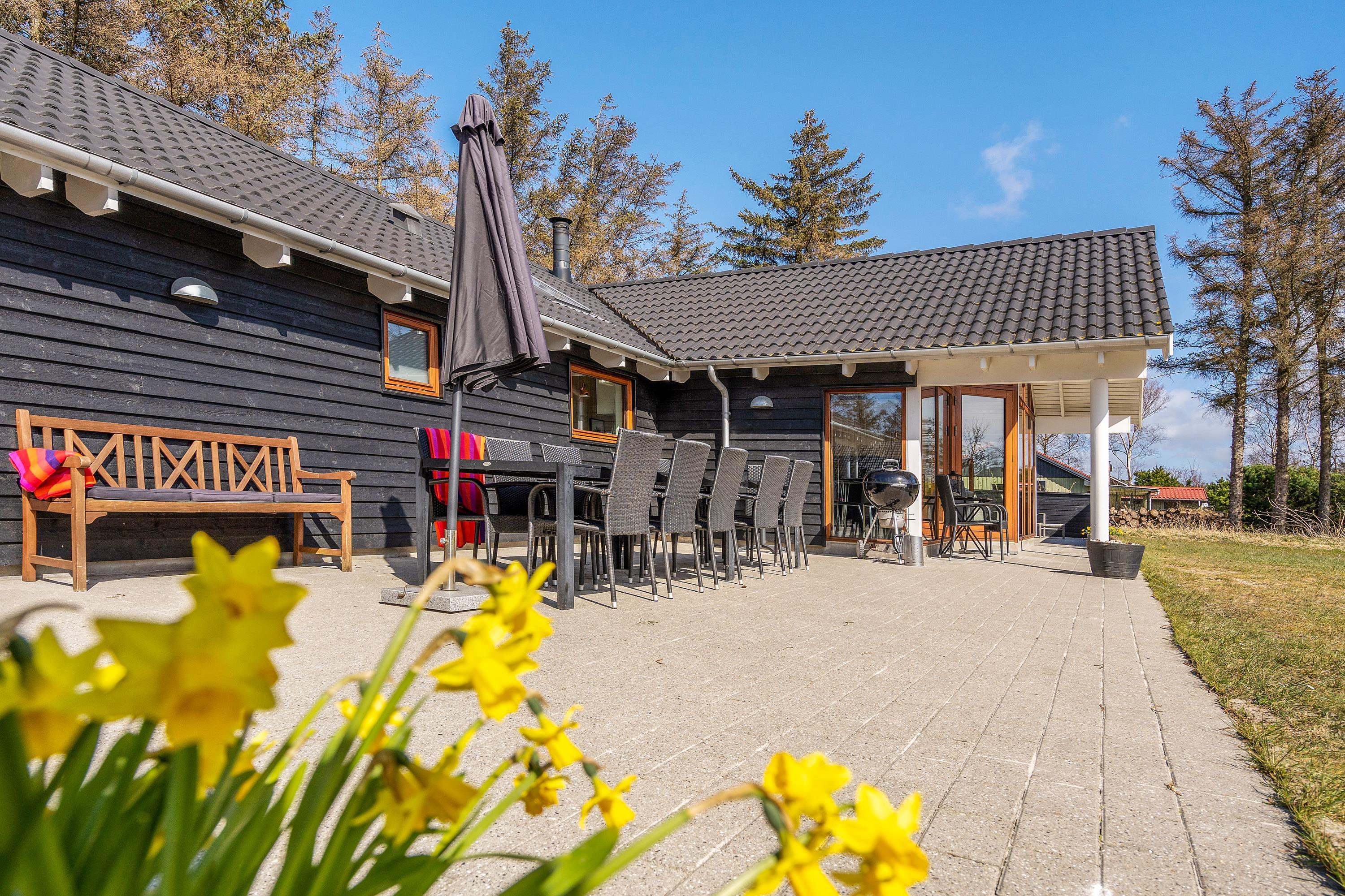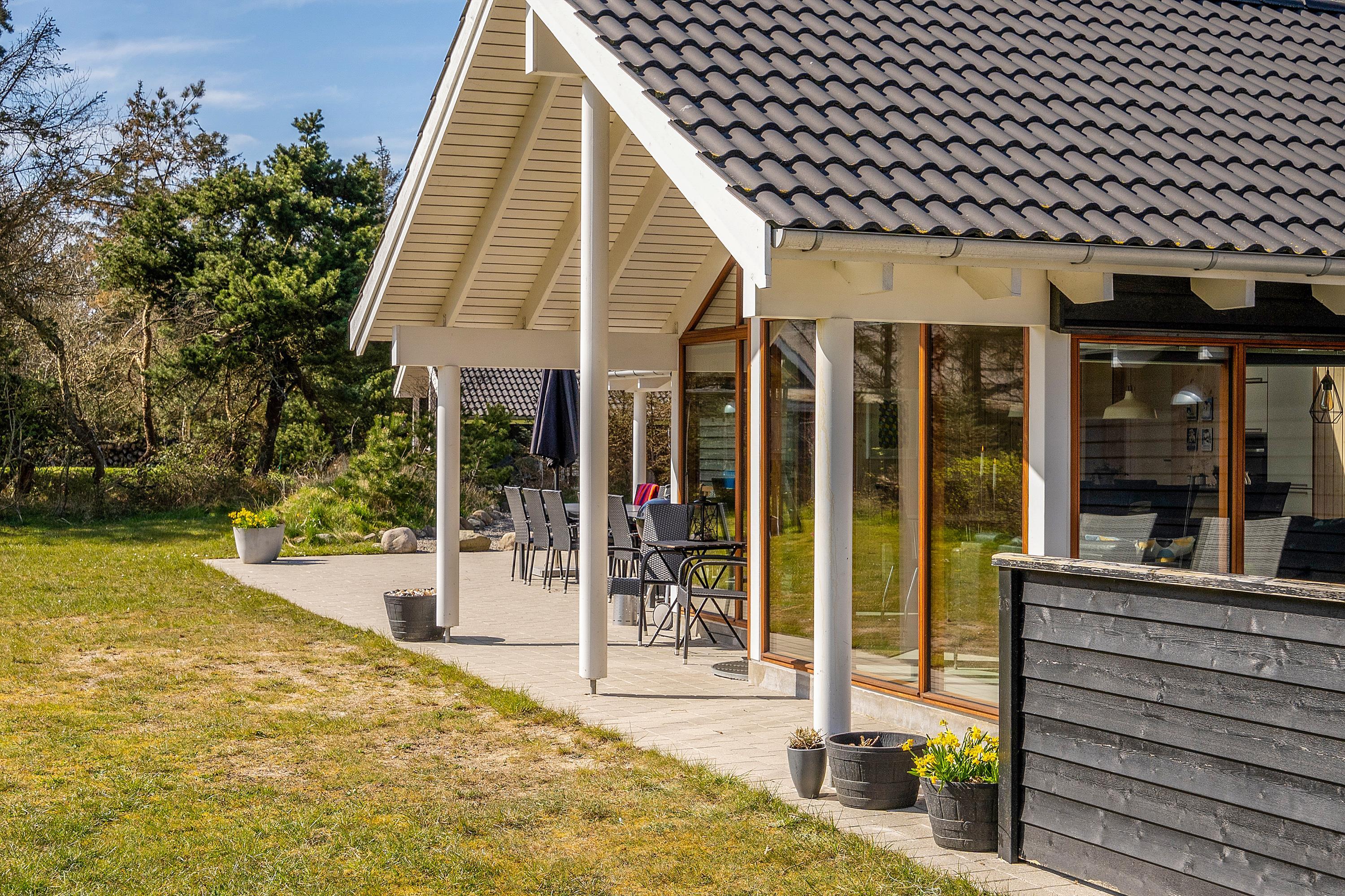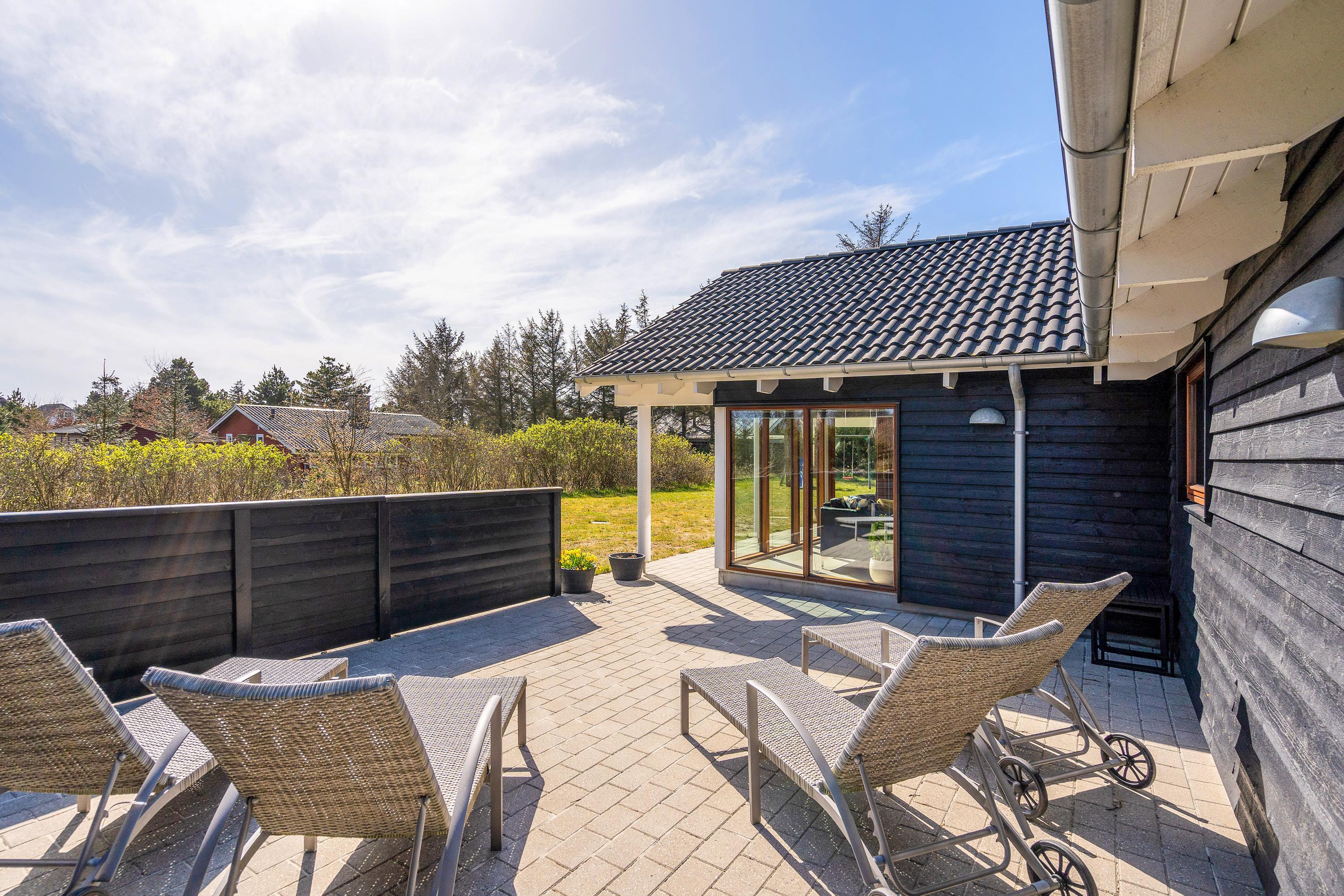Sommerhuset ligger på en stor grund midt i et smukt hede- og klitlandskab med terrasse og legeplads, hvor du kan nyde solens stråler, mens børnene leger i sandkassen, på gyngerne eller i legetårnet. Der er gode havemøbler på terrassen og en grill, så du kan grille pølser, bøffer og andre lækkerier.