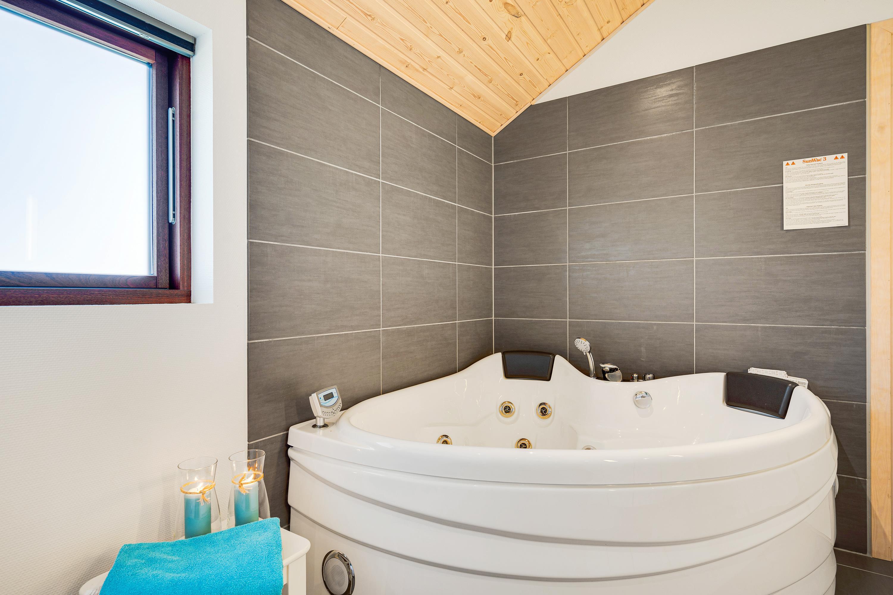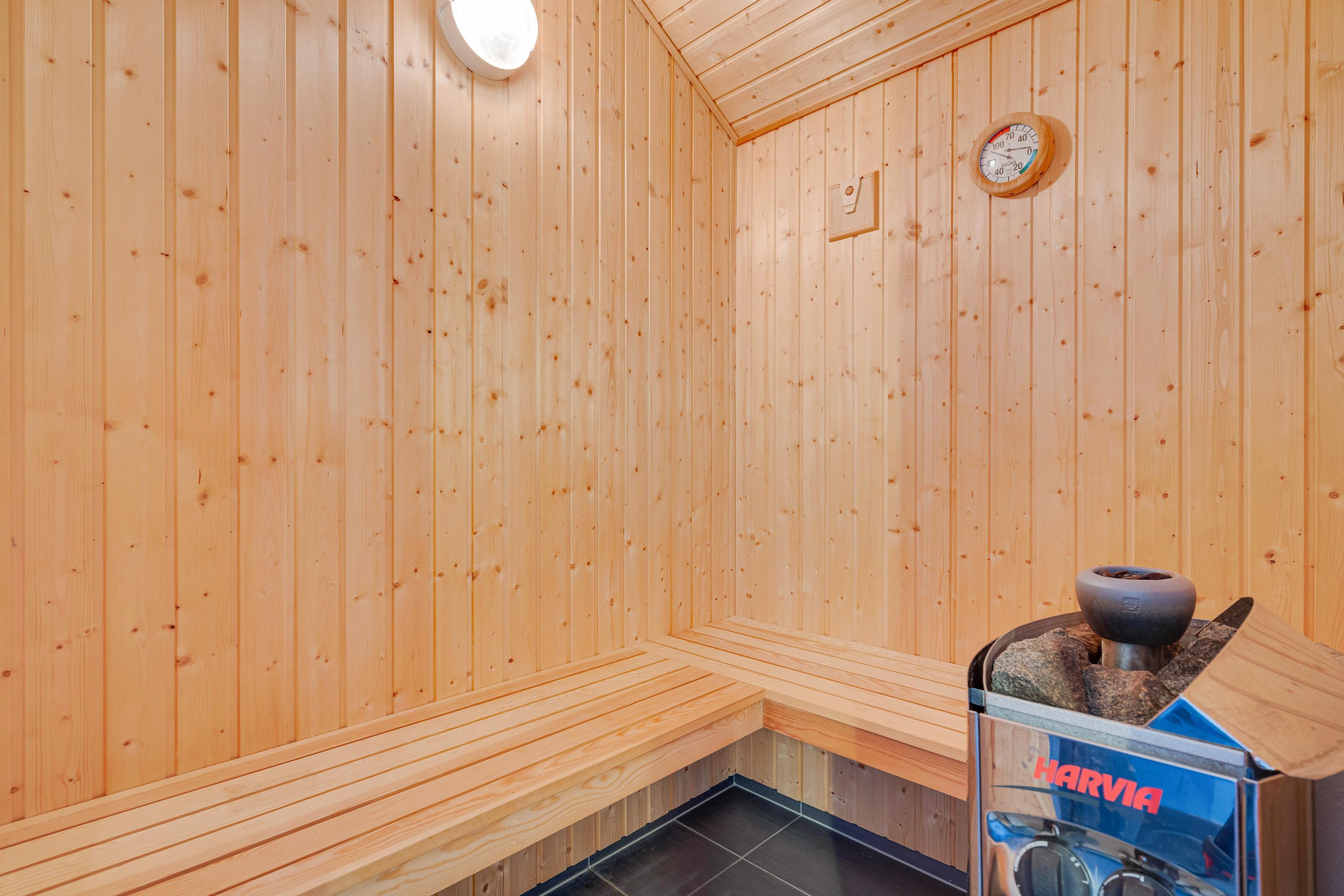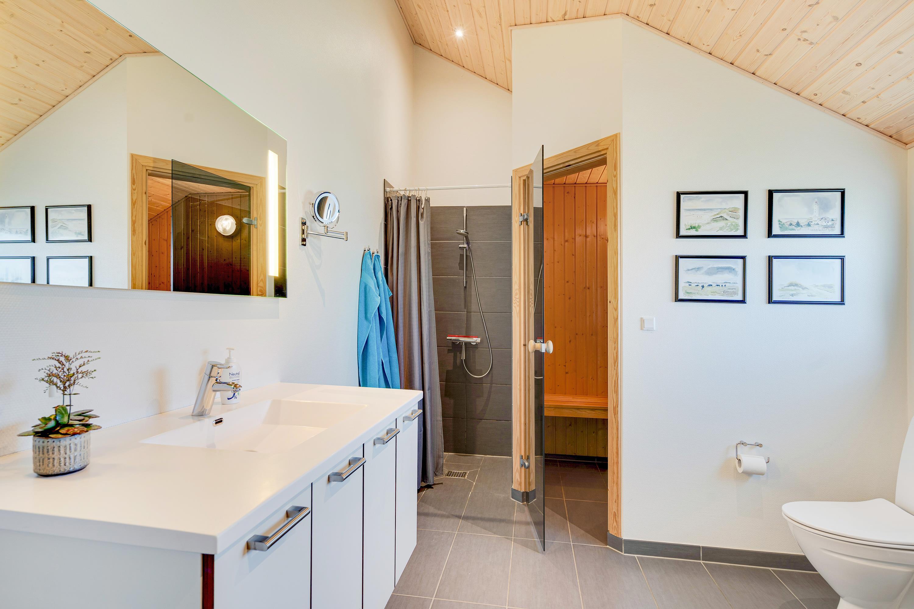 Der er to badeværelser i sommerhuset med både sauna og spabad, hvor du kan nyde nogle skønne timer, her står den på ren afslapning og nydelse.