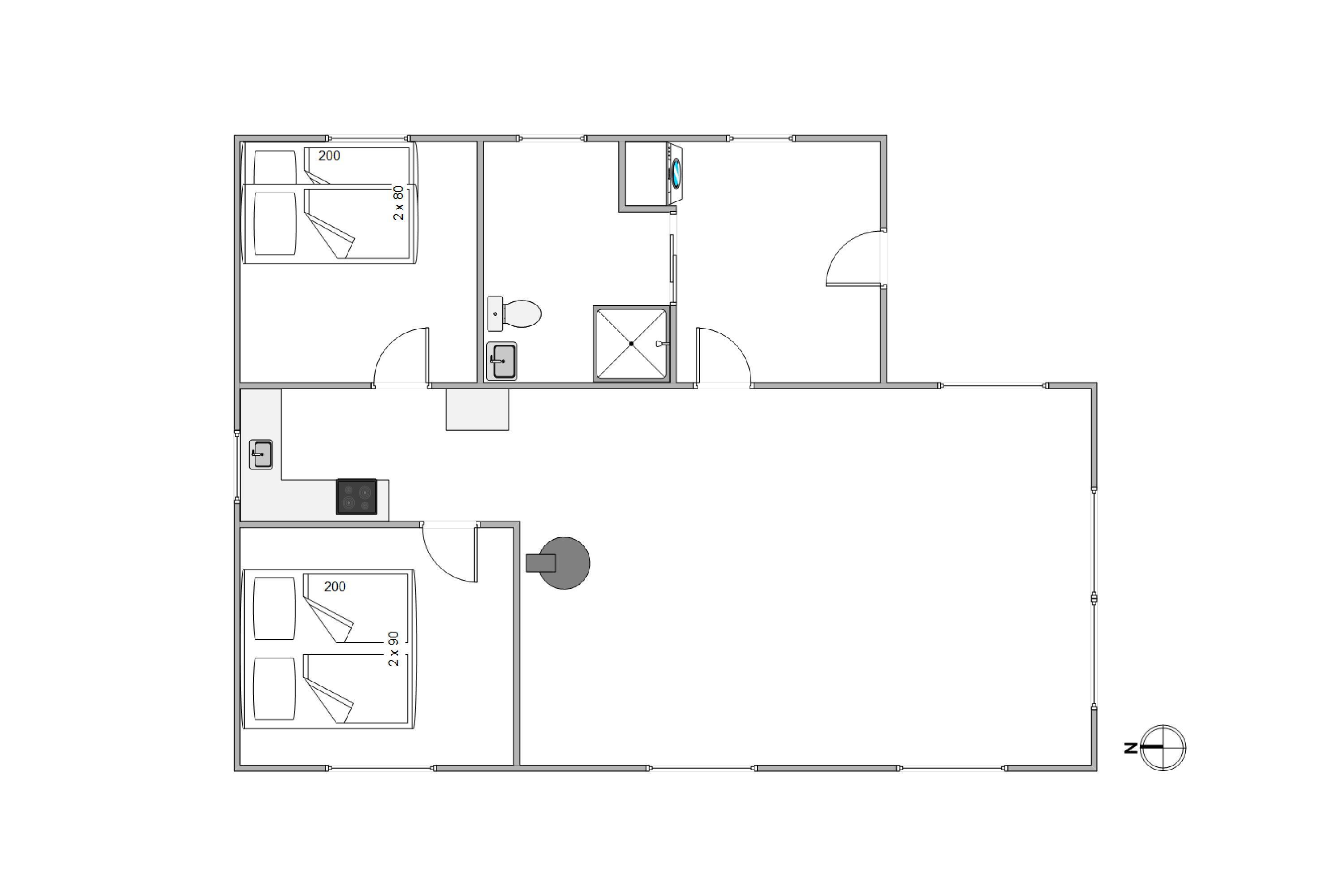 Sommerhuset på 50 m2 rummer 2 gode soveværelser, og det er derfor ideelt til den lille familie eller parret. Her er loft til kip, komfortable møbler og ikke mindst en hyggelig brændeovn, der med sin centrale placering skaber god varme og hygge. Her er plads til sofahygge – uanset om det er med en film, en god bog, eller I blot vil betragte de viftede marehalm.