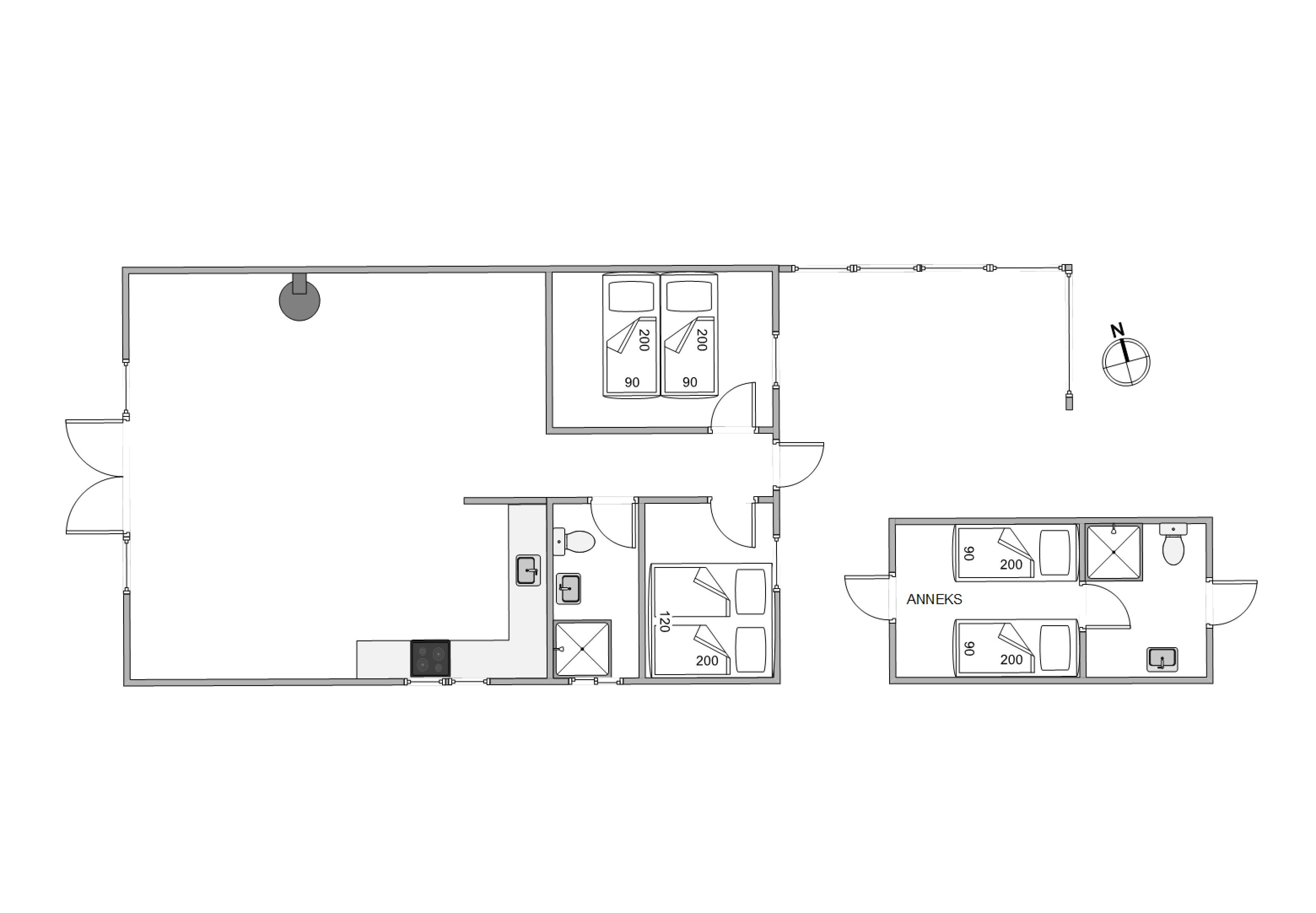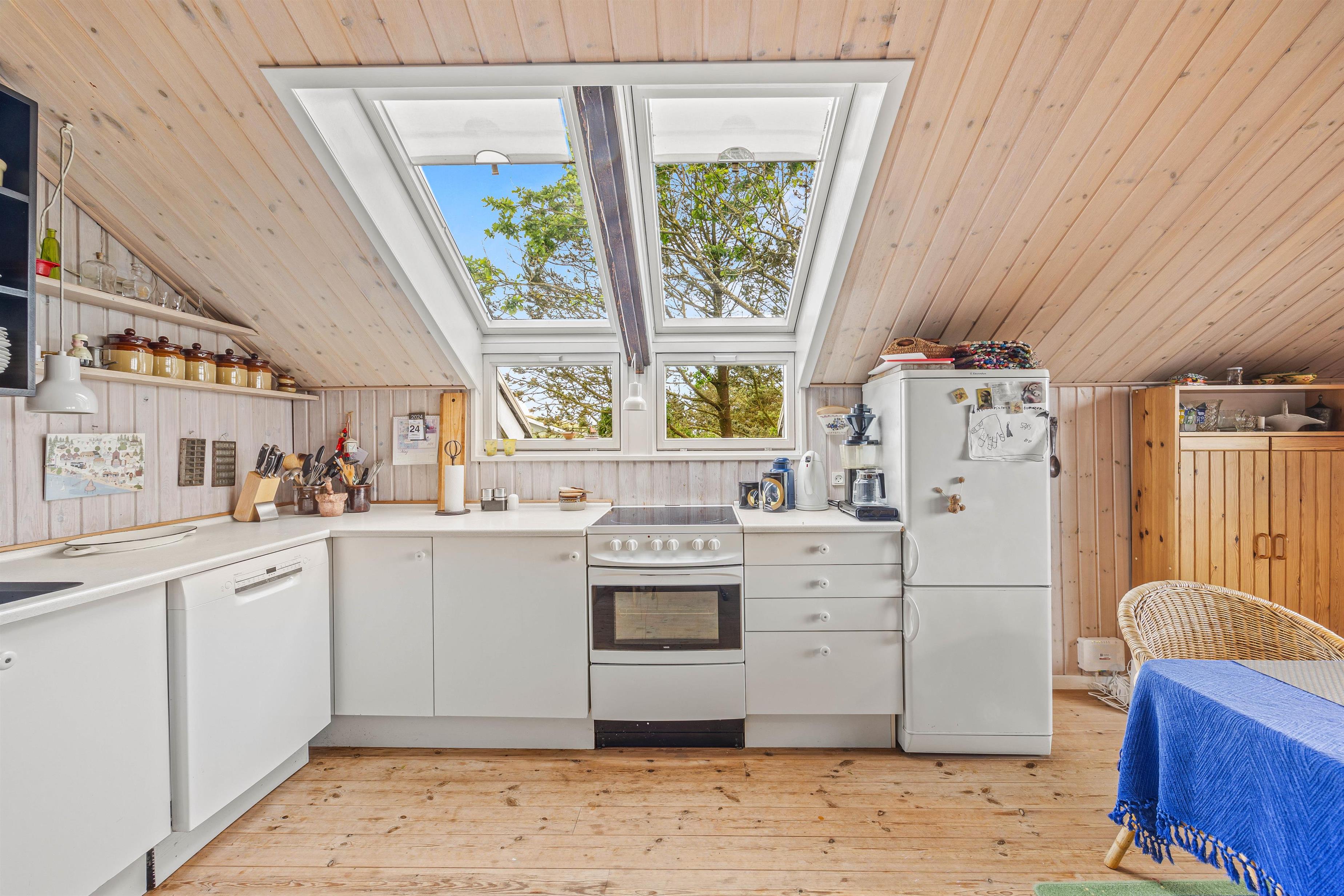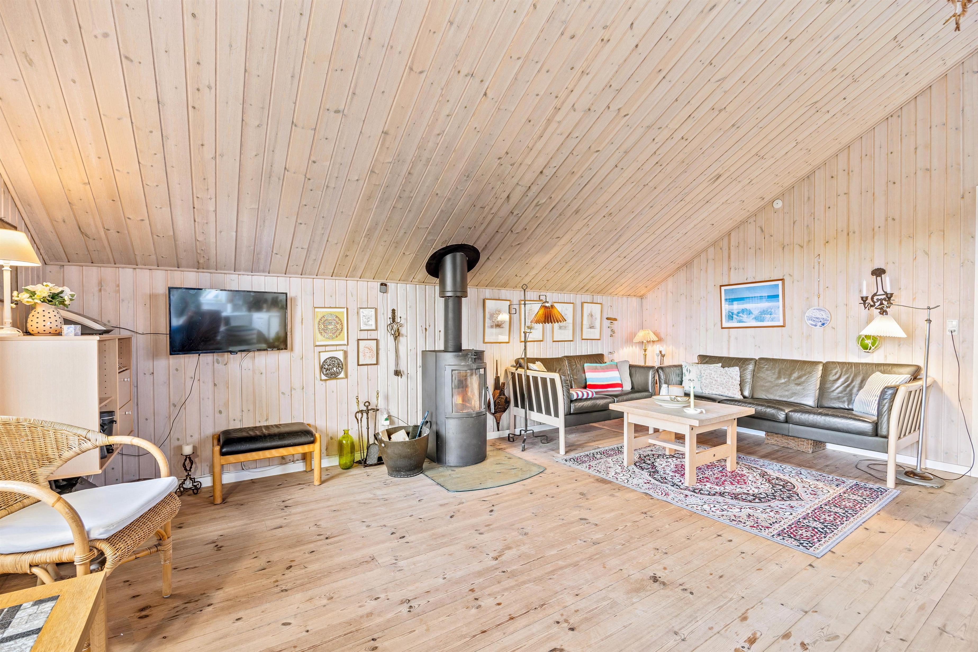 Sommerhuset er ideelt for familien eller vennerne, der søger både komfort og hygge. Den lyse stue med kombineret køkken og ovenlys skaber en varm og venlig atmosfære. Tilbring hyggelige aftener ved brændeovnen eller brug den moderne og energibesparende varmepumpe til at justere temperaturen efter jeres behov. Det veludstyrede køkken med opvaskemaskine gør det nemt at tilberede lækre måltider, og den åbne terrasse med grill indbyder til uforglemmelige aftener under åben himmel. På kølige aftener kan I nyde hyggen ved brændeovnen, der skaber en varm og indbydende stemning. Slap af med en god bog eller en spændende film og mærk, hvordan ferien langsomt kommer ind under huden.