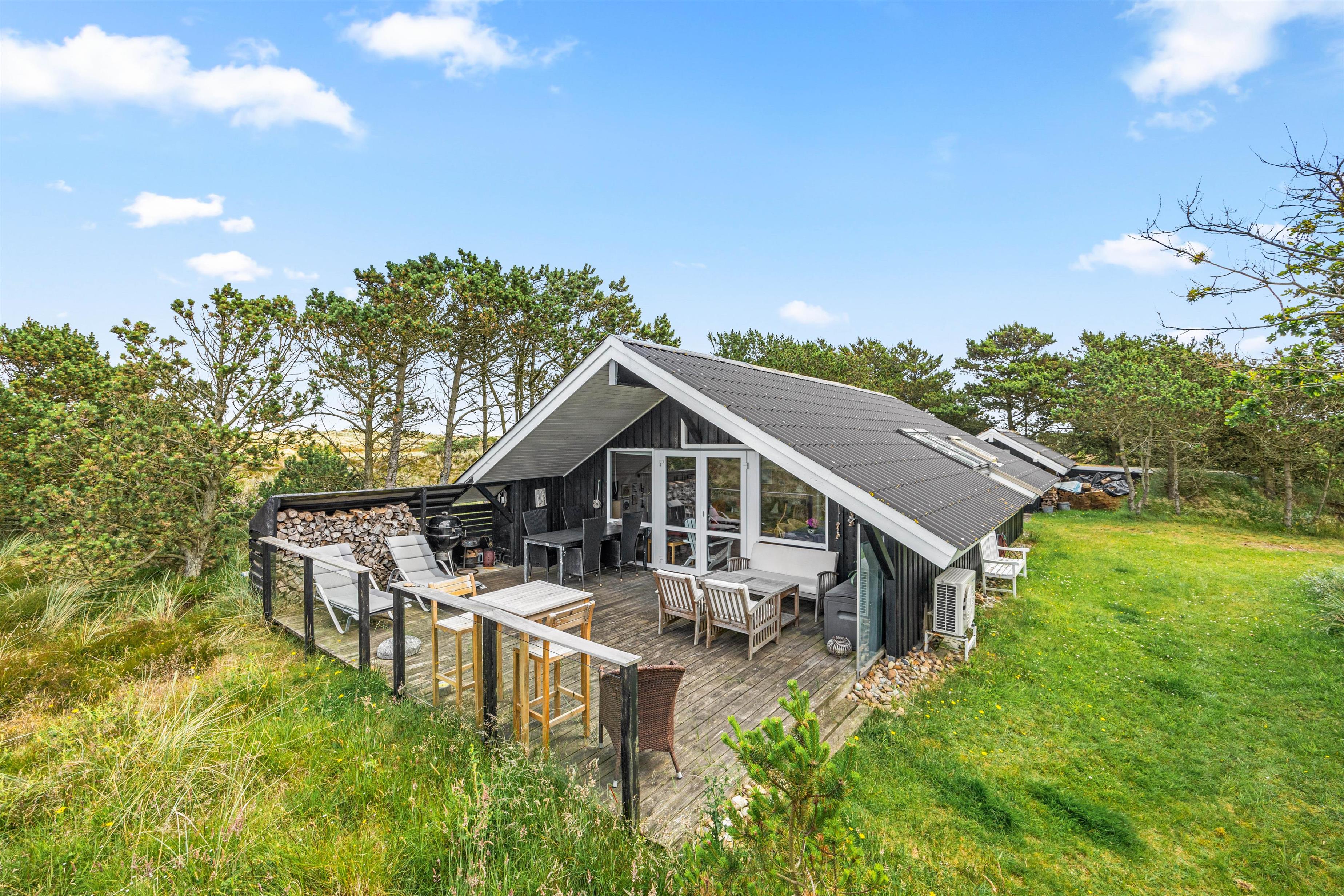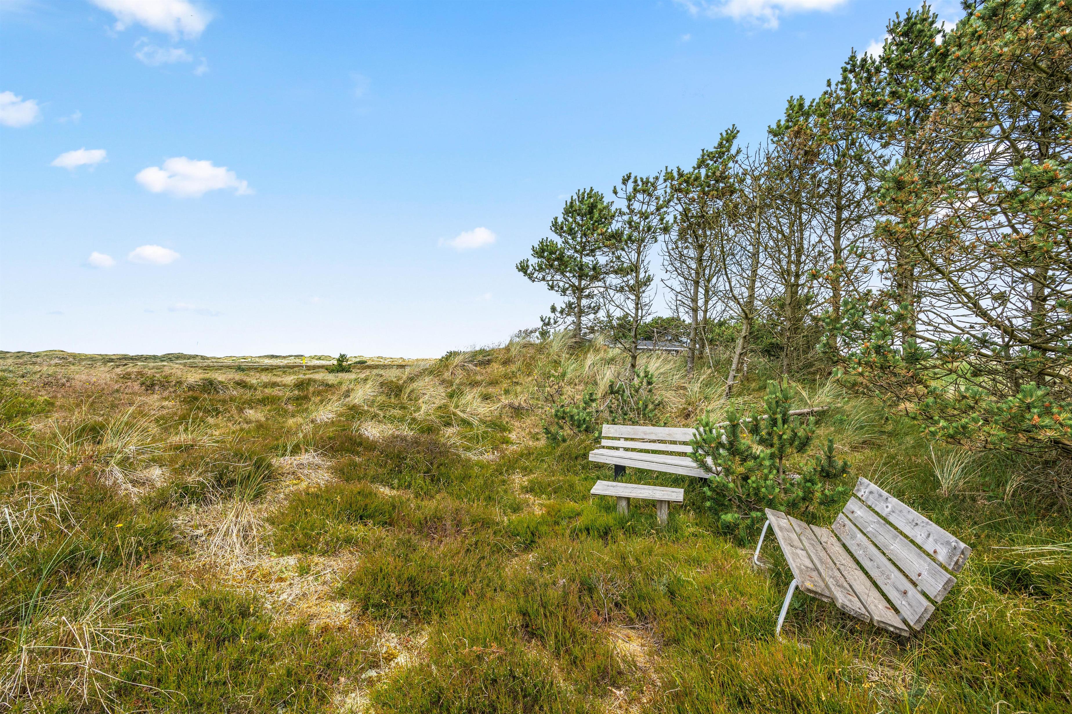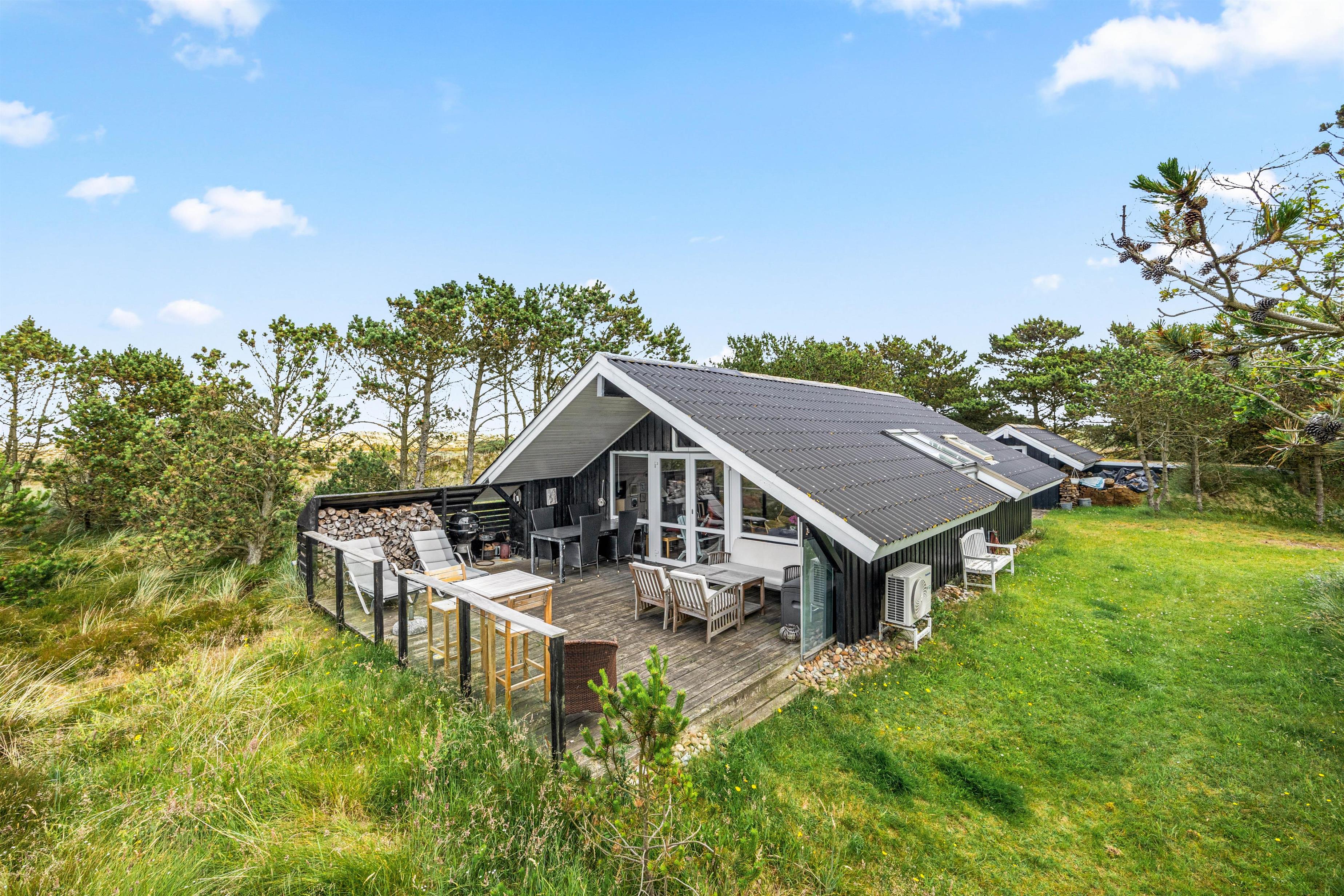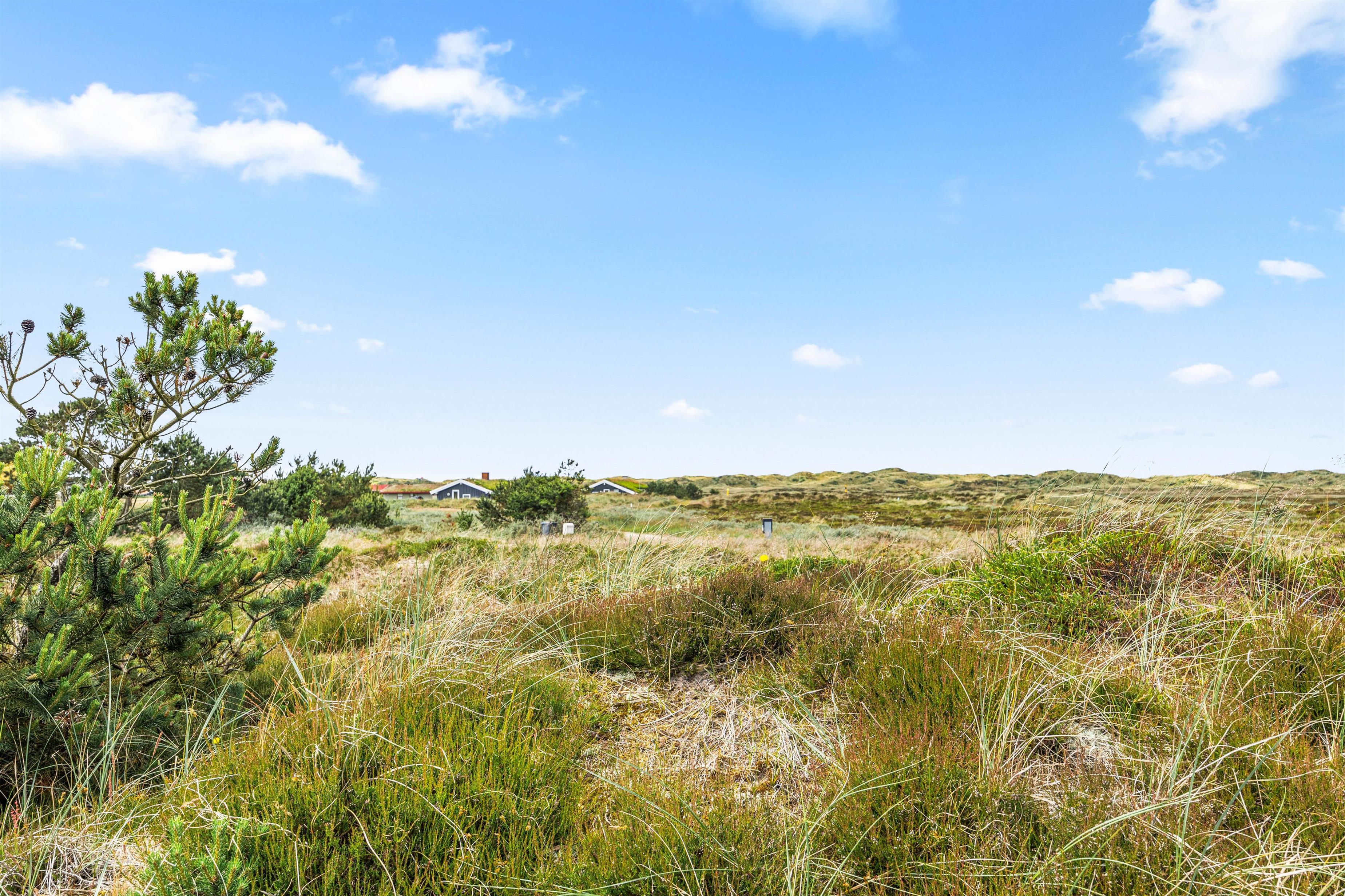 Dette feriehus i Blåvand ligger på en unik klitgrund, omgivet af idyllisk natur. Om I nyder morgenmaden på den overdækkede terrasse eller solbader på den overdafskærmede terrasse, kan I nyde det smukke landskab og den friske havbrise i fulde drag. De 2500 meter til nærmeste indkøbsmuligheder gør det nemt at få alt, hvad I behøver under jeres ophold. Høj blå himmel og uberørt natur danner en kulisse, der får jer til at glemme hverdagens stress.