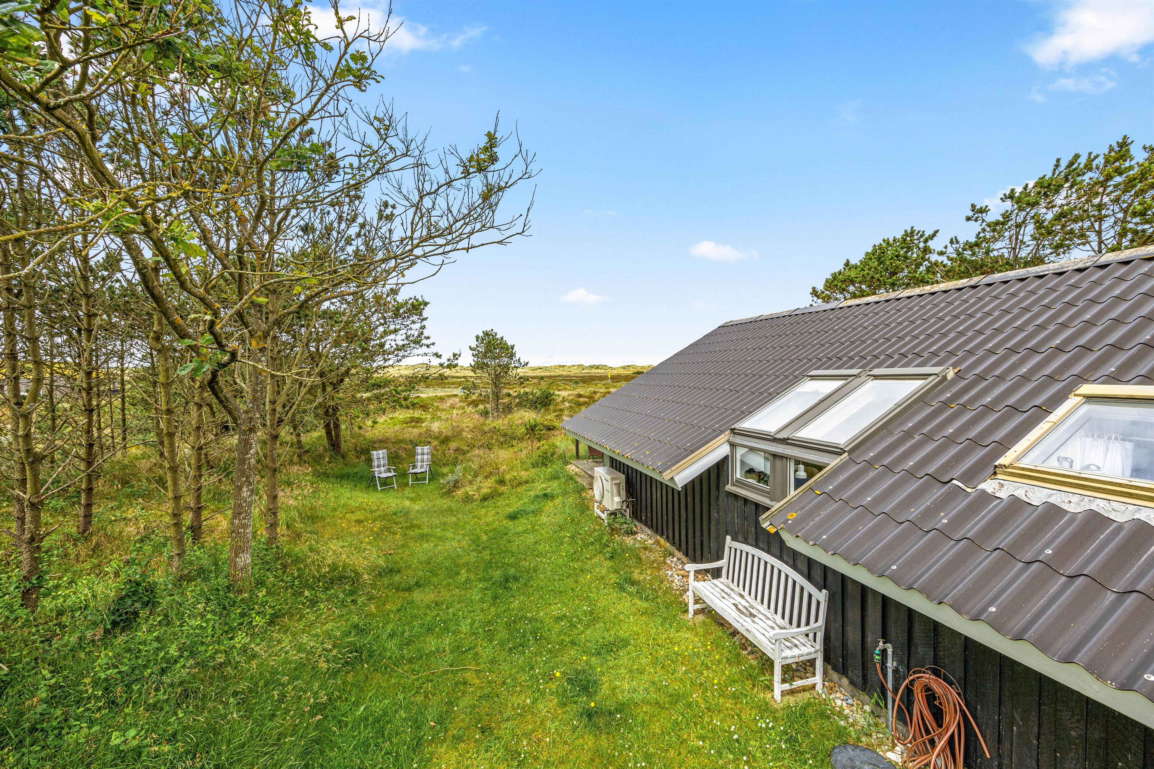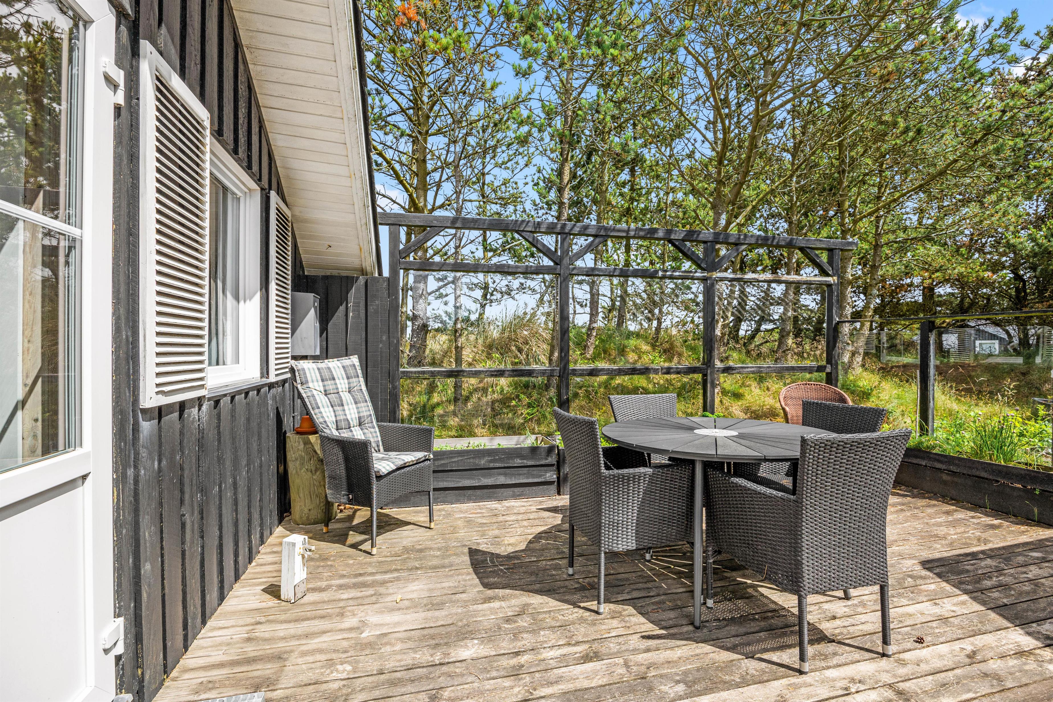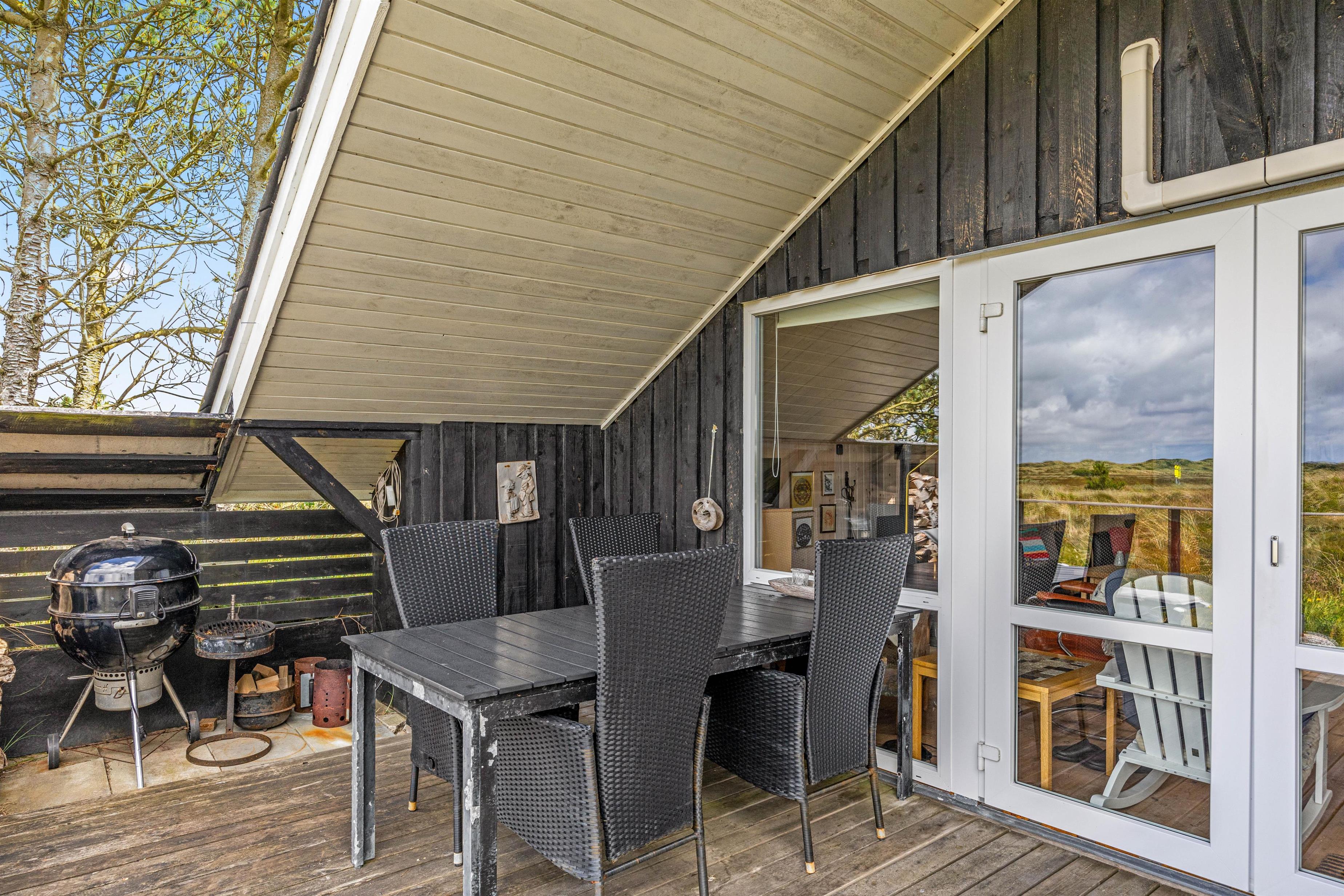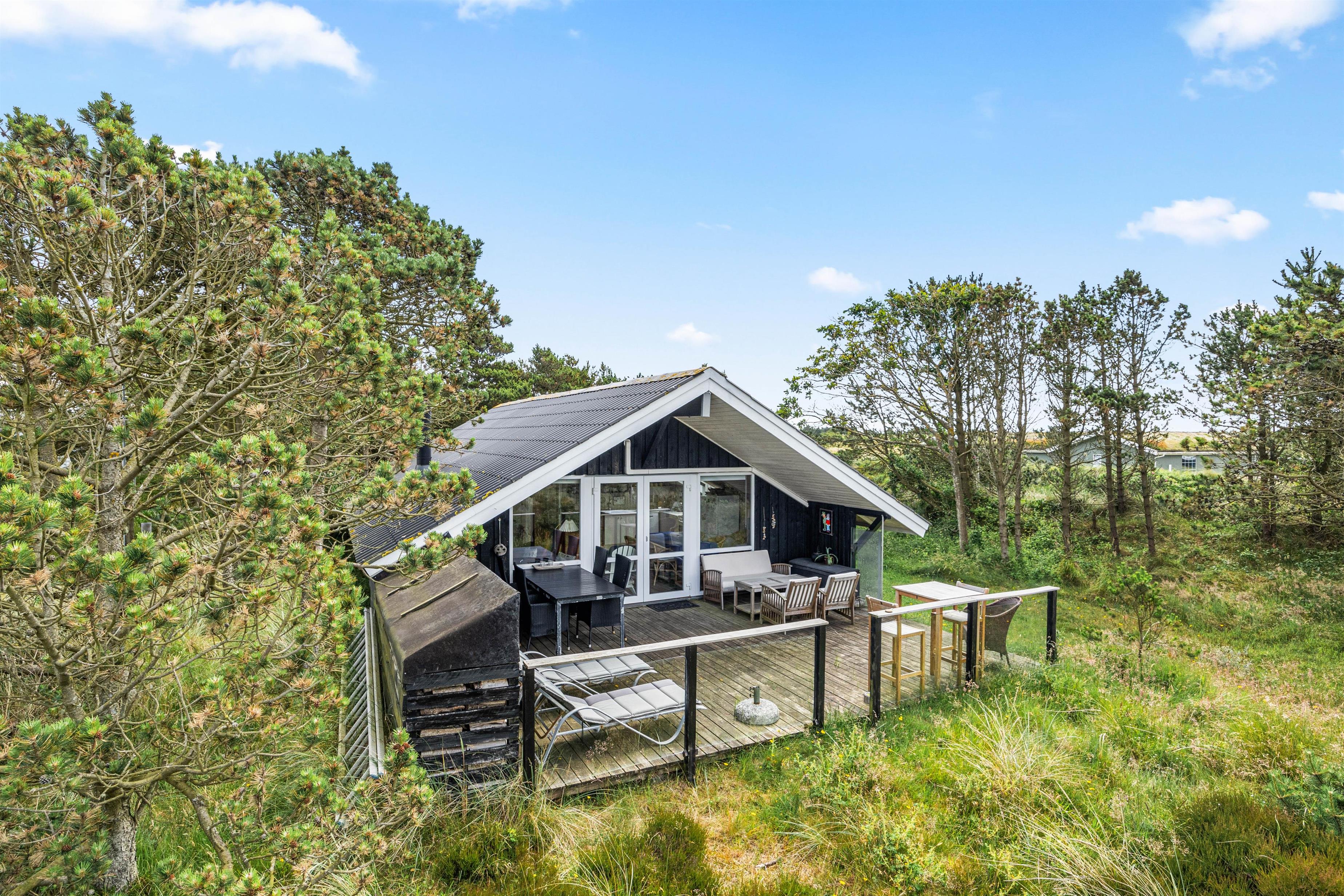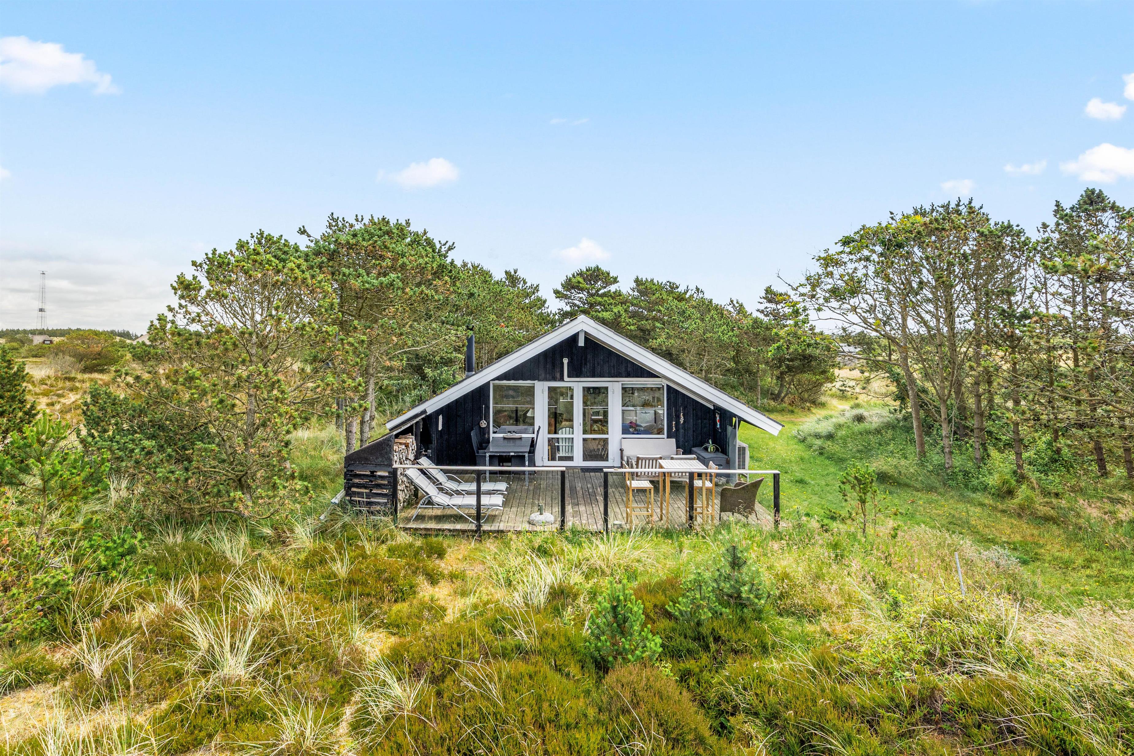 Dette feriehus i Blåvand ligger på en unik klitgrund, omgivet af idyllisk natur. Om I nyder morgenmaden på den overdækkede terrasse eller solbader på den overdafskærmede terrasse, kan I nyde det smukke landskab og den friske havbrise i fulde drag. De 2500 meter til nærmeste indkøbsmuligheder gør det nemt at få alt, hvad I behøver under jeres ophold. Høj blå himmel og uberørt natur danner en kulisse, der får jer til at glemme hverdagens stress.