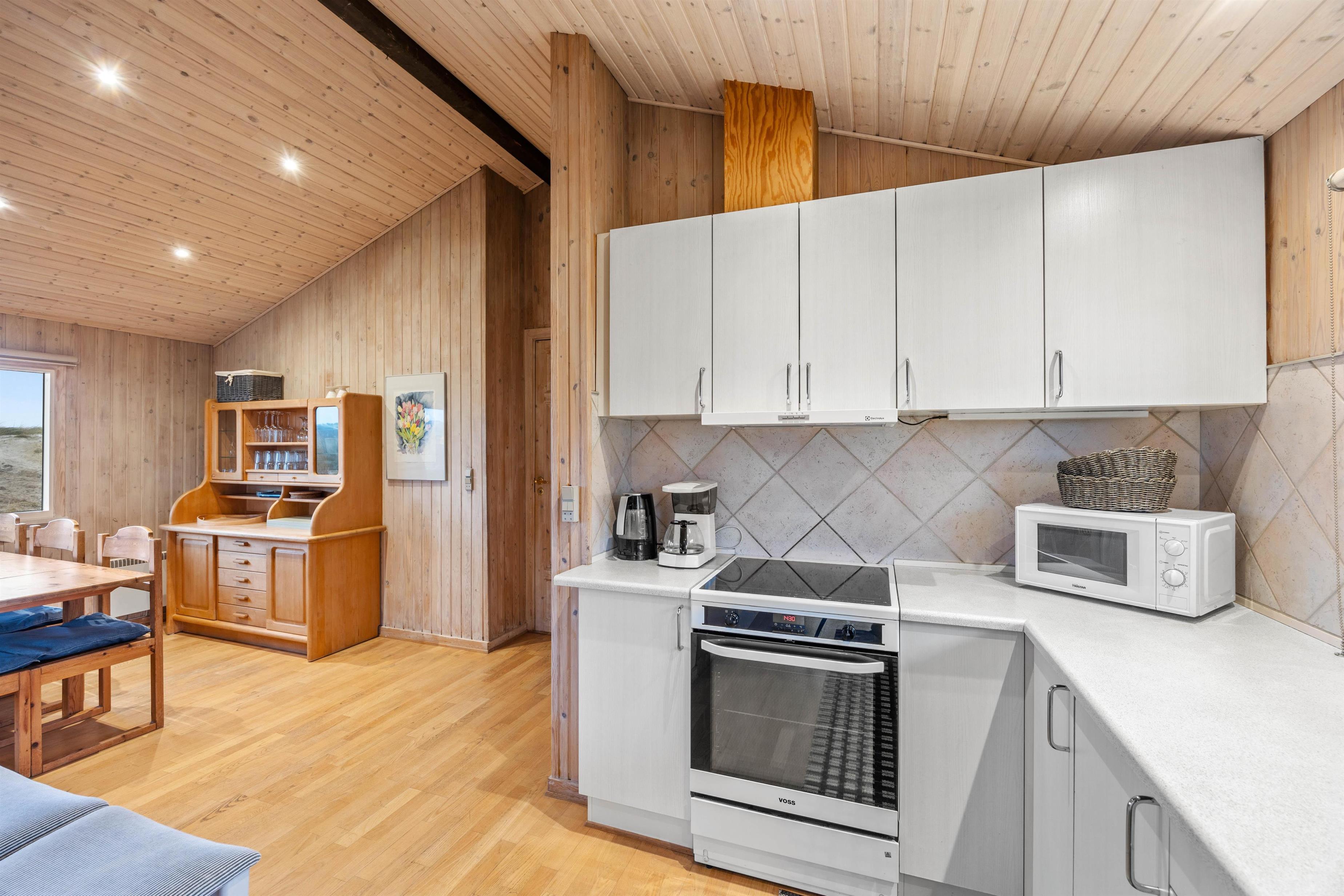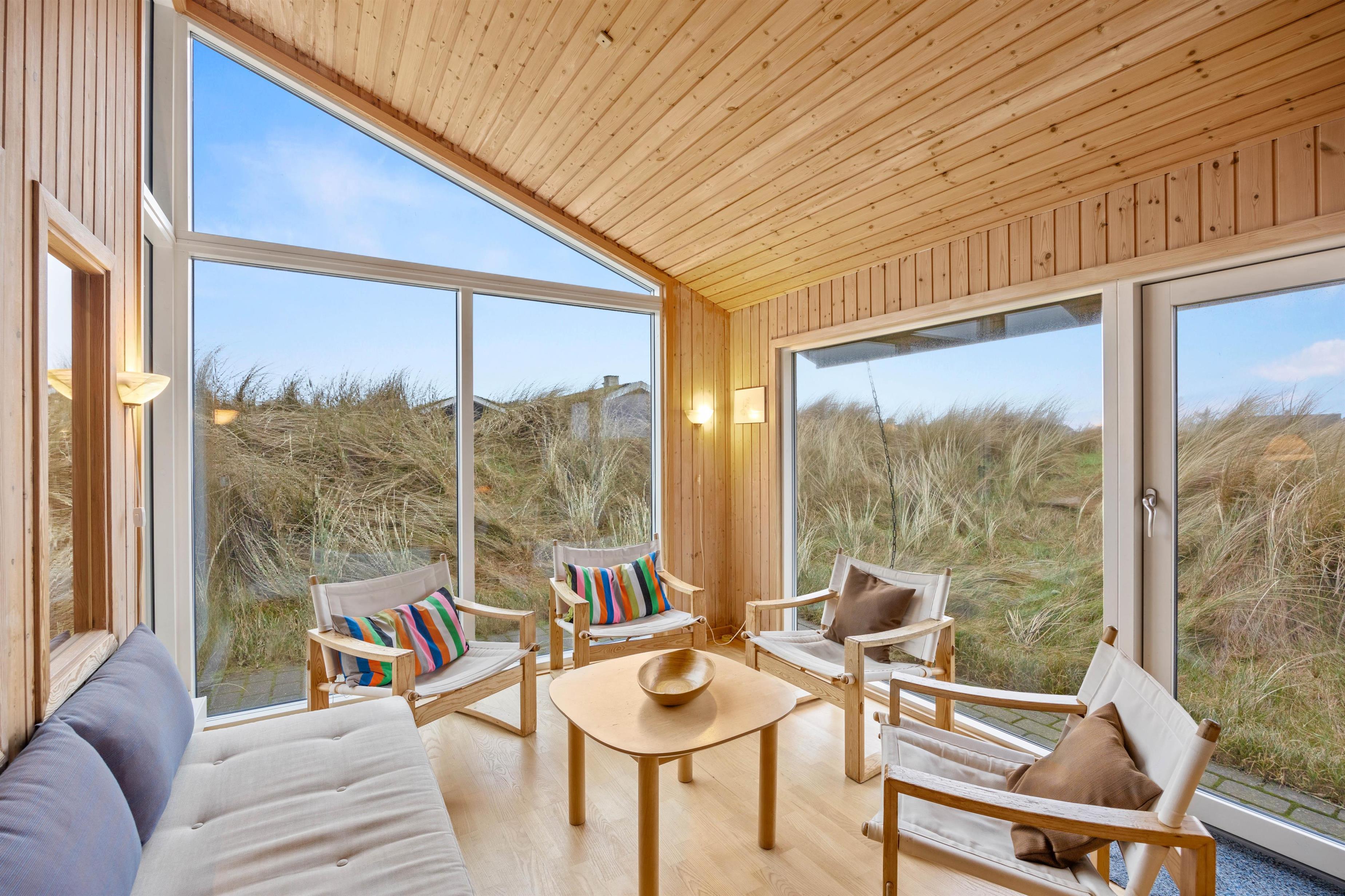 I det rummelige træhus har I god plads til at brede jer og slappe af. Læn jer tilbage i sofaen med en god bog eller en film i fjernsynet, eller ryk ud i den hyggelige udestue med en nybrygget kop kaffe, mens I har udsigt til klitlandskab så langt, øjet rækker.
