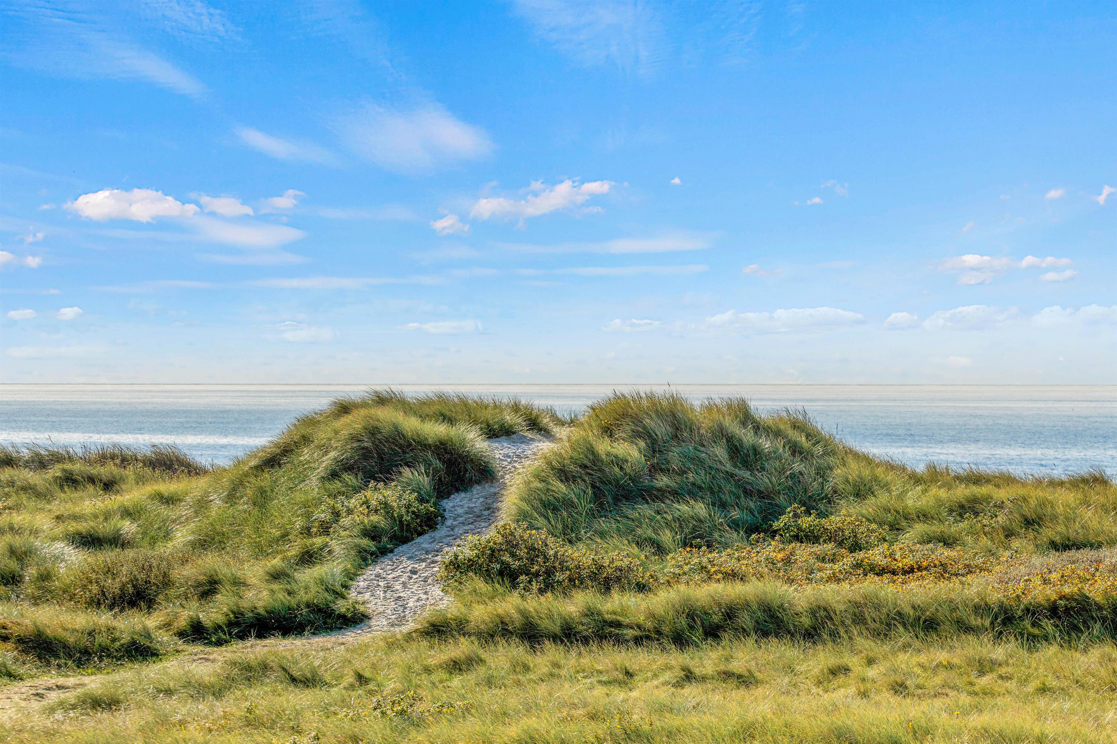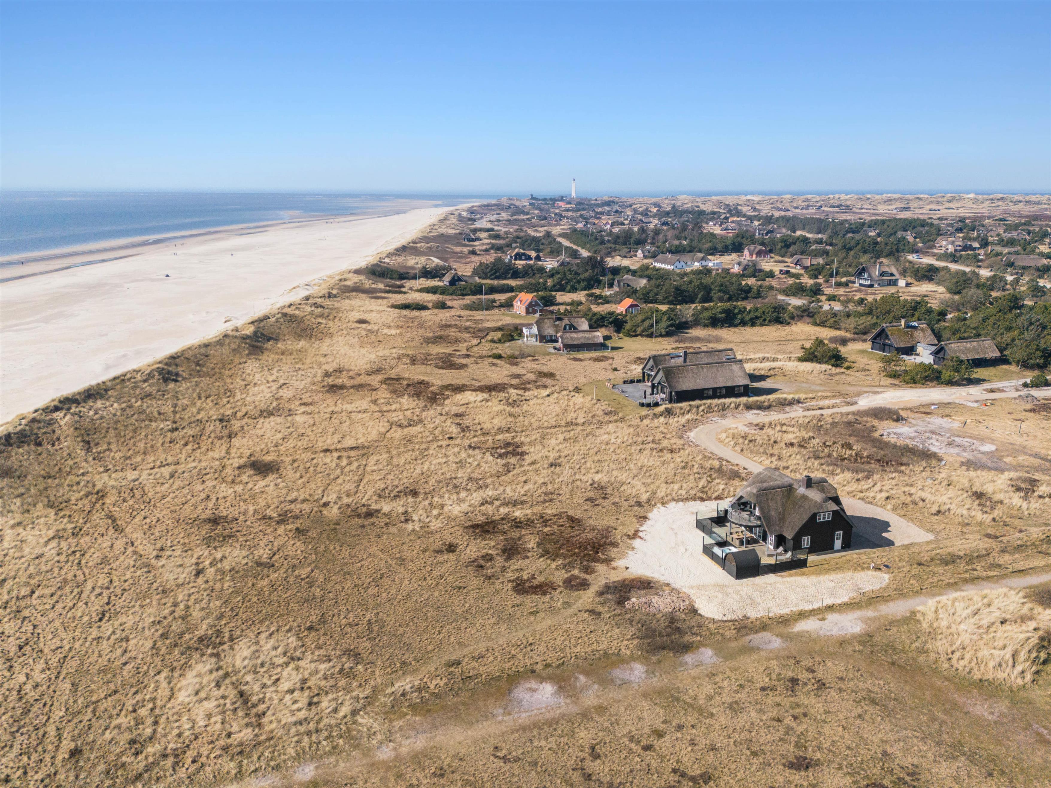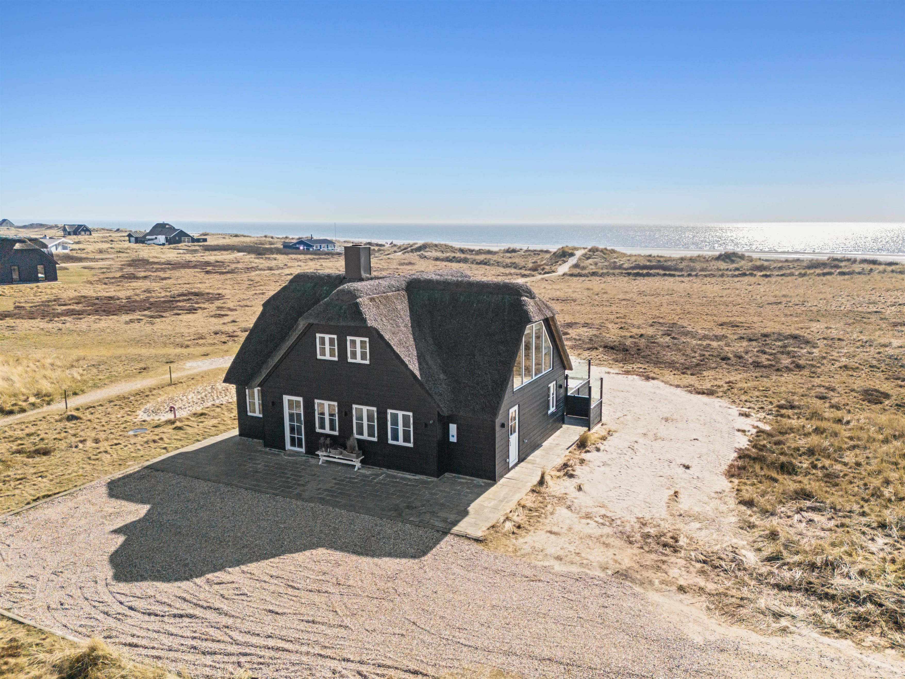 Huset på 145 m2 ligger på en klitgrund kun 25 meter fra vandkanten og giver dig især fra stuen på 1. sal de flotteste udsigter i al slags vejr ud over Vesterhavet og det ganske enestående landskab med marehalm, klitter og strand.