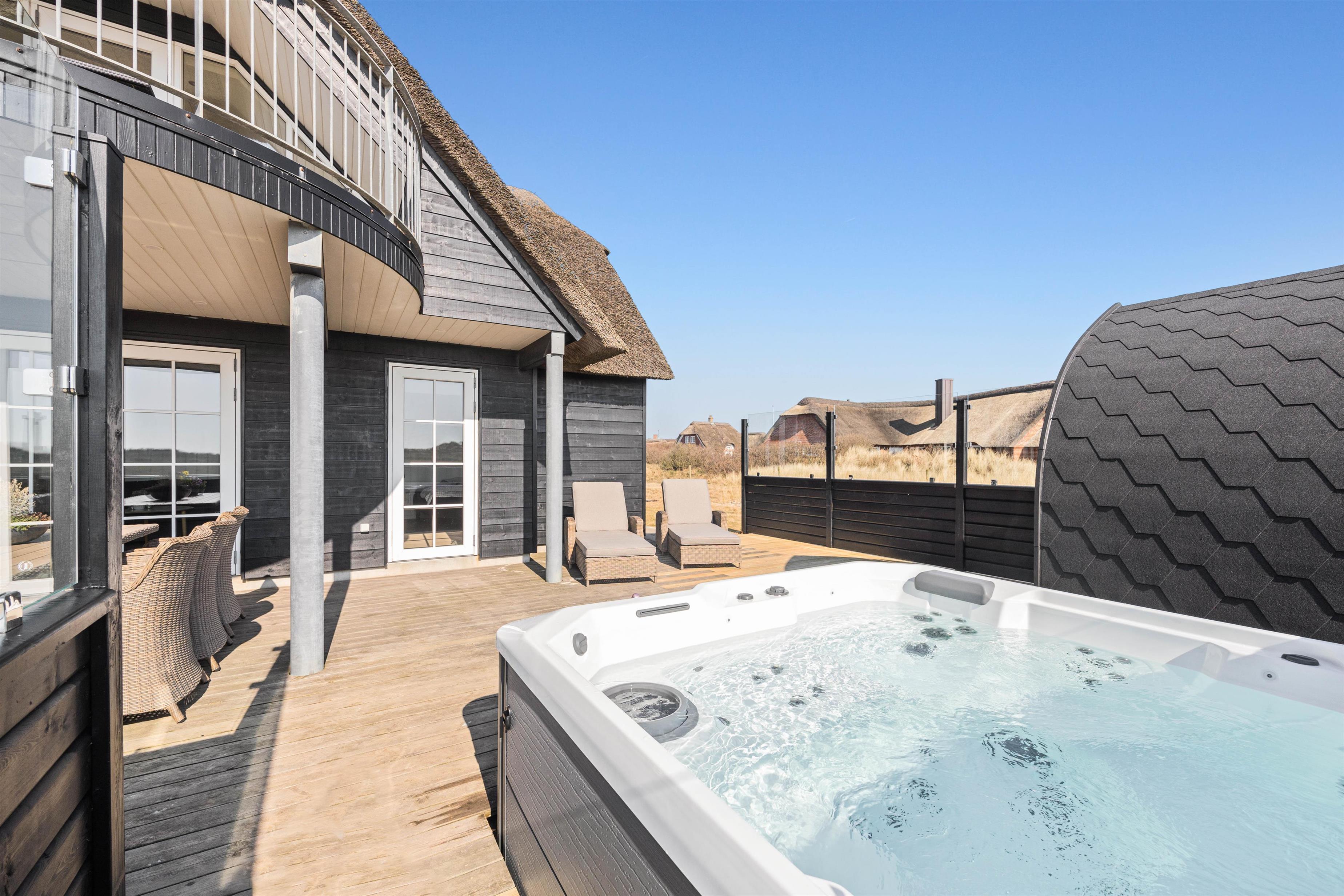 På den store, delvist lukkede terrasse, hvoraf en del er overdækket, kan I også nyde livet og vejret, fra de magelige havemøbler, og hoppe i udespaen eller udesaunaen og blive varmet igennem. Har I lyst til shopping, ligger Blåvands forretninger kun godt 1 kilometer væk.