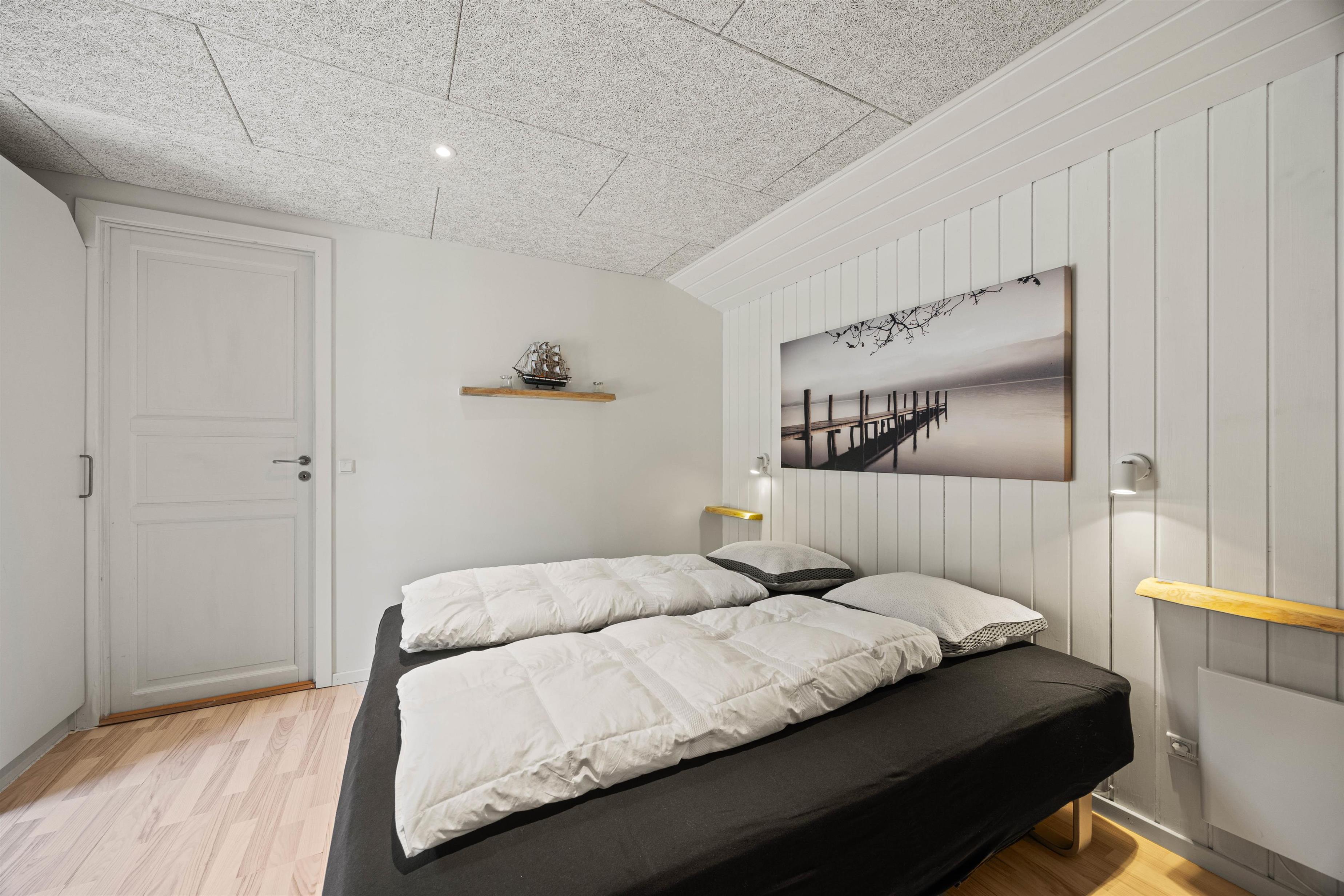 Feriehuset byder på 5 soverum, der er indrettet med henholdsvis 4 dobbeltsenge og 2 enkeltsenge. Feriehuset er ligesom opdelt i 2 afdelinger, hvor den lille afdeling indeholder 2 af soverummene samt selvstændigt køkken og badeværelse. Fra denne afdeling er der også udgang til den skønne terrasse. Dermed er huset ideelt for 2-3 vennepar med børn eller en samlet ferie for flere generationer.
