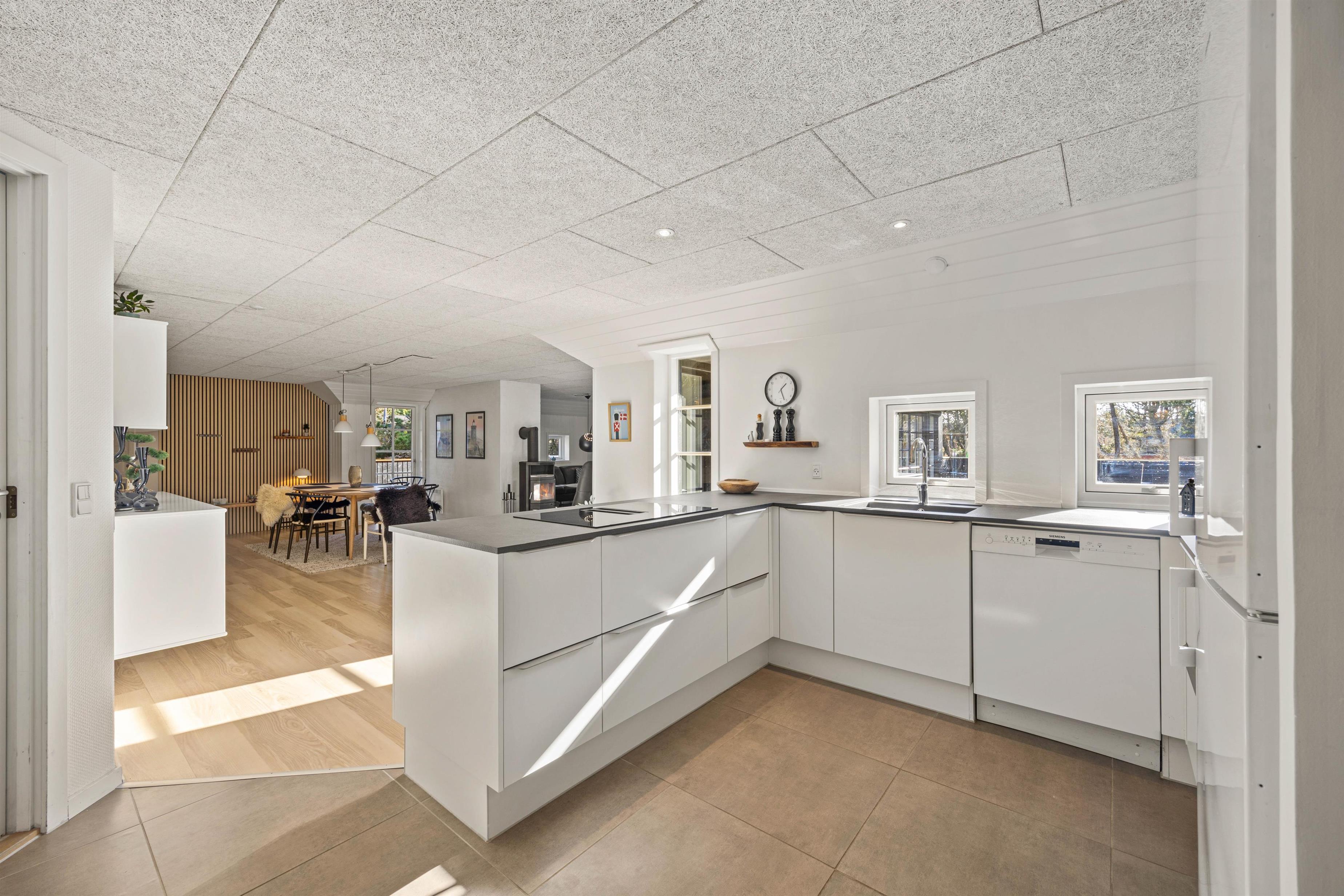 Den moderne, skandinaviske indretning inviterer til hyggestunder for alle gæster. Det rummelige alrum, hvor spiseplads, stue og køkken er nænsomt forenet, agerer samlingspunkt for hele familien eller venneparrene. Her kan I være sammen om madlavningen i det moderne køkken, der byder på diverse bekvemmeligheder med både induktionskomfur, mikroovn og opvaskemaskine, eller samles i de komfortable møbler i stuen og se en god film sammen - der er for øvrigt fjernsyn i alle værelser.