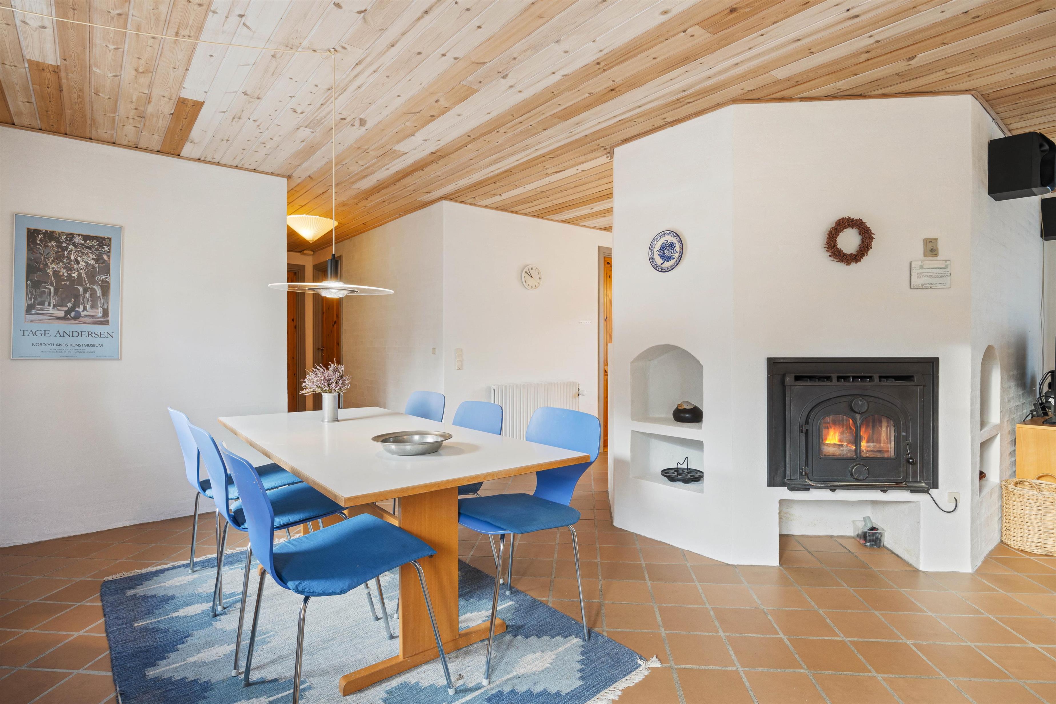 I sommerhuset venter jer en lys og personlig indretning, som I hurtigt kommer til at føle jer godt tilpas i. Her udgør alrummet sommerhusets hjerte, hvor I kan samles til gode feriestunder med blandt andet film og spil, mens brændeovnen knitrer i baggrunden og spreder varme og stemning.