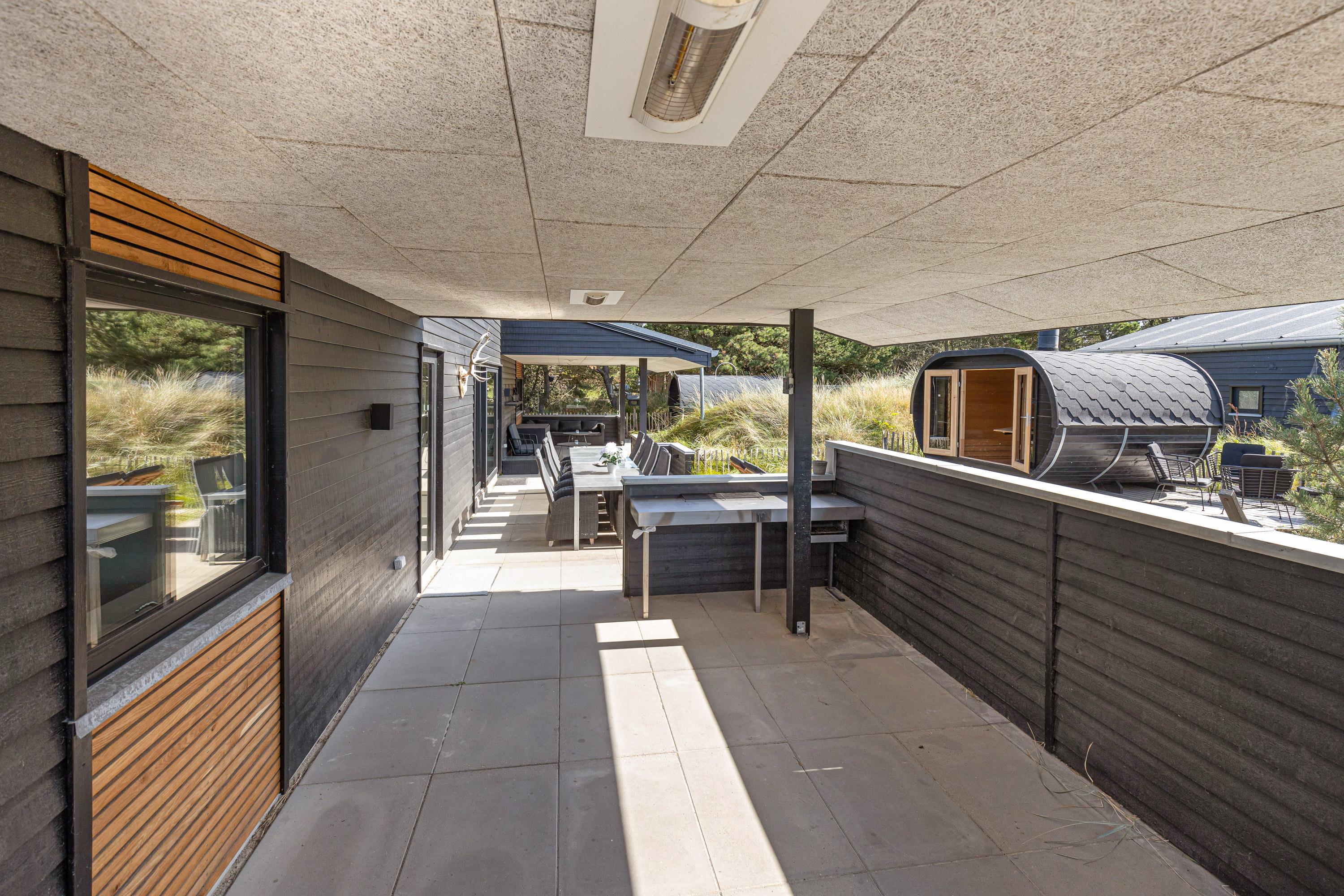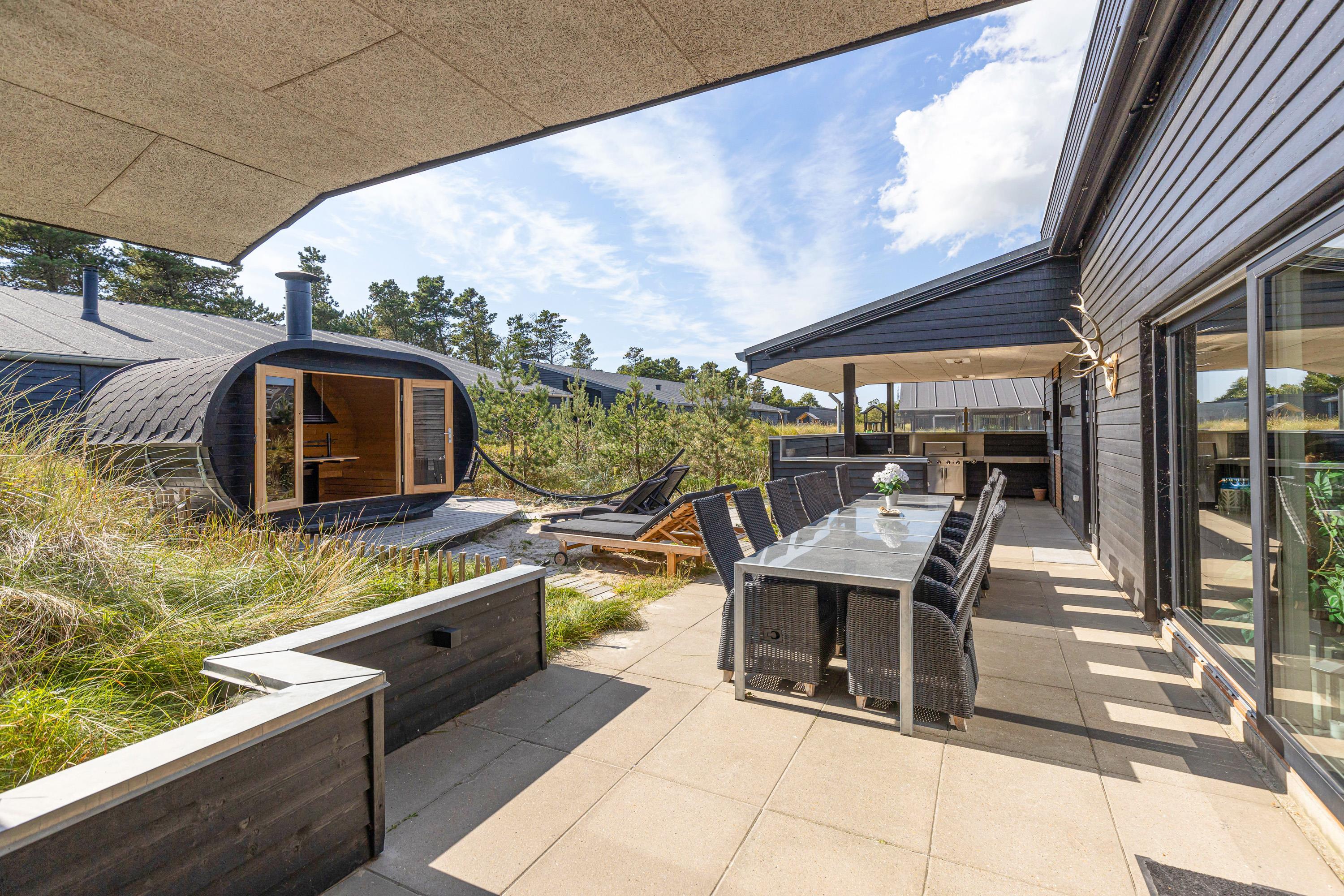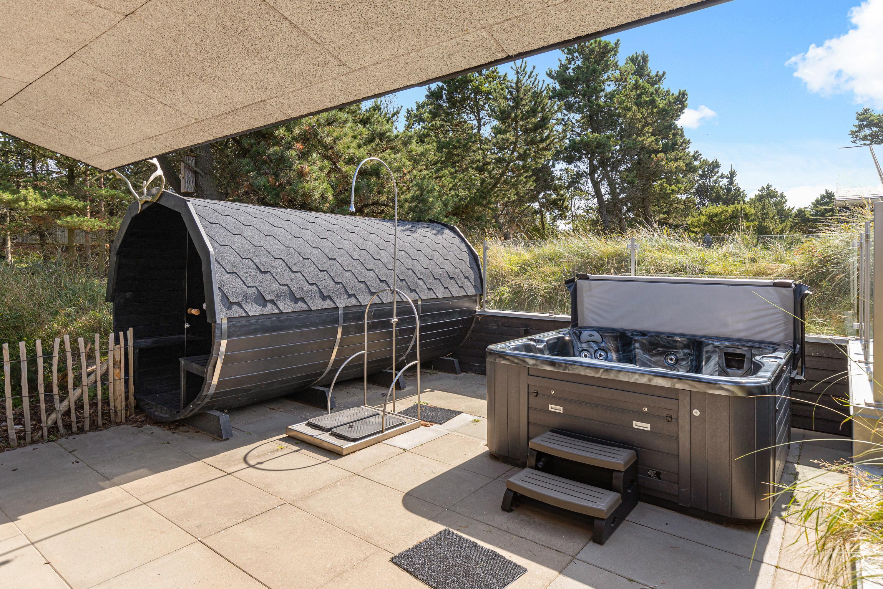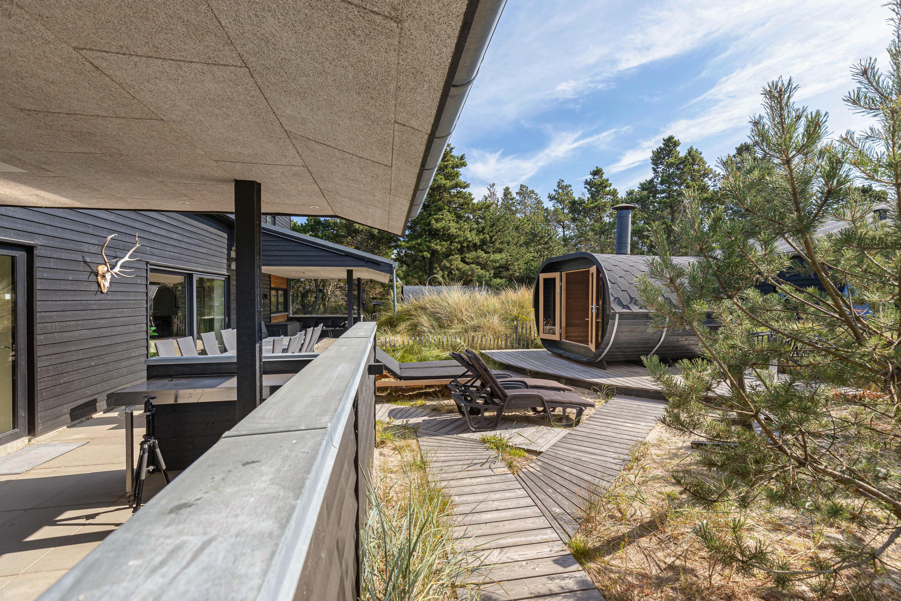 Udearealet byder også på nogle af husets absolutte highlights; både en stor, udendørs sauna og udendørs spabad med plads til 4 personer – et sandt mekka for de wellnessglade gæster. Efter en tur på stranden kan I - fra 1. april til 31. oktober - skylle sandet af fødderne under den udendørs bruser på terrassen. På terrassen venter den hyggelige grillhytte på at byde jer indenfor. Her kan I helt uforstyrret nyde lange aftener med god mad og godt selskab.