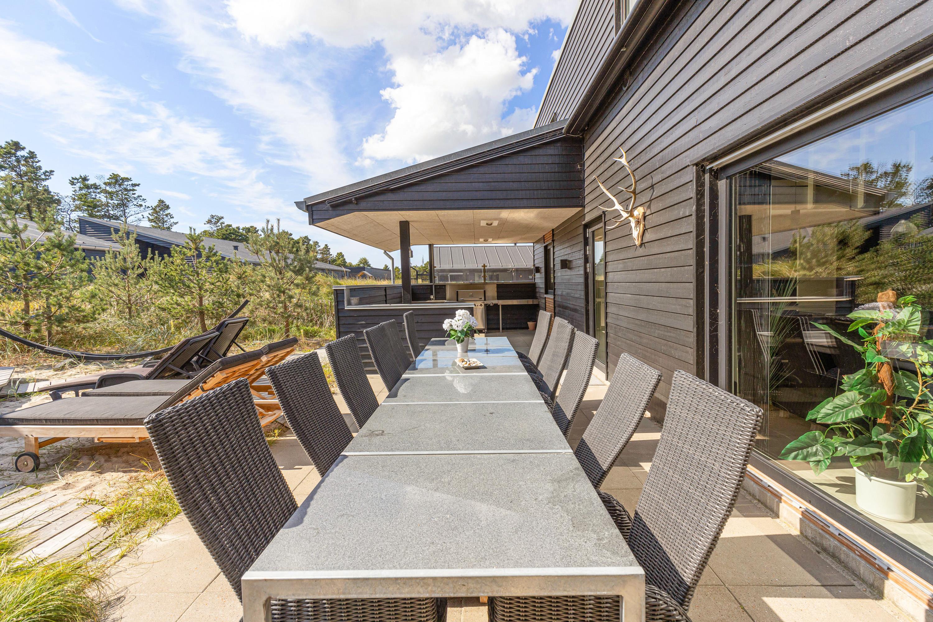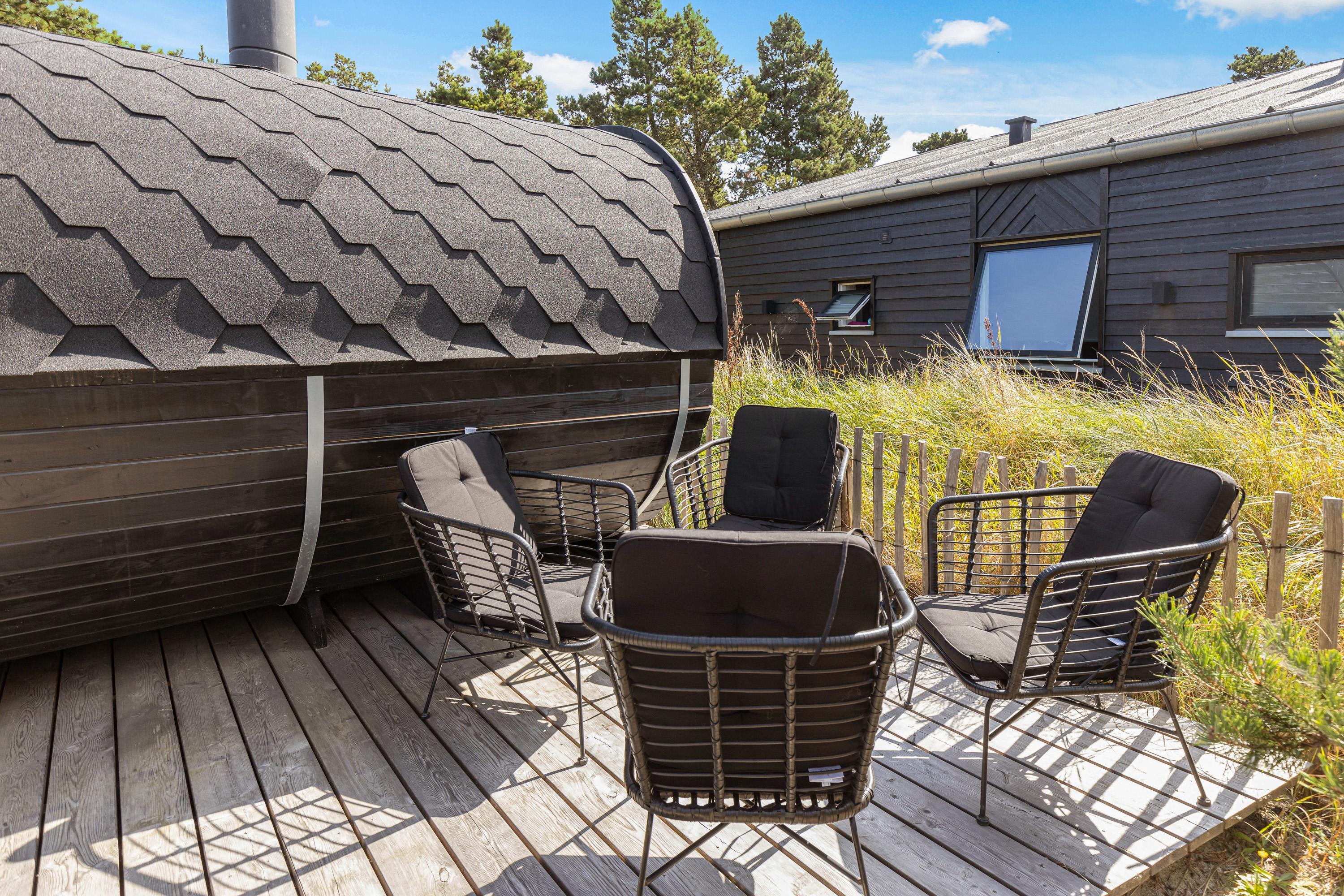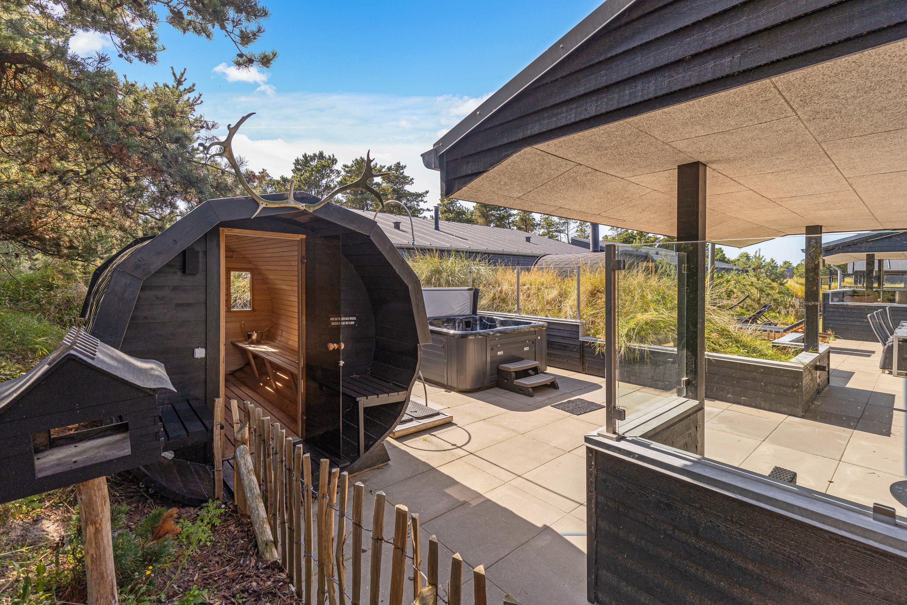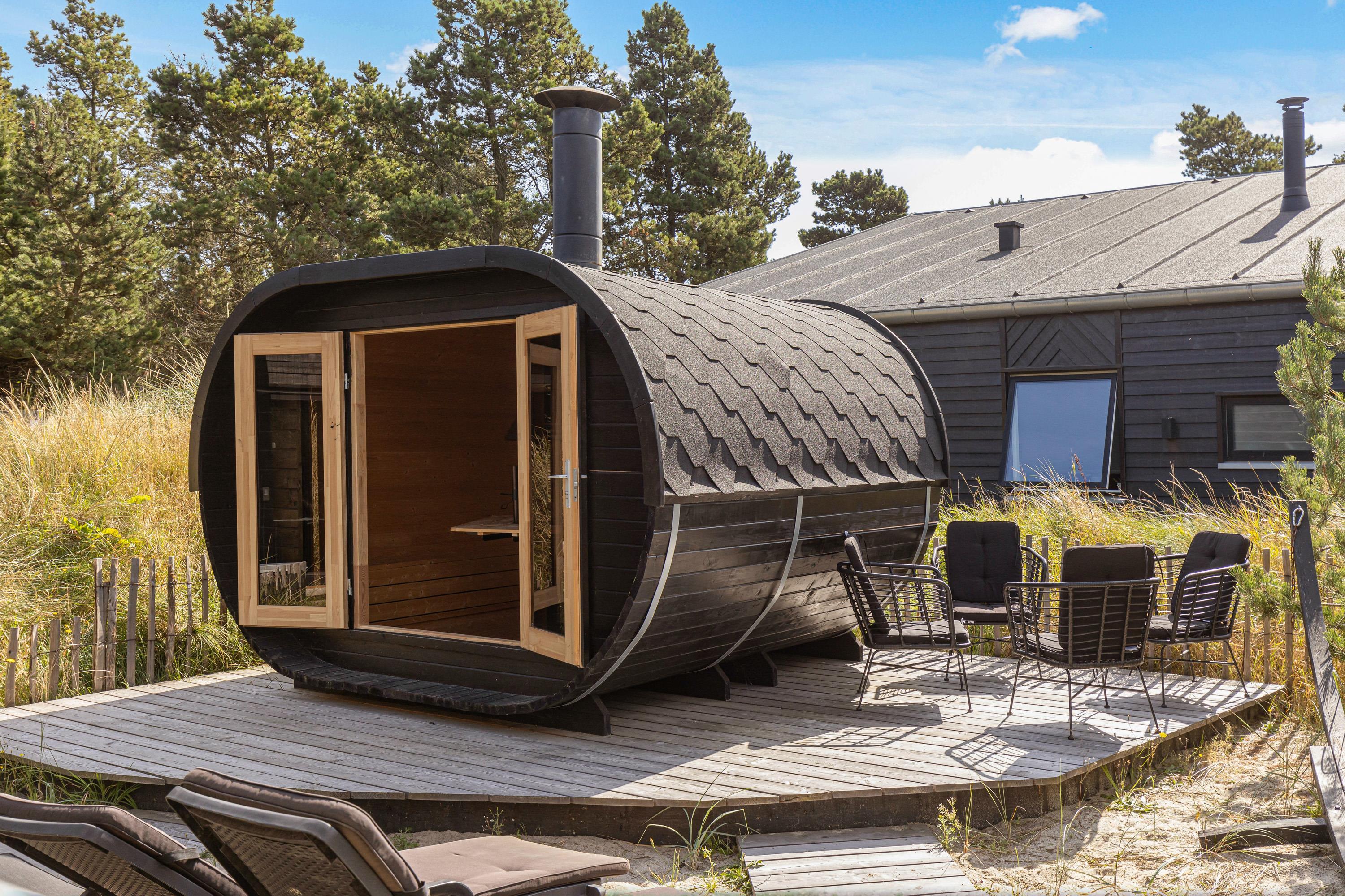 Udearealet byder også på nogle af husets absolutte highlights; både en stor, udendørs sauna og udendørs spabad med plads til 4 personer – et sandt mekka for de wellnessglade gæster. Efter en tur på stranden kan I - fra 1. april til 31. oktober - skylle sandet af fødderne under den udendørs bruser på terrassen. På terrassen venter den hyggelige grillhytte på at byde jer indenfor. Her kan I helt uforstyrret nyde lange aftener med god mad og godt selskab.