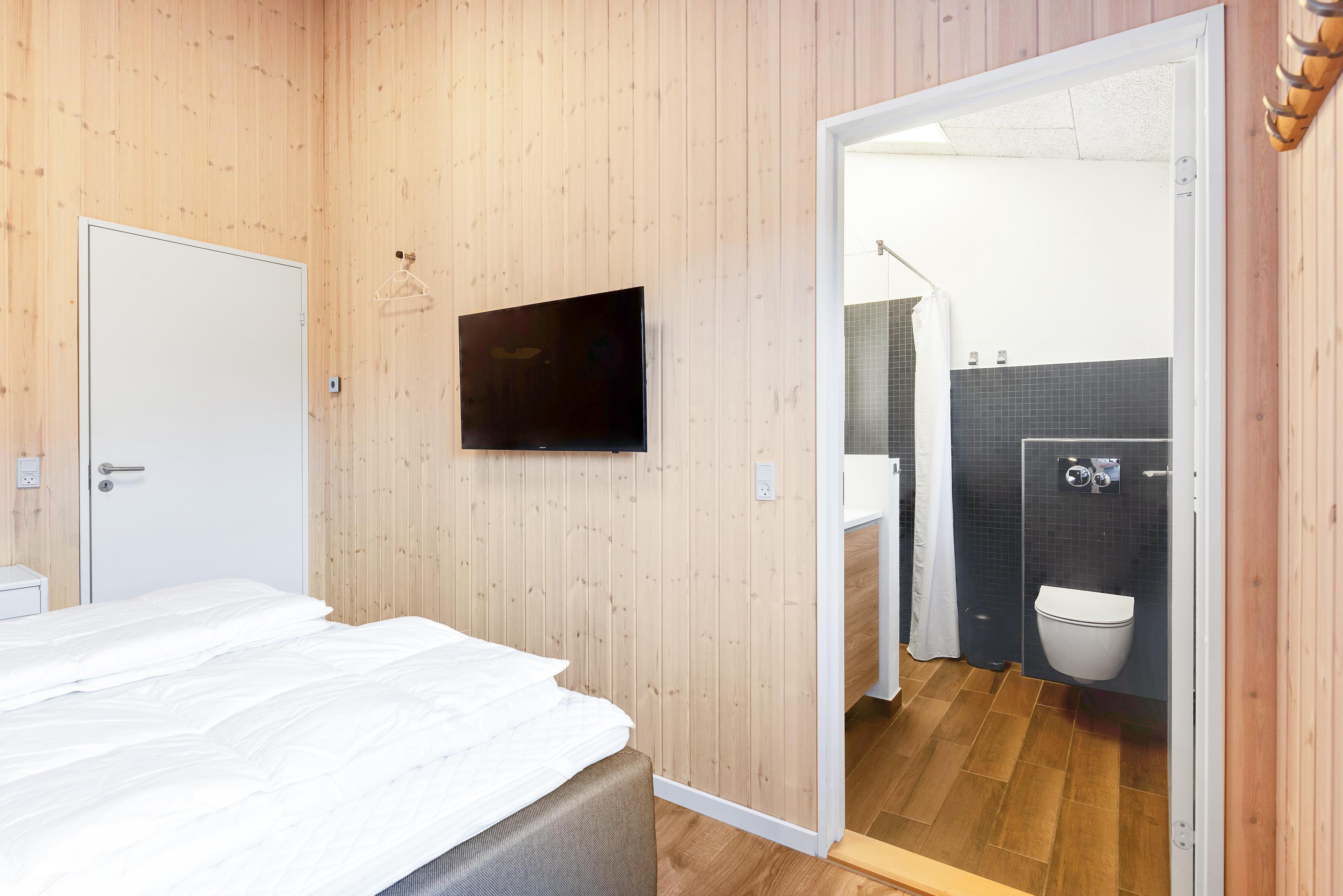 De 10 sovepladser er fordelt på 5 gode soverum med dobbeltsenge – alle med eget bad og toilet. Det ene badeværelse er desuden indrettet med spabad.